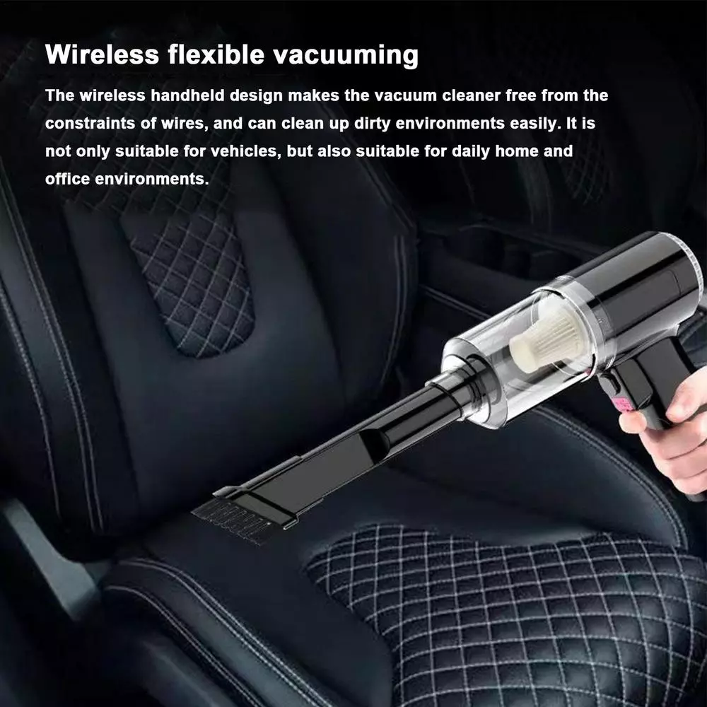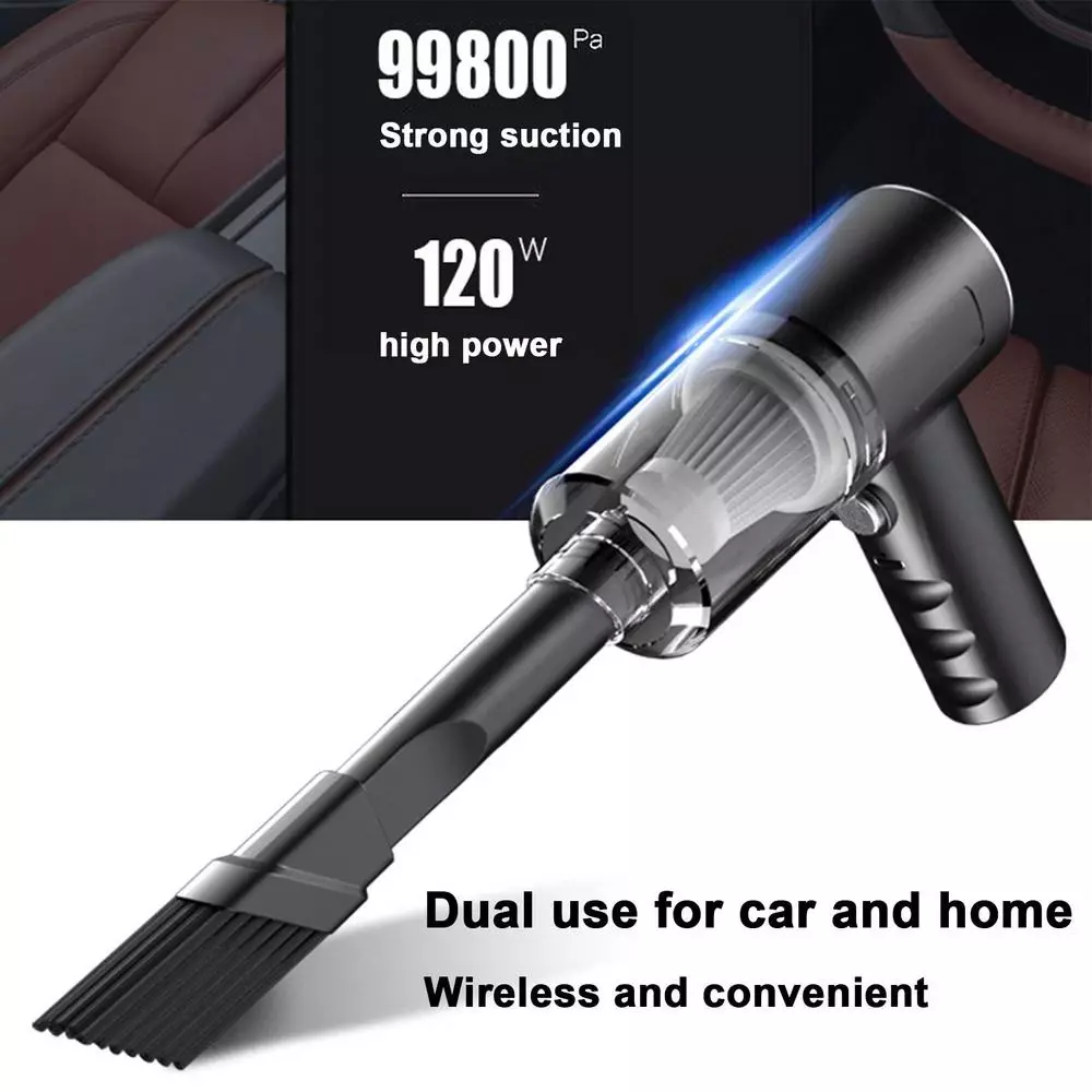 Specifications: Size: 30x8.5x5.5cm Color: White&Black Material: Plastic + Electronic components Weight: 430g Input voltage: 12V Power: 120W Product Name: Car Vacuum Cleaner Use range: Car and Home use Noise: Below 50 Decibels Use scenario: Wet and Dry Type: Handheld Features: CORDLESS DESIGN: This hand vacuum cleaner is cord-free and hassle-free which can free your movement for cleaning your stairs, kitchen, car or hard-to-reach corners. The handheld vacuum cleaner is also lightweight and portable for home and car cleaning. IMPROVED HEPA FILTER: Our hand vacuum cleaner features enhanced HEPA filters with premium filter wrap which is designed to further extend the lifetime and effectively avoid clog of filters while ensuring suction in perfect condition. QUICK CHARGE: Adopted the latest fast charge technology and the latest generation of rechargeable batteries, this small vacuum can be full charged in 2hours and run for about 30 minutes. HIGH POWER SUCTION: This upgraded car vacuum cleaner has a much stronger suction power. With a 120 watt motor and a strong suction power of 5500 Pa, it can effectively suck up pet hair, food residue, and grit. Packing List: 1 x Vacuum Cleaner