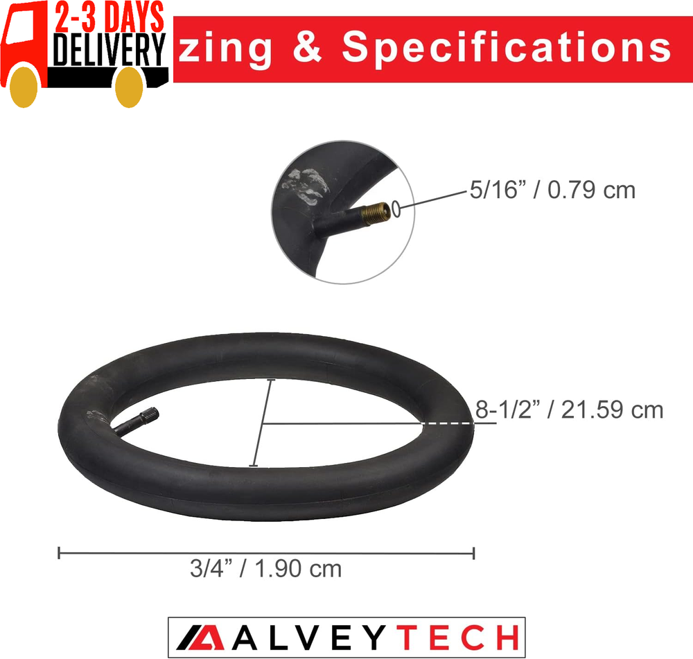 12-1/2" X 2-1/4" Straight Valve Inner Tube - for the Razor Pocket Mod Bella, Betty, Bistro, Blossom, Chrissy, Daisy, Hannah Montana, Kiki and Sweet Pea Replacement Scooter Tubes High Quality – This inner tube is made of high quality rubber and has a straight valve stem Affordable – At our affordable price, why not buy multiple and keep a spare on hand Compatibility – This inner tube fits all versions of the Razor Pocket Mod Manufacturer Part Number – Razor part number: W15130640076 Does your Razor Pocket Mod have a flat tire? If so, then we’ve got the perfect solution to all your scootering woes with our AlveyTech replacement 12-1/2" x 2-1/4" inner tube with straight schrader valve stem for the Razor Pocket Mod. No need to be unhappy about having to put up with a flat. This affordable and reliable inner tube is the perfect fit for the Razor Pocket Mod and will easily get you back on the move in no time. Not only will it fit your scooter, but it may also fit your electric bike! Keep one of these tubes on hand at all times so that when that inevitable flat strikes, you'll be ready. Get your life back in motion quickly and easily with this handy inner tube and make sure it stays that way by stocking up on spares, for you never know when flat tires will happen! Get your Razor Pocket Mod rolling again as soon as possible and add to cart today! MODEL COMPATIBILITY Razor: Pocket Mod Bella; Pocket Mod Betty; Pocket Mod Bistro; Pocket Mod Blossom; Pocket Mod Chrissy; Pocket Mod Daisy; Pocket Mod Hannah Montana; Pocket Mod Kiki; Pocket Mod Sweet Pea; Pocket Mod Vapor. SPECIFICATIONS Tube size: 12-1/2” x 2-1/4” Inside diameter: 8-1/2” Thickness: 3/4” Shipping Fast shipping is very important for us. Our standard US shipping service is FREE. Your order will be shipped within 2-3 business days upon full payment received. Your order will be delivered within 2-3 business days after the handling time. We only ship to the confirmed PayPal address. We reserve the right to cancel any order for any reason at any time. We are not responsible for undeliverable addresses. Returns and payment We offer a 30 days return policy from checkout winning date. We allow only PayPal as payment method FeedBack Your feedback very important to us, after you get your package and you are satisfied with our service please leave us positive feedback If you have any problem with your order / any questions please before leave any type of feedback For any questions, using eBay contact system Please visit our eBay store to check out other items for sale! Thank you for shopping at our store.