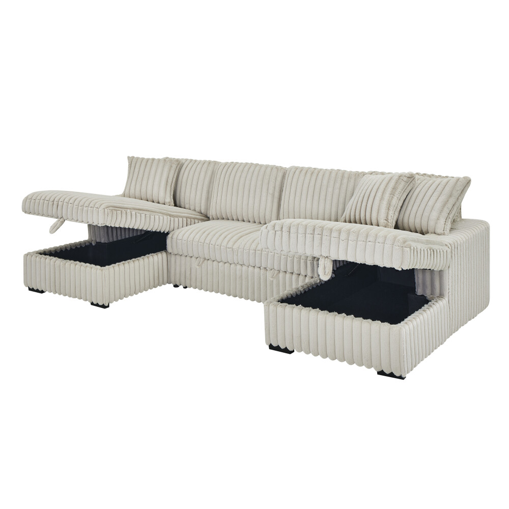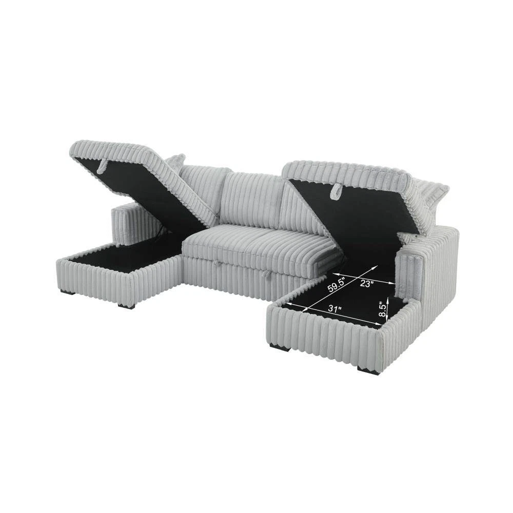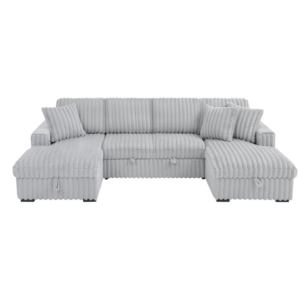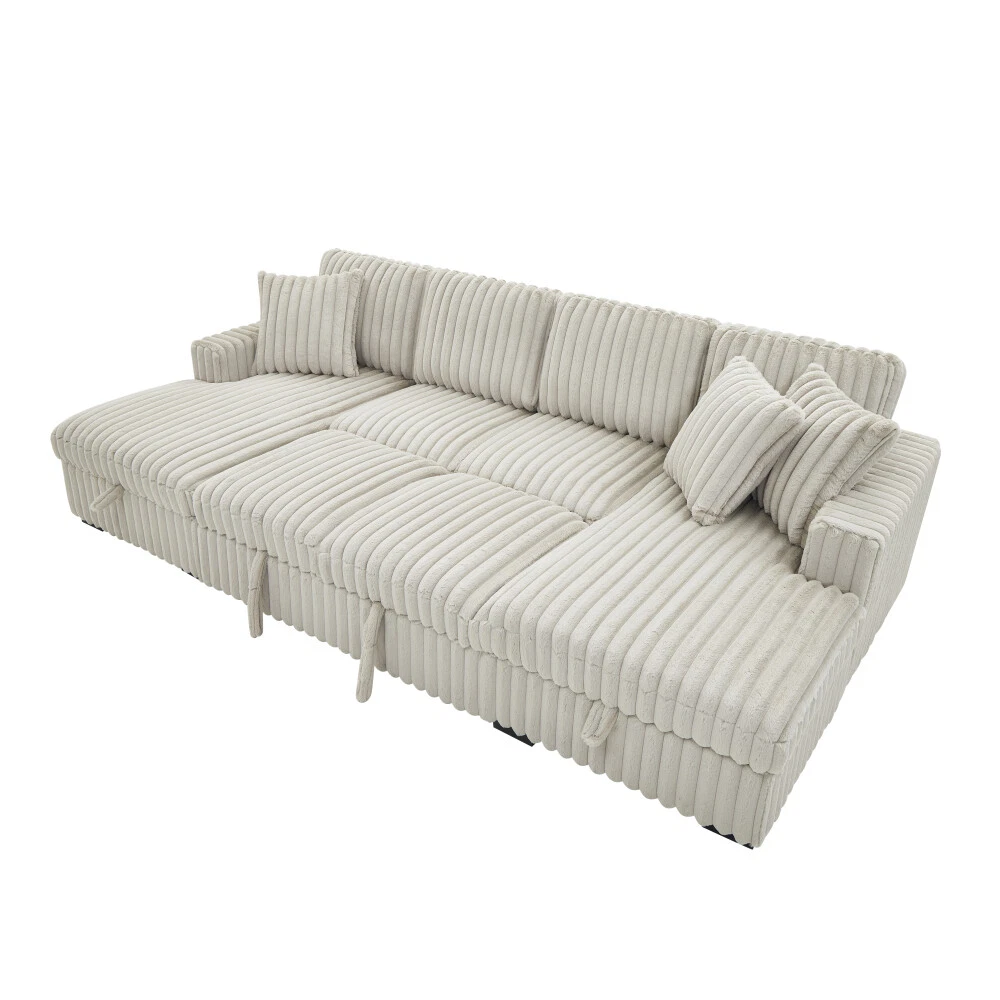 【Ultra Spacious Area】122" Enormous size allows you can stretch out comfortably, accommodates multiple family members or friends, offering utmost comfort whether for a cozy movie night or entertaining gatherings. 【Sturdy & Durable Pull Out Bed】Turn any room into bedroom or guest room with bed couch easily and quickly with one smooth motion without squeaking Firm frame ensure the sleeper couch longer lifespan. 【Ample Storage Space】: Double built-in storage units integrated into the chaises, maximizing space utilization. Effortlessly organize cluttered items and maintain a tidy and appealing living area. 【Rabbit plush】Corduroy Fabric/Rabbit plush Fabric sofa sleeper is breathable and does not pill, ensuring a longer lifespan. Also has a soft touch, providing a comfortable and natural feeling. Sturdy & Durable Pull Out Bed+Hidden Storage Sleeper Sofa: The hidden bed under the sofa can be changed into a sleeping bed that can be easily pulled out and pushed in to allow for extra guests and space saving accommodation The hidden storage space in the chaise is perfect for storing seasonal blankets, extra pillows. On Mar 7, 2025 at 08:24:40 PST, seller added the following information: