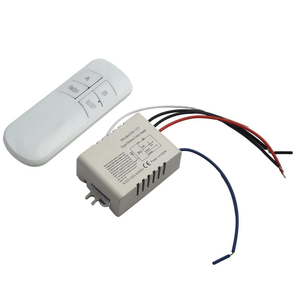 Product Description Features: * Way Remote Control Switch *Perfect for remote controlling of droplight, for Crystal lamp, modern low-pressure lamp, absorb dome light, day flower lamp, fluorescent lamp, energy-saving lamps, exhaust fan, light etc *Fast and easy installation, not obstructed by walls, capable of connecting any loads *Remote control and switch can be used simultaneously for ease and flexibility *Every set of remote controlling switch has its special . More sets can be used in room without interference Specifications: *Input voltage: AC 200-265V *Every port load: Fluorescent lamp: 1000W Energy-saving lamp: 150W : 65W *Working temperature: -30degree Celsius~+60degree Celsius *Material: ABS *Remote controlling distance: within 30m *Power supply: 12V 23A battery(not included) *Transmitter dimension: 10.4*4.5*1.5 cm/ 4.09*1.77*0.59 inch(Approx) *Receiver dimension: 6.0*4.5*2.6 cm/2.36*1.77*1.02 inch(Approx) Two Way Remote Control Switch Function: *A/1 will light after power on *A/1 uses to turn on /off the blue group, B/2 uses to turn on /off the green group, ''ON"/"OFF" means turn on/off the whole item *Manual lighting (wall switch control): A / 1 , B / 2 ,the whole circuit will be turned on Specifications: *Input voltage: AC 200-245V(50/60Hz) *Every port load: Fluorescent lamp: 800W Energy-saving lamp: 150W : 65W *Working temperature: -30degree Celsius~+60degree Celsius *Material: ABS *Remote controlling distance: within 30m *Power supply: 12V 23A battery(not included) *Transmitter dimension: 10.5*4.3*1.7 cm/ 4.13*1.69*0.59 inch(Approx) *Receiver dimension: 9.1*4.5*2.5 cm/3.58*1.77*0.98 inch(Approx) Three Way Remote Control Switch Function: *A/1 will light after power on *A/1 uses to turn on /off the blue group, B/2 uses to turn on /off the green group, ''ON"/"OFF" means turn on/off the whole item *Manual lighting (wall switch control): A / 1 , B / 2 ,the whole circuit will be turned on Specifications: *Input voltage: AC200V-240V 50Hz/60Hz *Every port load: Fluorescent lamp:600W Energy-saving lamp: 150W : 65W *Working temperature: -30degree Celsius~+60degree Celsius *Material: ABS *Remote controlling distance: within 30m *Power supply: 12V 23A battery(not included) *Transmitter dimension: 10.4*4.5*1.6 cm/ 4.09*1.77*0.63 inch(Approx) *Receiver dimension: 7.5*5.2*2.6 cm/2.95*2.05*1.02 inch(Approx) Package Contents: 1 x Remote Control Receiver 1 x Remote Control Transmitter Note: The real color of the item may be slightly different from the pictures shown on website caused by many factors such as brightness of your monitor and light brightness. Payment Payment must be completed within 5 days. If you have any problems about payment, please contact us via ebay message. Delivery details We only ship to confirmed ebay Order addresses. Please comfirm that your Order address is in line with your shipping address. Please kindly note that the c ombined shipping is not provided because the shipping fee is calculated by weight. Also, the each additional item means exactly the the same color and size. It takes about 7 -15 working days to US; about 10-30 working days to other countries. Transit time may be a little delayed because of the bad weather and customs inspection . If you do not receive your item within 30 working days since payment finished, please contact us immediately for further assistance. Contact us We strive for 100% customer satisfaction! Positive Feedback is very important to us. If you have any questions, p lease feel free to contact us via "Ask seller a question" . We will reply your email within 24 working hours.