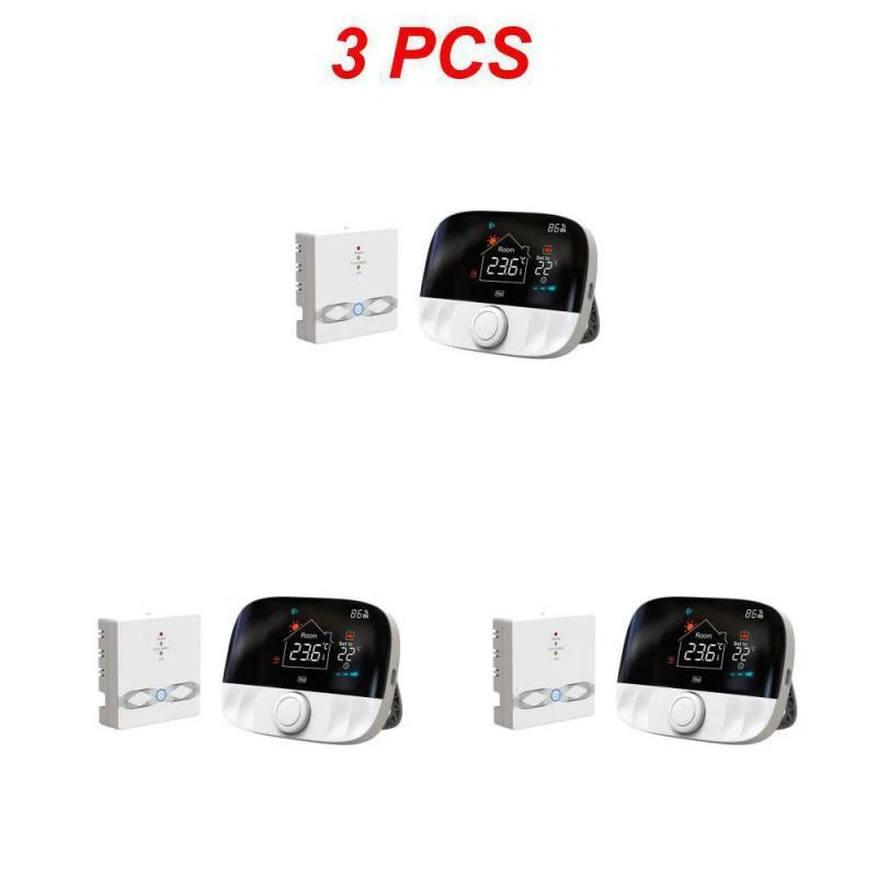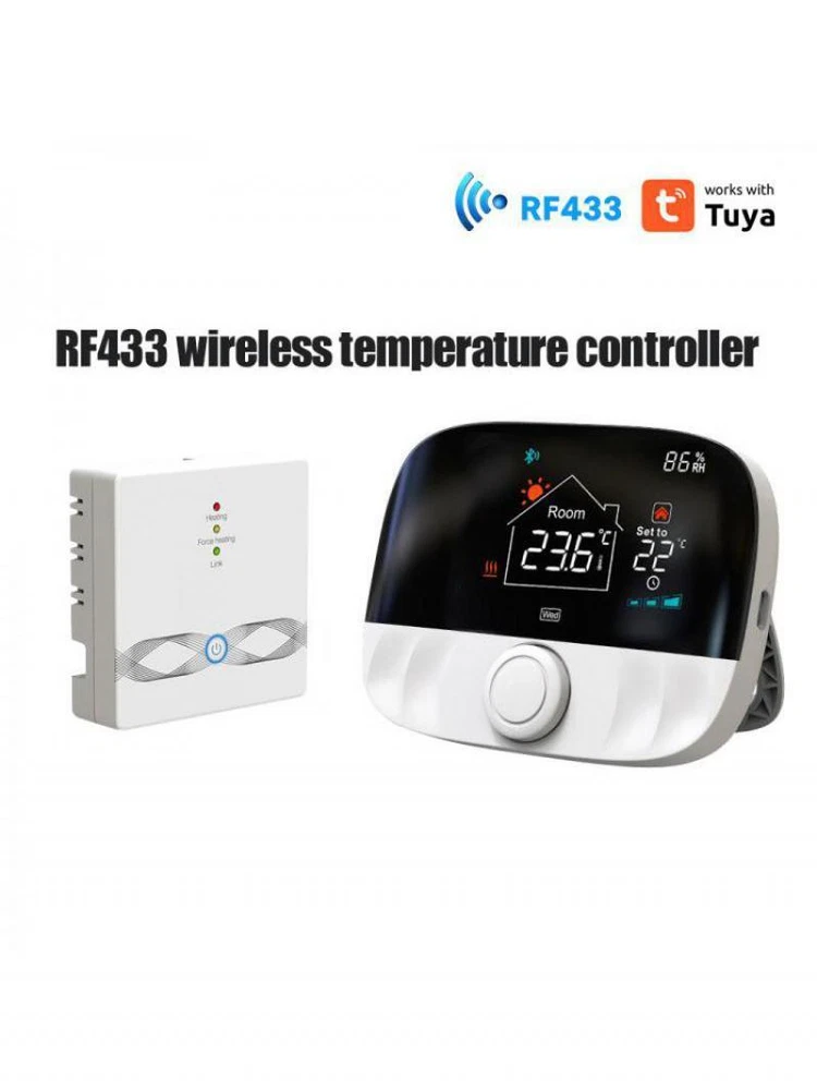 1/2/3PCS Tuya Smart Home Wifi Wireless Thermostat RF Battery Gas Boiler Water Heating Digital Temperature Controller Alexa Description: Specifications: Protection class/shell material: IP20/flame retardant PC Three power supply modes for the control panel: two AA batteries, USB (Type-c-6p DC5V), AC230V 50/60HZ Receiving power: AC95-240 50/60Hz Current load: 3A Temperature accuracy: 0.5℃ Temperature setting: 5-95℃ key: key Wireless transmission distance: 100 meters in open space Product size: 118*86*23mm Specifications: Features 【RF 433 Wireless Control】Easy to place, 300 meters long control distance. 【Manual/Auto Mode】Freely choose manual mode or automatic mode according to different purposes. 【Temperature Accurate】Internal sensor floor sensor, sense ambient temperature and floor temperature. Automatic temperature acquisition with 0.5°C accuracy. 【Weekly Programmable】The thermostat supports different temperature settings with 6 time modes per day. [Memory function] Don't worry about power failure, data memory after power failure. 【Child Lock】Keyboard lock function is designed to prevent misuse by children. Package Included: 1 x Wireless Thermostat, 1 x RF Controller, 1 x Data Cable