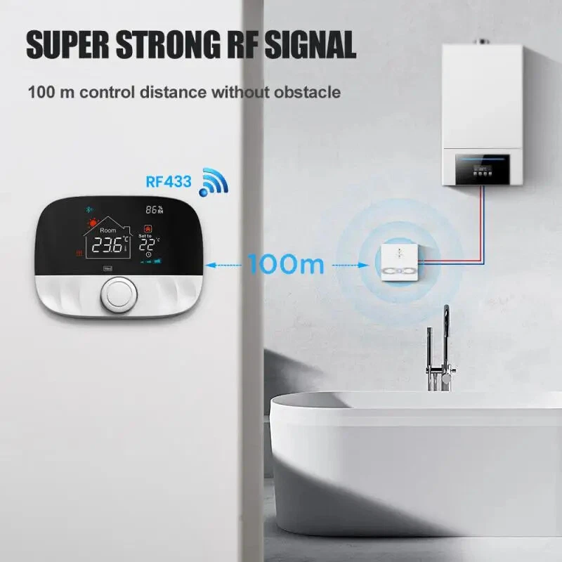 1/2/3PCS Tuya Smart Home Wifi Wireless Thermostat RF Battery Gas Boiler Water Heating Digital Temperature Controller Alexa Description: Specifications: Protection class/shell material: IP20/flame retardant PC Three power supply modes for the control panel: two AA batteries, USB (Type-c-6p DC5V), AC230V 50/60HZ Receiving power: AC95-240 50/60Hz Current load: 3A Temperature accuracy: 0.5℃ Temperature setting: 5-95℃ key: key Wireless transmission distance: 100 meters in open space Product size: 118*86*23mm Specifications: Features 【RF 433 Wireless Control】Easy to place, 300 meters long control distance. 【Manual/Auto Mode】Freely choose manual mode or automatic mode according to different purposes. 【Temperature Accurate】Internal sensor floor sensor, sense ambient temperature and floor temperature. Automatic temperature acquisition with 0.5°C accuracy. 【Weekly Programmable】The thermostat supports different temperature settings with 6 time modes per day. [Memory function] Don't worry about power failure, data memory after power failure. 【Child Lock】Keyboard lock function is designed to prevent misuse by children. Package Included: 1 x Wireless Thermostat, 1 x RF Controller, 1 x Data Cable