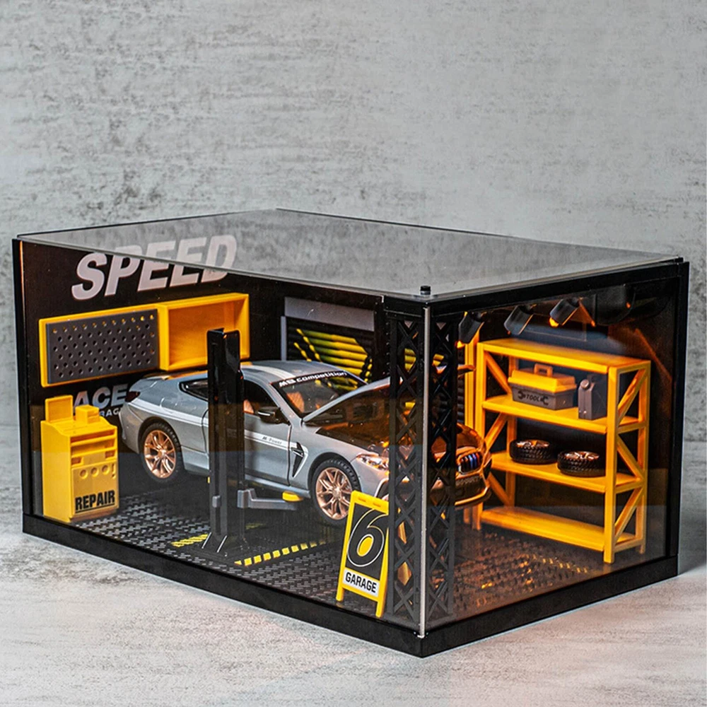 Alloy Assemble Diorama 1/24 LED Lighting Garage Model Car Parking Station Scene Brand: Unbranded Scale: 1/24 Product Size: L 27cm x W 17.3cm x H 14.5cm Material: Alloy/Acrylic Model Condition: Brand New Noted: Product Does Not Including Model Car
