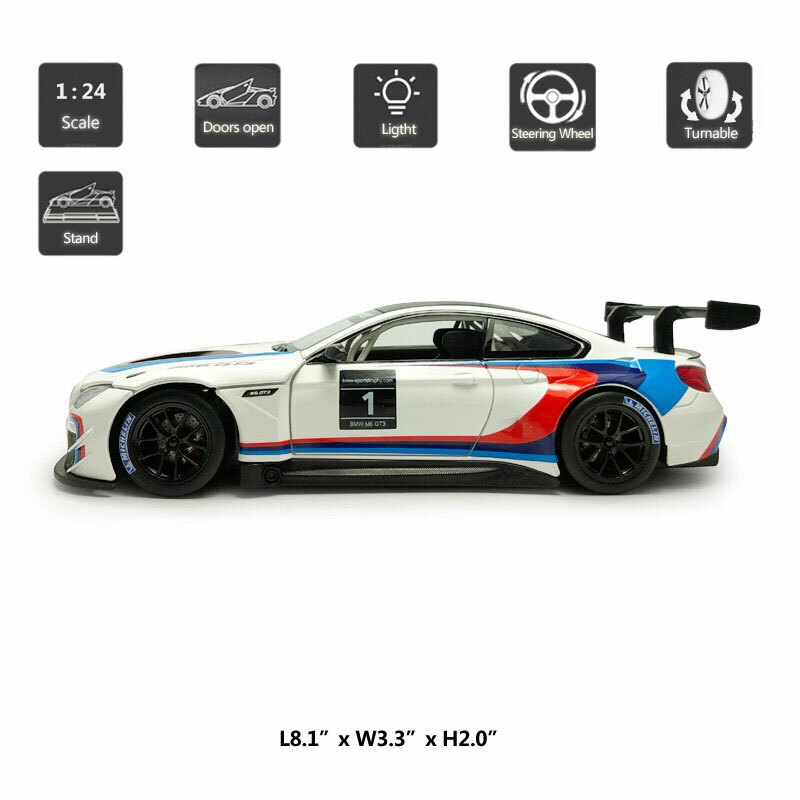 1:24 BMW M6 GT3 Model Car Toy Cars Diecast Vehicle Toys for Kids Boys Collection Item Type Diecast & Toy Vehicles Scale 1:24 Material Diecast and ABS Colour White and blue, as picture shows Dimension About L8.1" x W3.3" x H2.0" (L20.5 x W8.5 x H5.0 cm) Vehicle Type Racing Car Function *Two doors and engine cover can be open *The front wheels can turn left and right by turning the steering wheel *Open the door, it will make light Packing Packed in original colour box, in excellent condition Power 3 x AG13/LR44 button cell, power is just for light Tips *Great choice of gift for kids, especially for Birthday, Christmas and New Year Gift *Great item for collector, business gift, home decoration, office decoration, display Warning Don't put in mouth/Keep Away from Fire/Not for Children under 3 Years Notice Due to manual measurement, please allow a little error Package include 1 x 1:24 Scale BMW M6 GT3 Model Car (Batteries Not Included) Payment Delivery details Terms of sales Payment We accept paypal only. Delivery details We ship orders within 24 hours upon receipt of payment. Terms of sales We provide great products and service. If you have any problems with the order,please do contact us before leaving negative feedback and opening case on eBay.