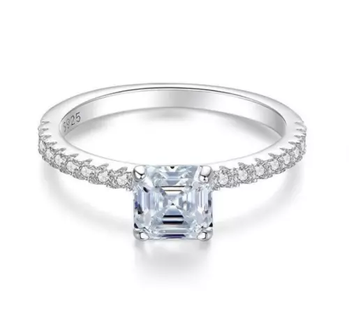 1.25 CT Asscher Cut Lab Created Solitaire Engagement Ring 14K White Gold plated