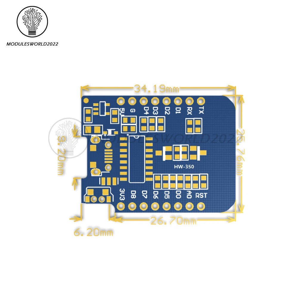 Store Categories Store Categories Other Product View Details Descriptions: This is D1 mini, it is a mini WIFI board based on ESP-8266EX. 11 digital input/output pins, all pins have interrupt/pwm/I2C/one-wire supported(except D0 ) 1 analog input(3.3V max input) a Type-C/Micro USB connection How to get started in Arduino: Setup driver Before you use miniD1 boards, you need setup CH340g driver. Python On Windows you need install Python 2.7.10. On Linux & MAC OSX, you don't need install it, comes preinstalled with OS. Installing Hardware package There is two ways to install hardware package, Boards Manager or GIT Installing with Boards Manager Starting with 1.6.4, Arduino allows installation of third-party platform packages using Boards Manager. We have packages available for Windows, Mac OS, and Linux (32 and 64 bit). <1>. Install Arduino 1.6.7 from the Arduino website. <2>. Start Arduino and open Preferences window. <3>.Enter http://arduino.esp8266.com/stable/package_esp8266com_index.json into Additional Boards Manager URLs field. You can add multiple URLs, separating them with commas. <4>. Open Tools→Board:xxx→Boards Manager and install esp8266 by ESP8266 Community (and don't forget to select your ESP8266 board from Tools > Board menu after installation). Installing with GIT (Recommend): We recommend using GIT to install Hardware package, you can always get the latest version of it. Packge Included : 1/2/5/10Pieces ESP8266 ESP-12 ESP12 WeMos D1 Mini WIFI Dev Kit Development Board NodeMCU Lua Shipping Policy Payment Method Returns Policy Shipping Policy Payment Method Returns Policy Home Payment Shipping About us Contact us Copyright©2018 datacaciques Home Payment Shipping About us Contact us Store Categories Store Categories Other Product View Details Descriptions: This is D1 mini, it is a mini WIFI board based on ESP-8266EX. 11 digital input/output pins, all pins have interrupt/pwm/I2C/one-wire supported(except D0 ) 1 analog input(3.3V max input) a Type-C/Micro USB connection How to get started in Arduino: Setup driver Before you use miniD1 boards, you need setup CH340g driver. Python On Windows you need install Python 2.7.10. On Linux & MAC OSX, you don't need install it, comes preinstalled with OS. Installing Hardware package There is two ways to install hardware package, Boards Manager or GIT Installing with Boards Manager Starting with 1.6.4, Arduino allows installation of third-party platform packages using Boards Manager. We have packages available for Windows, Mac OS, and Linux (32 and 64 bit). <1>. Install Arduino 1.6.7 from the Arduino website. <2>. Start Arduino and open Preferences window. <3>.Enter http://arduino.esp8266.com/stable/package_esp8266com_index.json into Additional Boards Manager URLs field. You can add multiple URLs, separating them with commas. <4>. Open Tools→Board:xxx→Boards Manager and install esp8266 by ESP8266 Community (and don't forget to select your ESP8266 board from Tools > Board menu after installation). Installing with GIT (Recommend): We recommend using GIT to install Hardware package, you can always get the latest version of it. Packge Included : 1/2/5/10Pieces ESP8266 ESP-12 ESP12 WeMos D1 Mini WIFI Dev Kit Development Board NodeMCU Lua Shipping Policy Payment Method Returns Policy Shipping Policy We will arrange shipping for you within 24 Hours after payment cleared except the holidays. -We ship items to Worldwide. Thank you! -we will ship out the order in 1-2 business days after payment cleared .Since it is international shipping ,delivery time is about 15--28 business days to arrive to most countries. Payment Method We accept PayPal payment ONLY, and must be received within 5 days from the date of purchase. 2. It is easy and safe for you to pay by credit cards, debit cards, bank transfers and PayPal account balances. 3.Buyers are responsible for import duties,custom fees and taxes, if any, please check your country. Returns Policy 1.We believe our items are so outstanding. We are convinced you will be happy with your Purchase. 2. If you do not satisfy with our items. Please simply return to us within 30 Days in original condition. Just pay for the returned postage. Then we can issue full refund or resend the item to you after the returned item arrived at our warehouse. 3. Please include your eBay ID and item number with any email requests.