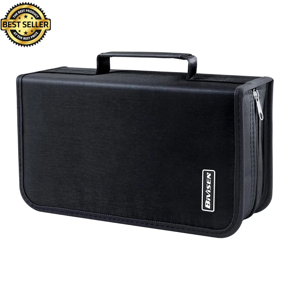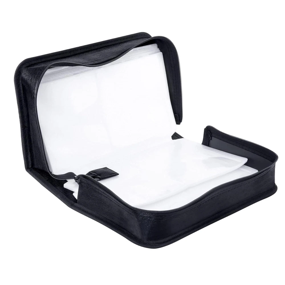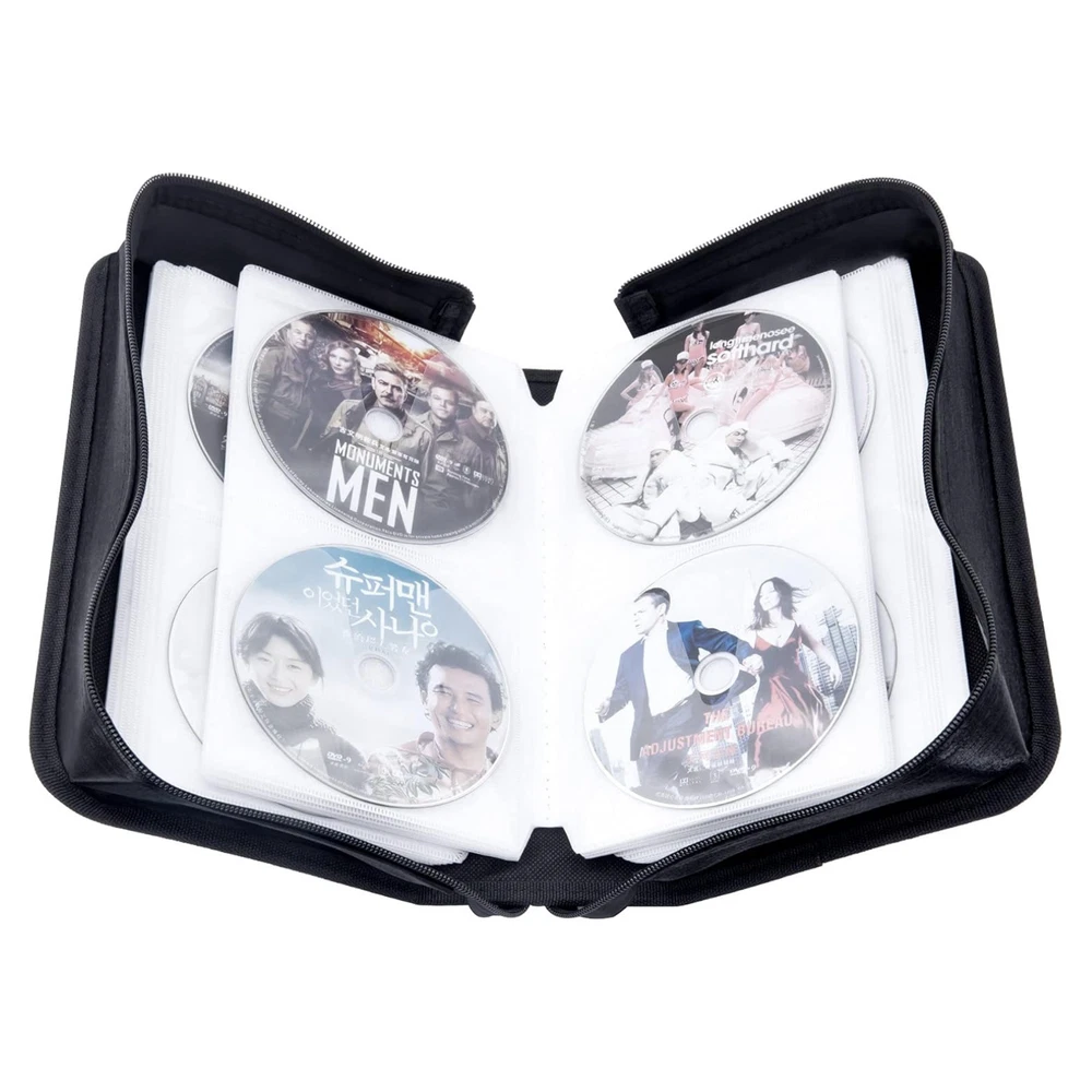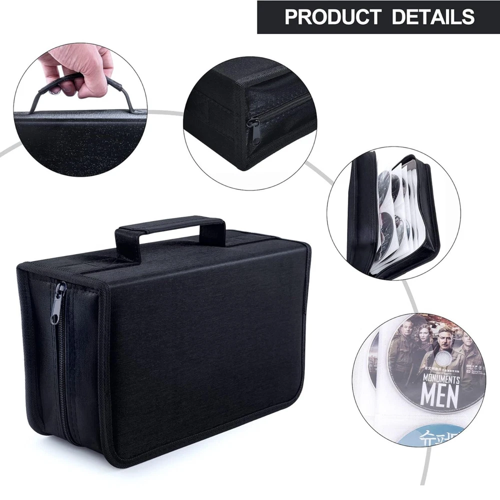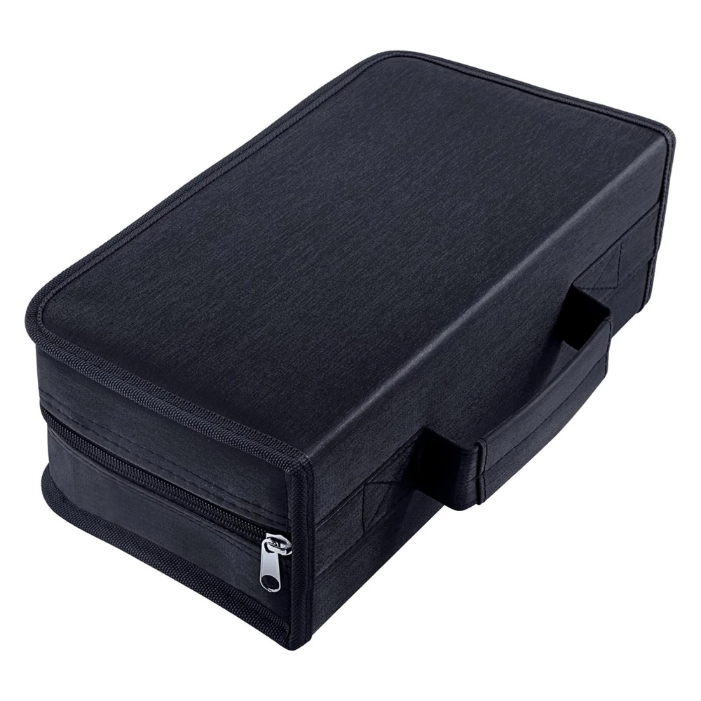 Description: Keep your CDs, DVDs, and VCDs organized and protected with this 128 Disc CD Case Holder DVD Storage Wallet Bag . Designed for portability and durability, this storage organizer is perfect for travel, car use, or home storage. Durable High-Quality Material: Made from a combination of plastic, PP film, and non-woven fabric, this black CD/DVD case is moisture-resistant, tear-resistant, and built to last. It ensures your discs are safe from scratches and damage. Compact & Lightweight Design: The slim and lightweight structure makes it ideal for travel or everyday use. Its compact size fits neatly in your car or home without taking up much space. Convenient to Carry: Featuring a sturdy hand strap on the side, this CD case is easy to transport. Whether you’re attending exhibitions, traveling, or organizing your media at home, it offers hassle-free portability. Large Capacity & Secure Closure: The upgraded design holds up to 128 discs , providing ample storage for your CD/DVD collection. The high-quality zipper ensures secure and smooth closure, keeping your discs safe and dust-free. This portable CD/DVD organizer bag is a must-have for anyone looking to keep their media collection in order. Ideal for cars, homes, or on-the-go storage, it combines practicality with a sleek, minimalist design.
