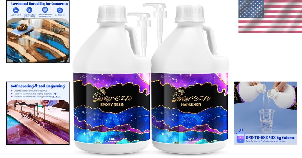 128 Oz Epoxy Resin Kit with User-Friendly Pumps – Perfect for Crafts & Jewelry ‹ › ‹ › ‹ › ‹ › ‹ › ‹ › ‹ › ‹ › 128 Oz Epoxy Resin Kit with User-Friendly Pumps Transform Your Creativity with Crystal Clear Perfection! Crystal Clear Finish: Our epoxy resin and hardener boast unparalleled clarity and resistance to yellowing, ensuring that your art masterpieces shine beautifully, enhancing the appeal of every surface. Low Odor Experience: Unleash your creativity in a low-odor environment! With our 2-part resin, you can work freely, significantly reducing discomfort caused by unpleasant smells. Upgraded Bubble-Reducing Formula: Formulated with high-grade raw materials, this exclusive epoxy resin kit minimizes bubbles for a smooth finish, resulting in flawless projects. Versatile Applications: Perfect for home decor, bar tops, tabletops, countertops, jewelry making, ashtrays, and more—let your imagination run wild! Creating memorable gifts for your loved ones has never been easier. Exceptional Customer Service: We prioritize your satisfaction and offer service within 24 hours. Feel free to consult with us anytime—you’re just one click away from a shopping experience! Why Choose Our Epoxy Resin Kit? Elevate your craft projects with our 128 Oz Epoxy Resin Kit. This essential kit is specifically designed to meet the needs of both hobbyists and professionals. With crystal clear results, low odor, and bubble-reducing features, your artistic vision can be fully realized without compromise. Don’t miss out on this opportunity to transform your creative endeavors! Click 'Add to Cart' now and experience the excellence of our epoxy resin kit. Shipping Free & Fast Shipping - We offer free shipping to most of the USA with a normal delivery time of 3-7 days. However, due to the current situation, additional delivery time (up to 3 weeks) may be required for some items. Alternative Carriers - We may use alternative carriers (e.g. USPS, FedEx, UPS, etc.) to ensure your package arrives safely and on time. Due to the use of multiple carriers, we are unable to provide a tracking number automatically. Handling Time - Orders are processed and shipped within 1-2 business days of receiving cleared payment. Shipping Restrictions - Shipping to Alaska, Hawaii, Puerto Rico, Guam, and other US territories may incur shipping charges or delivery restrictions. Please contact us before ordering, or your order can be refunded/cancelled. State Restrictions - There may be restrictions based on your state of purchase. For example, certain items may not be shipped to California due to state regulations. Contact for Tracking Updates - If you require tracking updates or have any concerns about the delivery of your order, please feel free to contact us, and we will be happy to assist you. Return 30-Day Hassle-Free Returns - We want you to be completely satisfied with your purchase. If you are not, you can return the item within 30 days of receiving it for a full refund or exchange. Easy Return Process - To start a return, simply contact us and we will provide you with a prepaid return shipping label and detailed instructions. Restocking Fee - There are no restocking fees for returns. However, the buyer is responsible for return shipping costs if the return is not due to a seller's error. Refund Processing Time - Refunds will be processed within 5 business days of receiving the returned item in its condition. Payment We accept all major credit cards, PayPal, and Apple Pay for your convenience. Your payment information is secure and encrypted to ensure a safe and seamless transaction. Please complete your payment within 3 days of purchase to avoid any delays in shipping. Feedback Your feedback is extremely important to us. We strive to provide the best products and customer service possible. If you are satisfied with your purchase, please take a moment to leave us a positive review. If you have any concerns or issues with your order, please contact us before leaving negative feedback. We are committed to resolving any problems and ensuring your satisfaction. Contact Us If you have any questions or concerns, please feel free to out to our customer support team. You can contact us through the eBay messaging system. We are available Monday to Friday, 9:00 am to 5:00 pm EST, and we will do our best to respond to your inquiry within 24 hours. Buy it now and enjoy a pleasant shopping experience! Unit Quantity: 128.0 Color: Clear Unit Type: fl oz