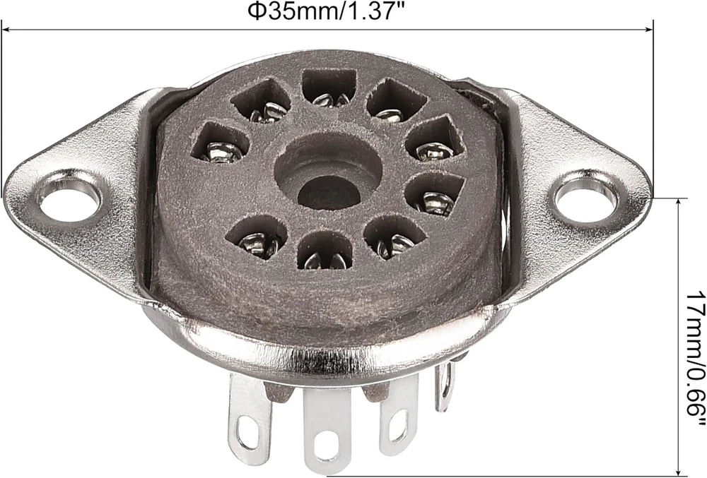 Fast Shipping Great Customer Support Satisfaction Guaranteed DESCRIPTION Shipping Shipping Shipping All domestic packages are shipped for Free (Unless other shipping method was selected during the checkout) Most items ship and arrive much sooner than the estimate delivery date. Usually within 2-3 days from payment. However, we have longer estimates to compensate for the occasional delay or supply chain breakdown. We do not accept P.O. BOXES - PLEASE PROVIDE A PHYSICAL ADDRESS Return Return Return In the event that you would like to return your purchase, we allow returns that are processed within the defined return date (the return date is to be found in the return policy/shipping and handling section) Please contact us for a return authorization and the return shipping address. Payment Payment Payment PayPal is our preferred method of payments it's the quickest, easiest and most secure way to pay for your goods or services online. PayPal offers buyer and seller protection should there be a problem. If you do not have a PayPal account, to get started and buy your first item with us is very easy. Simply click on the 'Buy It Now' button and follow the eBay checkout steps. Select PayPal as the payment method you then will be given the chance to enter your card details in to PayPal's secure checkout in order to pay for your order. Once the payment has been made, you will then be given the opportunity to make your own PayPal account to make paying for your items in the future very easy. Should there be a problem with payment please do let us know. Feedback Feedback Feedback Customer satisfaction is very important to us. If you have any problem with your order,please contact us and we will do our best to make you satisfied, please do not leave a negative feedback before we resolve your problem. We guarantee that your issue will be solved quickly. As long as you are happy with your purchase of , please leave us a positive feedback. Your feedback is very important to us it affects our search placement on eBay. We will leave a positive feedback for you in return automatically once we receive your feedback. Contact Us Contact Us Contact Us If you have any queries, please contact us via ebay. We usually respond within 24 hours on weekdays. Thank you for visiting our ebay store! Electronic tube base: as a connector connecting PCB circuit board and electronic tube,tube amplifier, it is mainly used for spare parts of audio vacuum electronic tube. These parts are used with electronic tubes in audio equipment to improve the sound quality. Model: GZS9-F1;Terminal: 9;Material: Plastic and Tinning plate;Size:35 x 17mm/1.37 x 0.66inch (D x H);Installation hole spacing:27mm/1inch;Installation hole size:3mm/0.11inch;Installation diameter:18.3mm/0.71inch;pack of 2pcs Tube Socket Made of ceramic socket and tough thick gold plating pin. Durable and not easy to rust. 1. Connect the hole of the base with the pin of the electronic tube. 2. Weld the foot on the PCB board. Please confirm the model and the size before you buy. What is this? Electronic tube base: as a connector connecting PCB circuit board and electronic tube, it is mainly used for spare parts of audio vacuum electronic tube. These parts are used with electronic tubes in audio equipment to improve the sound quality. What will I get? Model: GZS9-F1;Terminal: 9;Material: Plastic and Tinning plate;Size:35 x 17mm/1.37 x 0.66inch (D x H);Installation hole spacing:27mm/1inch;Installation hole size:3mm/0.11inch;Installation diameter:18.3mm/0.71inch;pack of 2pcs Tube Socket Is there any advantages of the product? Made of Plastic socket and tough thick Tinning plate pin. Durable and not easy to rust. How to use it? 1. Connect the hole of the base with the pin of the electronic tube. 2. Weld the foot on the PCB board. What should I notice? Please confirm the model and the size before you buy. 12AX7 12AT7 Tube Socket Pack of 2, Plastic Vacuum Tube Pin Protectors Click here to see description Fast Shipping Great Customer Support Satisfaction Guaranteed DESCRIPTION Shipping All domestic packages are shipped for Free (Unless other shipping method was selected during the checkout) We ship within two business days of payment, usually sooner Standard FREE shipping takes between 3-5 business days Expedited shipping takes between 2-3 business days Overnight shipping takes between 1-2 business days We do not accept P.O. BOXES - PLEASE PROVIDE A PHYSICAL ADDRESS We Ship Globally using ebay's GSP, the item is sent to a logistic center in KY and shipped from there to the rest of the world. International customers are responsible for all duties and taxes Contact your local authority for questions related to the amount of duties or taxes you will be responsible for Return In the event that you would like to return your purchase, we allow returns that are processed within the defined return date (the return date is to be found in the return policy/shipping and handling section) Please contact us for a return authorization and the return shipping address. Please contact us for a Return Merchandise Authorization (RMA) number. We advise you to use a reputable carrier service when returning your goods. Please pack all returns appropriately. We ship globally Via eBay's global shipping program (GSP). Thus we don't cover returns for items shipped globally. Buyers returning such items will be refunded ONLY for the item's cost and not for the shipping. please check the Voltage information and make sure it matches the one in your country. In case it's not stated in the description, do ask us. Payment PayPal is our preferred method of payments it's the quickest, easiest and most secure way to pay for your goods or services online. PayPal offers buyer and seller protection should there be a problem. If you do not have a PayPal account, to get started and buy your first item with us is very easy. Simply click on the 'Buy It Now' button and follow the eBay checkout steps. Select PayPal as the