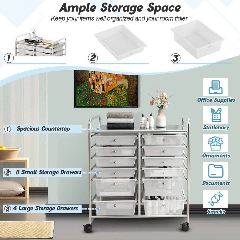 12-Drawer Rolling Storage Cart with Large Capacity and Wheels