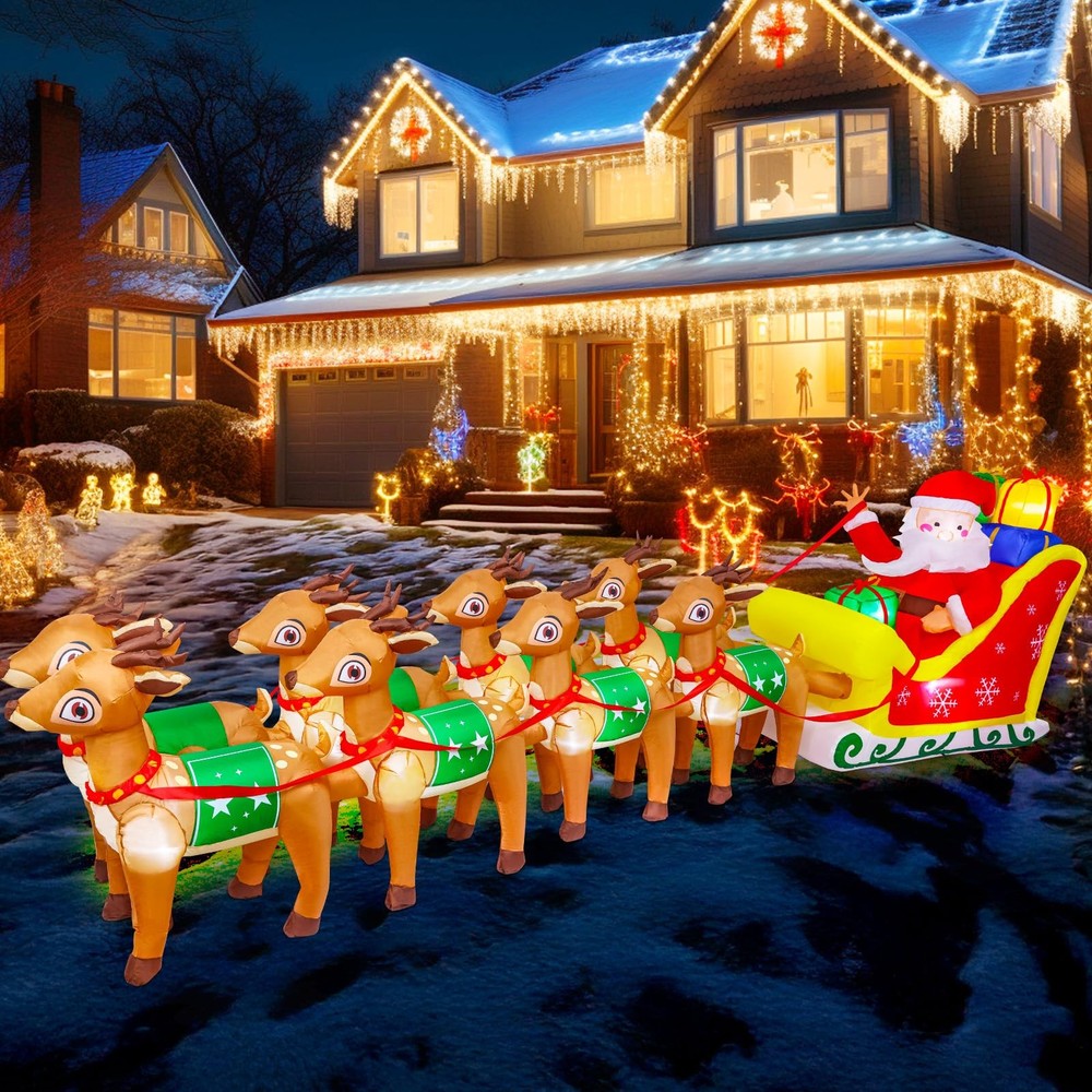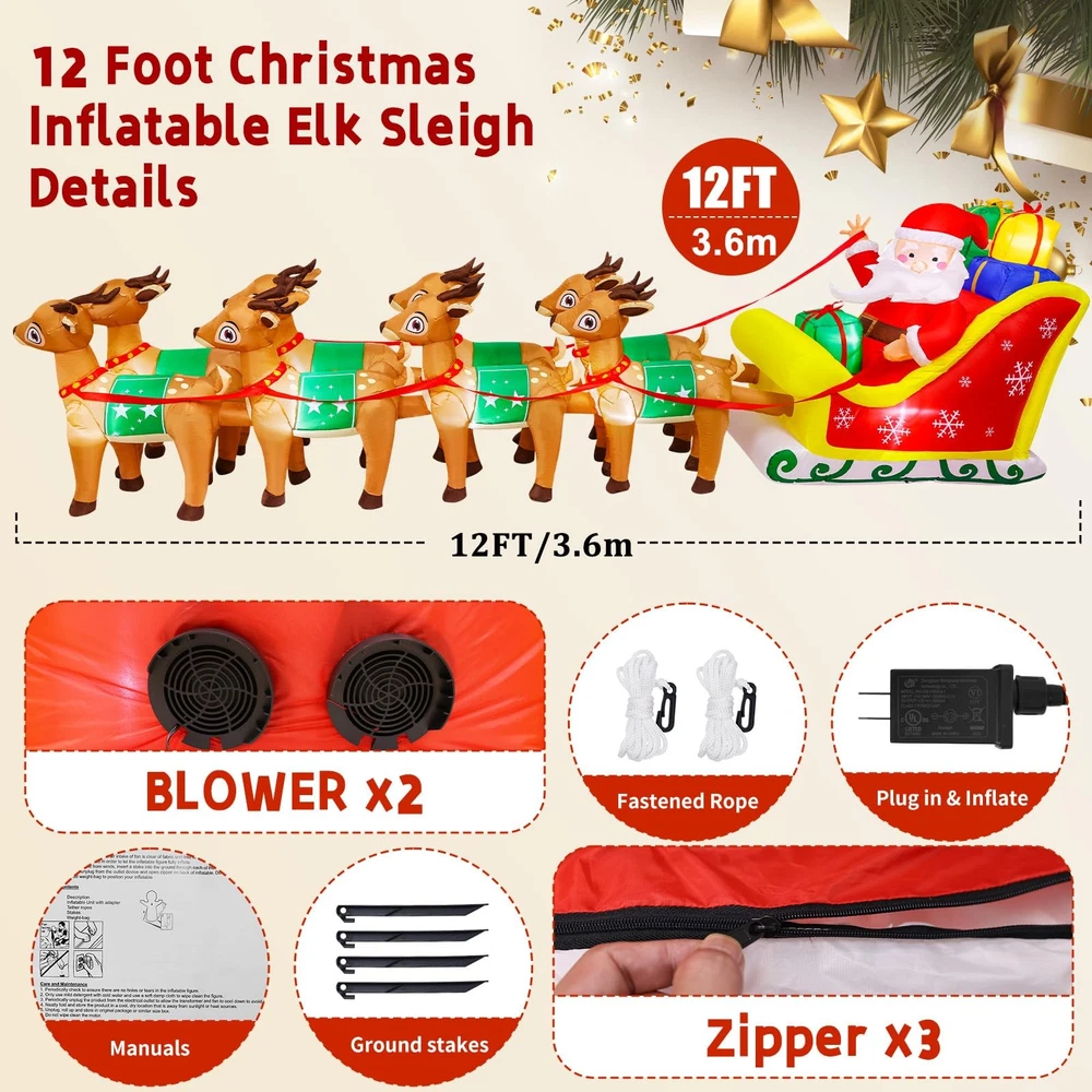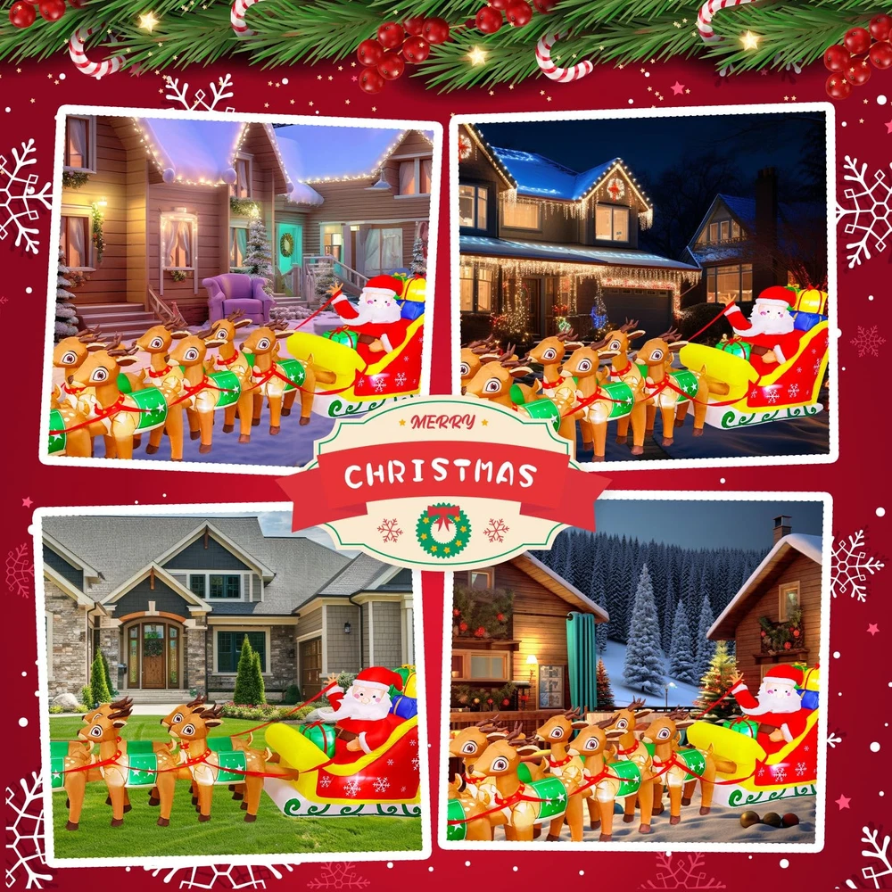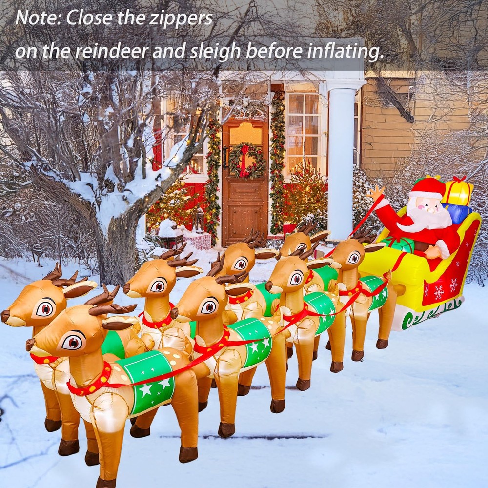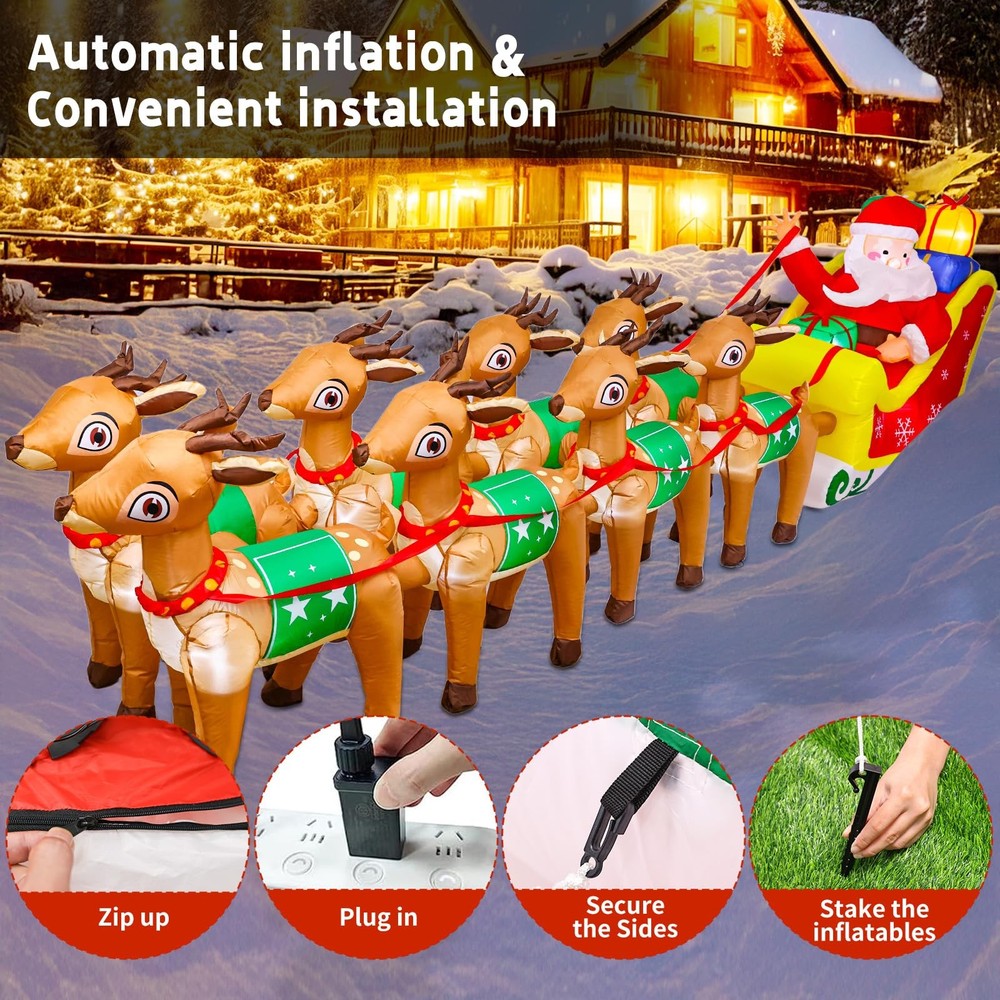 12FT Christmas Inflatables Santa Claus and Reindeer NEW LED Outdoor Decoration Long Christmas Inflatable: Standing at 12 feet length, this inflatable commands attention and transforms your outdoor area into a festive wonderland. Adorable Christmas Designs: Featuring a variety of festive themes, this 12 FT Christmas inflatable showcases Santa on a sleigh led by 8 reindeer, bringing the magic of the season to your home. Your kids and friends will fall in love with this enchanting Christmas decoration at first sight! Built-in LED Lights: This inflatable outdoor decoration features eye-catching, super-bright lights that create a sparkling effect, illuminating your yard or lawn even on the darkest nights. As night falls, Santa and his reindeer will light up your outdoor space, bringing joy and delightful surprises to all! Waterproof Material: The giant inflatable train is made of high-quality polyester Fabrics, waterproof, not easy to be pierced by sharp and hard things, the excellent stitching improves its durability. What's more, the vivid color won't discolor adopting spraying technology. Indoor and Outdoor Decoratiaons: The Christmas inflatables decorations are suitable for home, party, stage prop, classroom decorations, art decorations, Christmas event decorations, Christmas night event, New Year and more. A great addition to Christmas indoor-outdoor courtyard garden décor. Elevate your Christmas celebrations with our impressive 12 FT Christmas Inflatable, featuring Santa Claus, reindeer. This eye-catching decoration is designed to bring the joy of the holiday season to your outdoor space. With built-in LED lights, it creates a captivating and magical ambiance during both day and night. Shipping We offer FREE shipping on all orders! We ship within Three business days of payment, usually sooner. We use a selection of shipping services such as UPS, FedEx, USPS etc. We only ship to the lower 48 states, no APO/FPO addresses or PO Boxes allowed. Local pickups and combined shipping options are not provided at this time. Return You can return a product for up to 30 days from the date you purchased it. Any product you return must be in the same condition you received it and in the original packaging. Please keep the receipt. Payment We accept payment by any of the following methods: PayPal Please pay as soon as possible after winning an auction, as that will allow us to post your item to you sooner! Feedback Customer satisfaction is very important to us. If you have any problem with your order, please contact us and we will do our best to make you satisfied. Contact Us If you have any queries, please contact us via ebay. We usually respond within 24 hours on weekdays. Please visit our eBay store to check out other items for sale! Thank you for shopping at our store.