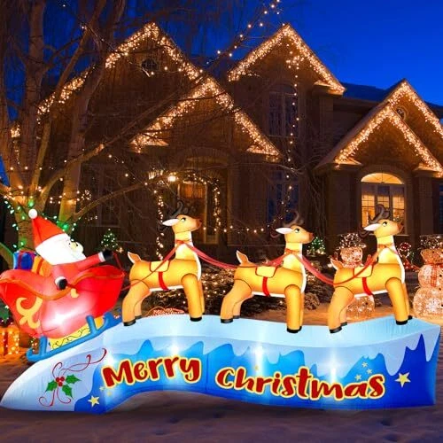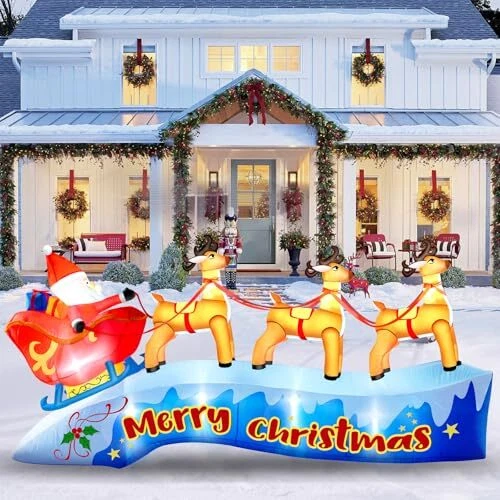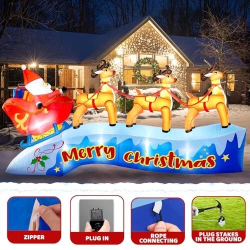 30 Days Return Policy Fast Delivery Trusted seller 12FT Long Christmas Inflatable Outdoor Decorations, Santa Claus on Sleigh with Three Reindeers, Christmas Blow Up Built in LED Lights Inflatables Outdoor Christmas Decorations for Outdoor, Lawn Product Description 【????? ??? ???????? ??????????】: Add holiday cheer to your outdoor decor with this 12FT long christmas inflatable santa sleigh - perfect for all your Christmas celebrations. Create a cheerful holiday display with an inflatable Santa sitting in a sleigh pulled by three lovely reindeer. 【???????-?????????】: Made of high strength polyester materials, this christmas inflatable sleigh will withstand the protection. The waterproof surface ensures that your inflatable santa and reindeer stays protected from rain or snow. With a tear-resistant surface, your santa reindeer outdoor decoration won't get damaged in windy conditions. Fine stitching adds durability and ensures that your inflatable Santa can be stored for a long time. 【??? ????? & ??????】:Our santa reindeer inflatable built-in LED lights and a powerful blower, bright LED lights make christmas decorations inflatables shine at night, creating a special demonstrate for everyone to enjoy. With the included power supply and blower, this inflatable comes to life in seconds, transforming your yard into a festive place. Spread holiday cheer with a charming santa with sleigh and reindeer, perfect for adding a festive touch to your yard. 【???? ?? ?????】: Easy to set up and inflate, this christmas inflatables outdoor is sure to impress your neighbors and guests. This christmas outdoor inflatables in minutes and store it away with ease when not in use. Ensure your inflatable christmas decorations stay in place with the 6 ground spikes and 2 water bags provided. Tie on the drawstrings to easily secure the blow up christmas decorations to your desired location. No worries about being blown away by the wind. 【???? ???????????】: Make a statement with this charming inflatable outdoor holiday yard decorations that will surely bring joy to your home during the holiday season. Whether you're looking to enhance your outdoor lawn, garden, patio, or add a festive touch indoors, this Santa and reindeer inflatable is the ideal choice. Shipping Returns Payment Shipping Shipping is FREE to all addresses other than APO/PO boxes in the lower 48 states. All our stock ships from US-based warehouses. Shipped via USPS or UPS (depending on location and package weight) Unless stated otherwise, all orders will ship within 24-72 hours of your payment being processed. Check our feedback to see the great reviews of FAST shipping we offer. Returns As our valued customer, we will do our best to make sure the product you receive arrives to you on time and as expected. If you are not satisfied with your purchase, please contact us within 30 days of receiving your order to process a return. Payment We currently accept payment via eBay managed payments only. Once payment is cleared, we will dispatch your shipment within 1-3 business days. Please refer to the "Shipping" tab for more information regarding shipping speed to your destination.