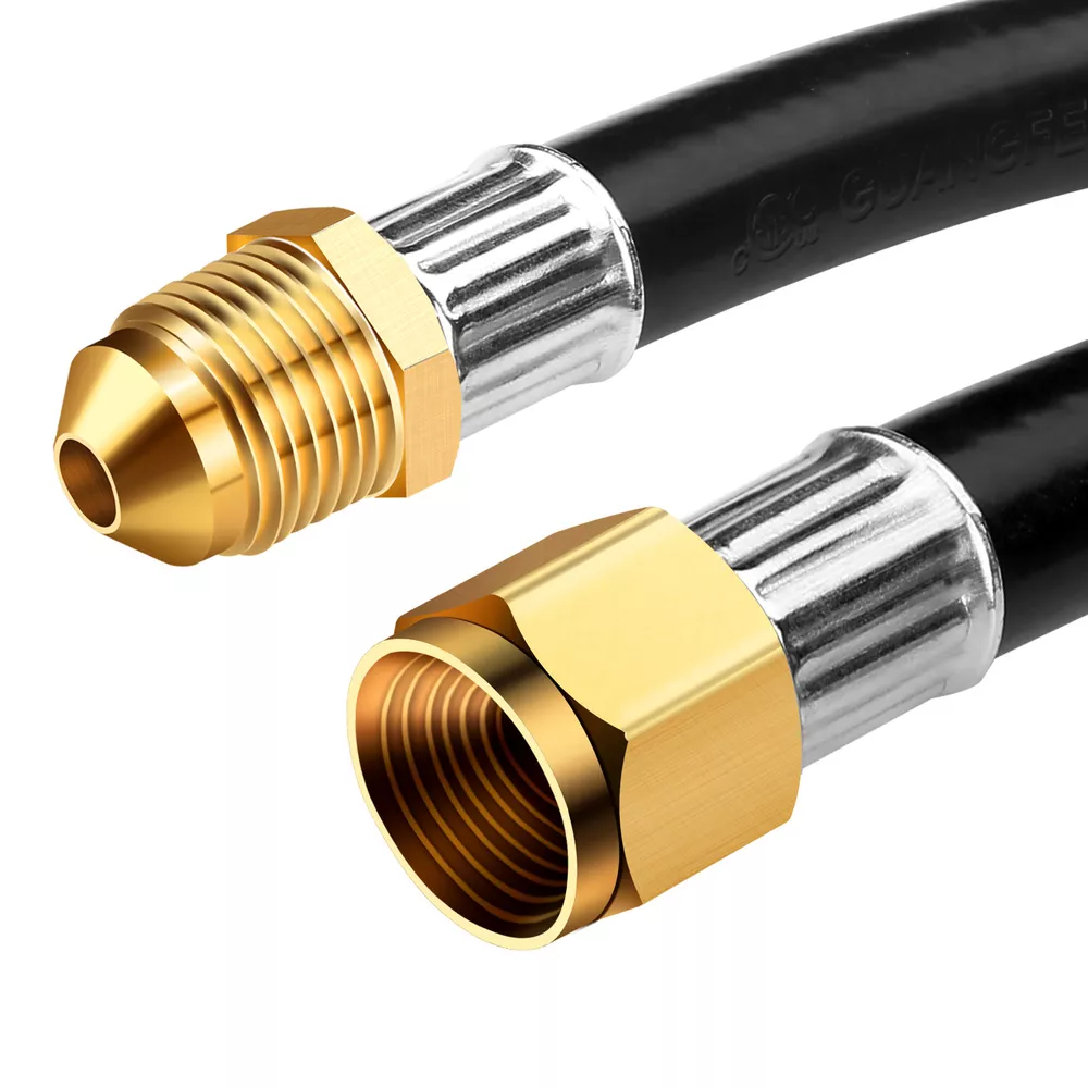 12FT Propane Extension Hose, 3/8 inch Female Flare Fitting x 3/8 inch Male Flare Fitting Propane Hose for Gas Grill, RV, Turkey Cooker, Propane Fire Pit, Heater, Generator, Gas Grill, and More Features and further details 12 Feet long propane hose, extended propane hose with 3/8'' Female Flare Fitting x 3/8'' Male Flare Fitting , can meet your BBQ needs. Convenience : 12FT propane appliance extension hose is convenient for you. You don't have to move your larger fuel tank. and it can be used in addition to the existing hose for more length between the propane tank and the gas appliances. Good Quality : Our propane extension hose is made of 100% solid brass end and high quality rubber hose construction withstands weather, scratching, denting and corroding, more flexible and durable. Application: WADEO propane extension hose can be used for BBQ Gas Grill, Turkey Cooker, Propane Fire Pit, Generator, BBQ Gas Grill, Heater and More. Attention: The propane hose is ONLY use for low pressure propane appliance. Please connect your low pressure regulator to a standard propane appliance. 12 FT Propane Extension Hose, 3/8 inch Female x Male Flare Fitting Propane Hose Specification Length: 12 Feet. 3/8'' Female Flare Fitting x 3/8'' Male Flare Fitting. Attention: ONLY use for low pressure propane appliance. Use for: Gas Grill, Turkey Cooker, Propane Fire Pit, Generator, BBQ Gas Grill, Heater and More.