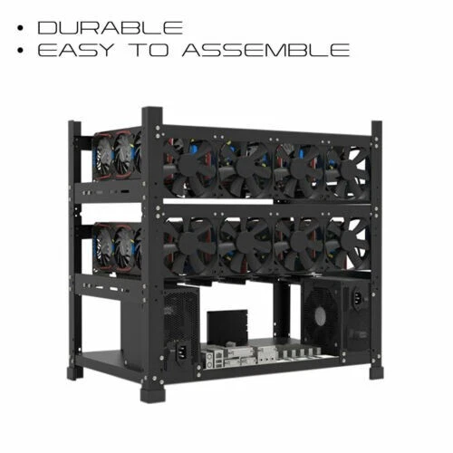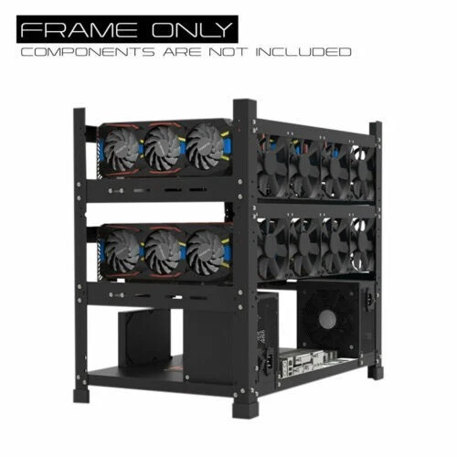 12 GPU Steel Open Frame Mining Chassis - Ethereum Zcash Lite coin - USED - GREAT CONDITION Material: Steel Color: Black Type: Open frame chassis Product Dimension: L20 x W14 x H20 Inch Weight: 11lbs High quality steel material. Strong & durable, fully protecting your GPU and electronic device. Accelerates the air flow and circulation. Super cooling design for heat dissipation. Enhances the cooling and extends the service life of graphics cards. Professional design. Non-marring and non-slip rubber feet Easy & fast installation in 20 minutes with detailed instructions. frame only, does not include fans or other CPU, GPU, PSU, motherboards, cables. Specifications Compatible Motherboards: ATX 305x245 Power Supply: 2 x ATX Power Supply Positions Supports 12 GPUs with a solid mounting plate Supports 6 motherboard add on cards with a solid mounting plate Supports 2.5” and 3.5” SSDs and HDDs Supports 8 x 120mm fans Assembly required