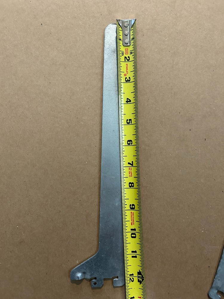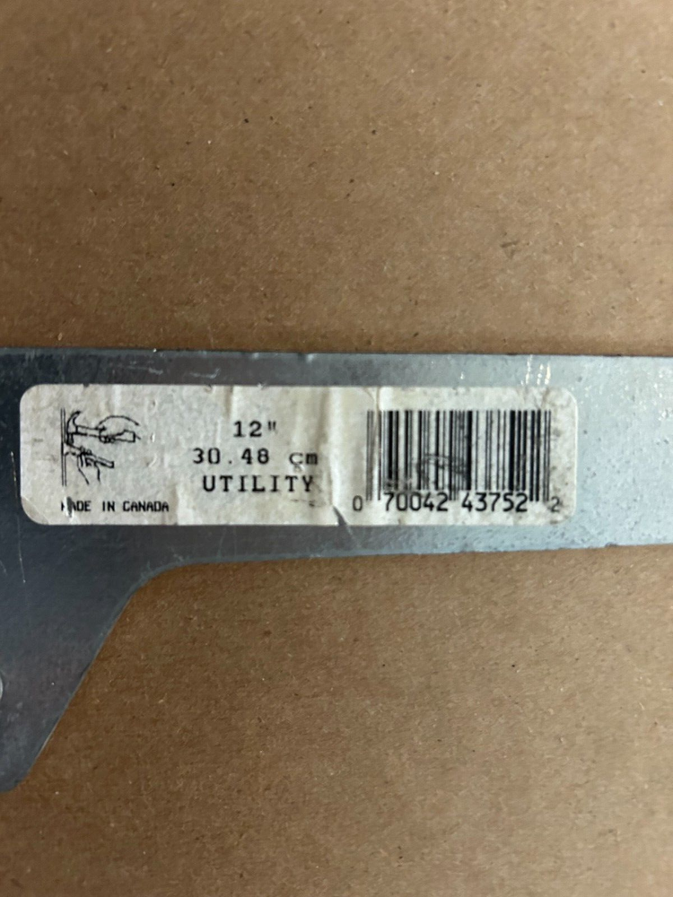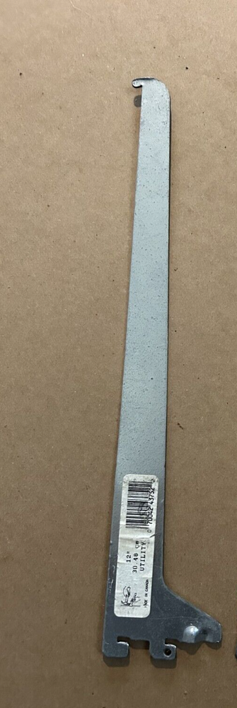 For sale is a 12-inch metal utility shelf bracket made in Canada. It measures 12 inches in length and 2.5 inches in width. Crafted from galvanized steel, it is corrosion-resistant and built for heavy-duty use. Minor scuffs are present but do not affect functionality. Perfect for utility, garage, or workshop shelving. Keywords: 12-inch shelf bracket, heavy-duty metal bracket, utility shelf support, galvanized steel bracket, made in Canada, storage shelving hardware. Brand: Unbranded Type: Utility Shelf Bracket Material: Galvanized Steel Dimensions: Length: 12 inches Width: 2.5 inches Condition: Pre-owned, minor wear and scuffs on the surface. Country of Manufacture: Made in Canada Application: Suitable for utility or storage shelving in garages, workshops, or home spaces. Features: Heavy-duty, corrosion-resistant, durable, and easy to install.