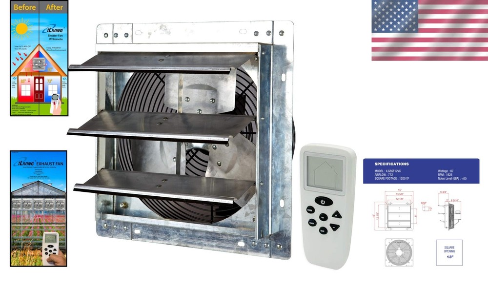 12” Exhaust Fan with Wireless Remote Attachable Thermostat Humidity Control ‹ › ‹ › ‹ › ‹ › ‹ › ‹ › ‹ › ‹ › 12” Exhaust Fan with Wireless Remote, Attachable Thermostat & Humidity Control Elevate your home's comfort and efficiency with our 12” Exhaust Fan, designed for effortless cooling and ventilation. This elegant addition not only reduces cooling costs but also maintains a pleasant atmosphere all long. Key Features: CUT COOLING COSTS: Reduce expensive cooling bills at home with our wall-mounted automatic shutter vent fan. MULTIPURPOSE USAGE: Ideal for various spaces - from attics to garages, it's a versatile solution for effective ventilation. REMOTE CONTROL & VARIABLE SPEED SETTINGS: Customize your comfort with a Digital Display remote, regulating speed, temperature, and humidity effortlessly. WEATHER RESISTANT SHUTTERS: Crafted from high-grade aluminum, these shutters endure moisture and heat, ensuring durability and performance. POWERFUL & EFFICIENT: Operating on standard 120 volts at 1/20 HP and achieving 1670 rotations per minute, this fan can cool and ventilate an area of up to 960 cubic feet per minute! Why Choose Our Exhaust Fan? Forget about excessive cooling bills and discomfort. Our 12” Exhaust Fan offers superior craftsmanship and engineering, providing reliable ventilation and a cooler living space. Its heavy-duty galvanized steel frame, weather-resistant components, and automated shutters ensure optimal performance and longevity. Whether enhancing comfort in your home, attic, garage, or shed, this fan stands out as a powerful, efficient, and stylish solution. Simplify your cooling needs today! Order now and embrace a refreshing environment in your home with our advanced Exhaust Fan! Shipping Free & Fast Shipping - We offer free shipping to most of the USA with a normal delivery time of 3-7 days. However, due to the current situation, additional delivery time (up to 3 weeks) may be required for some items. Alternative Carriers - We may use alternative carriers (e.g. USPS, FedEx, UPS, etc.) to ensure your package arrives safely and on time. Due to the use of multiple carriers, we are unable to provide a tracking number automatically. Handling Time - Orders are processed and shipped within 1-2 business days of receiving cleared payment. Shipping Restrictions - Shipping to Alaska, Hawaii, Puerto Rico, Guam, and other US territories may incur shipping charges or delivery restrictions. Please contact us before ordering, or your order can be refunded/cancelled. State Restrictions - There may be restrictions based on your state of purchase. For example, certain items may not be shipped to California due to state regulations. Contact for Tracking Updates - If you require tracking updates or have any concerns about the delivery of your order, please feel free to contact us, and we will be happy to assist you. Return 30-Day Hassle-Free Returns - We want you to be completely satisfied with your purchase. If you are not, you can return the item within 30 days of receiving it for a full refund or exchange. Easy Return Process - To start a return, simply contact us and we will provide you with a prepaid return shipping label and detailed instructions. Restocking Fee - There are no restocking fees for returns. However, the buyer is responsible for return shipping costs if the return is not due to a seller's error. Refund Processing Time - Refunds will be processed within 5 business days of receiving the returned item in its condition. Payment We accept all major credit cards, PayPal, and Apple Pay for your convenience. Your payment information is secure and encrypted to ensure a safe and seamless transaction. Please complete your payment within 3 days of purchase to avoid any delays in shipping. Feedback Your feedback is extremely important to us. We strive to provide the best products and customer service possible. If you are satisfied with your purchase, please take a moment to leave us a positive review. If you have any concerns or issues with your order, please contact us before leaving negative feedback. We are committed to resolving any problems and ensuring your satisfaction. Contact Us If you have any questions or concerns, please feel free to out to our customer support team. You can contact us through the eBay messaging system. We are available Monday to Friday, 9:00 am to 5:00 pm EST, and we will do our best to respond to your inquiry within 24 hours. Buy it now and enjoy a pleasant shopping experience! UPC: 850005348030 Unit Quantity: 1 Material: Aluminum,Alloy Steel Features: Digital Display,Wireless Smart Remote Controller,Variable Speed Settings,Weather Resistant Shutters,Thermally Protected Motor,Permanently Lubricated Motor,Automatic Shutters Room: Bathroom,Garage,Warehouse,Workshop Mounting: Wall,Wall Mount Power Source: Electric,Corded Electric Control Style: Remote Control Type: Exhaust Fan Ventilation System: Exhaust Fan Color: Silver Item Depth: 5.75 in Number of Blades: 3 Number of Speeds: 1 Voltage: 120 V Finish: Metallic Power: 60 W Unit Type: Unit