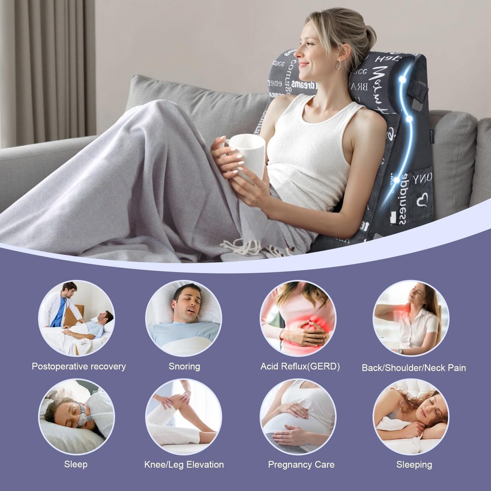 This set has been a total game-changer for my sleep quality! The wedge perfectly elevates me to prevent reflux while the knee pillow aligns my hips. So comfortable and supportive for reading or sleeping - I wake up feeling truly rested without any aches.