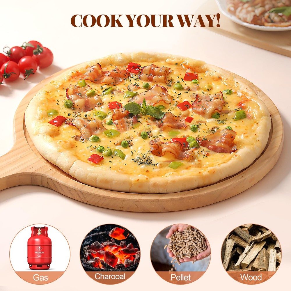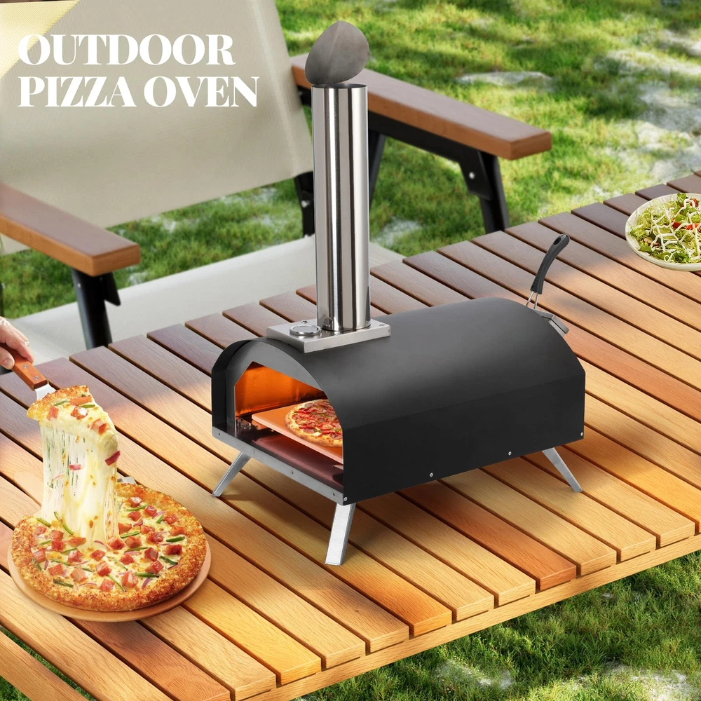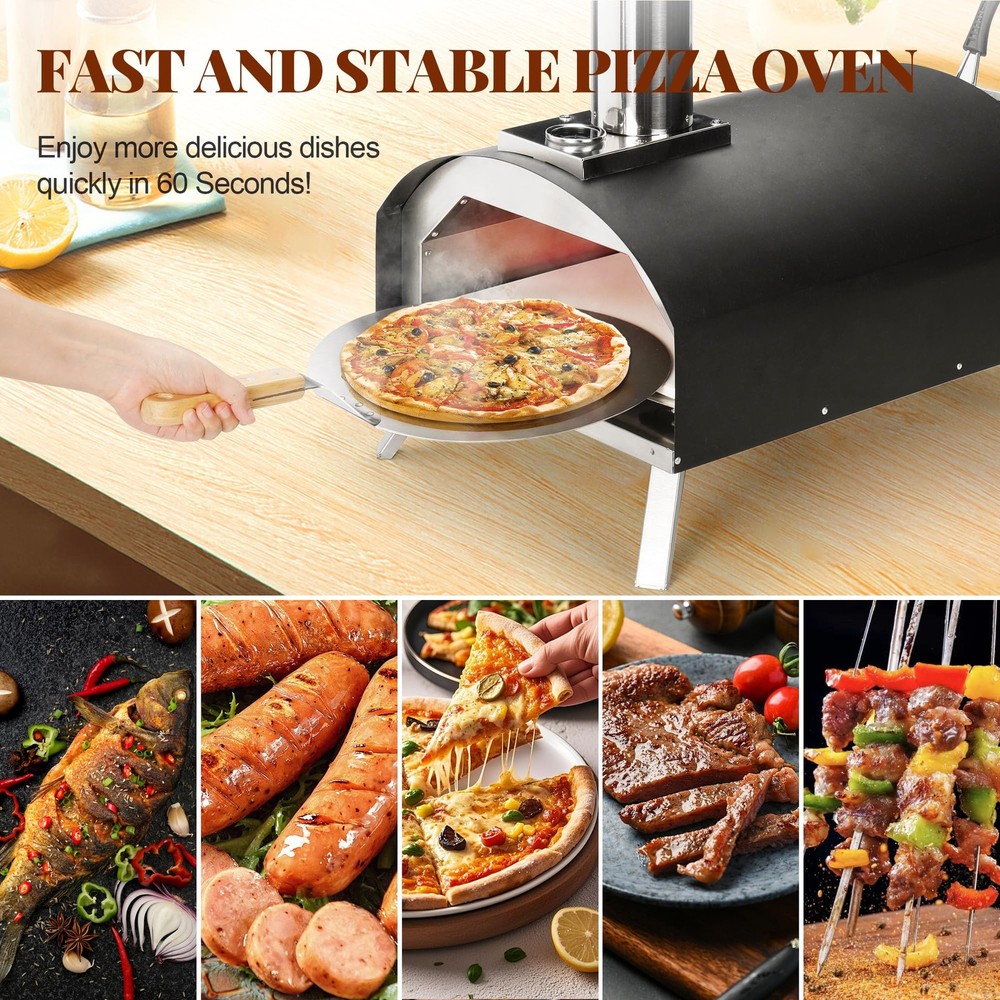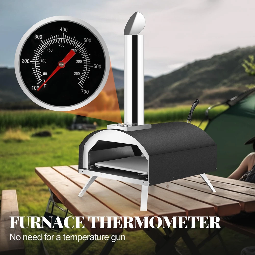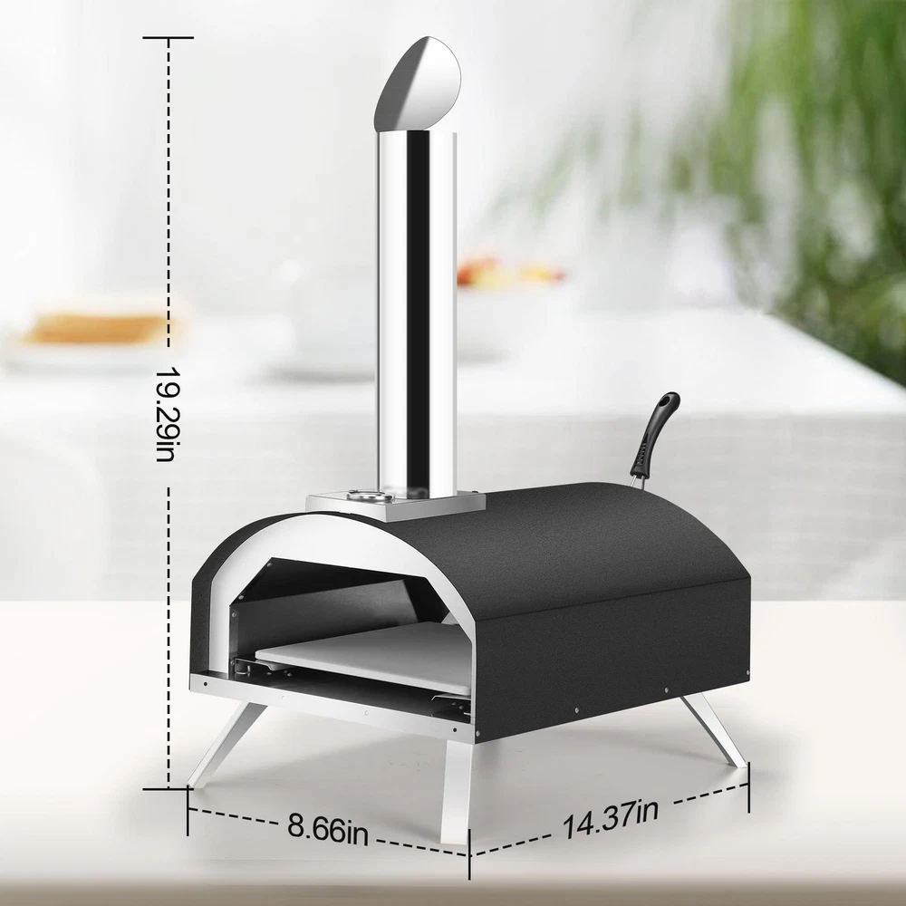 Wood-Burning Pellet Pizza Oven: Heat up with wood or charcoal right out of the box and enjoy the light wood-burning flavor; Turn your backyard into a pizzeria; This versatile pizza oven maker can be used not only for pizza but also for baking breads, grilling meats, and more Versatile & Portable: This Lightweight and sturdy outdoor pizza oven with folding legs is easy to port and store; Whether you're hosting a party or enjoying a family meal, this portable pizza oven is a must-have for your outdoor cooking gear Internal Thermometer: The outdoor pizza maker comes with a built-in thermometer that allows you to easily monitor the internal temperature of the oven, farewell to soaked or scorched pizza, and enjoy restaurant-quality pizza comfortably Excellent Quality Construction: This Granule Pizza Oven is built with high-quality stainless steel for durability and long-lasting performance; This outdoor pizza oven is sturdy and compact it safely cooks all types of food Convenient to Use: Our pizza ovens for outside is very easy to install and easy to use, and does not require any expertise; just place the pizza in the oven, watch the surface of the pizza to adjust the rotation speed, and immediately enjoy the real stone-grilled pizza