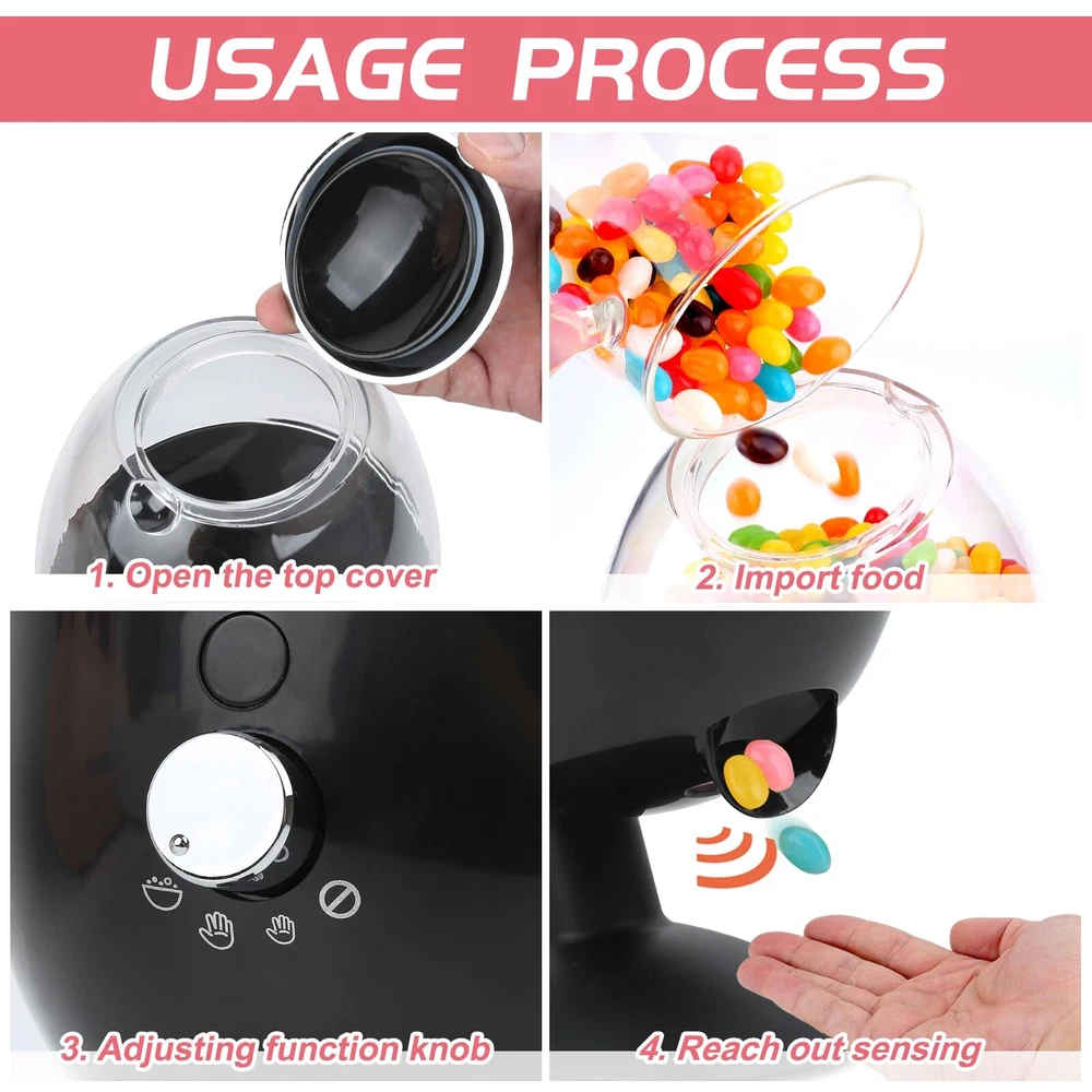 ๐ญใ๐๐๐ฐ ๐๐ฉ๐ ๐ซ๐๐๐ใAs designers of the automatic candy dispenser,we have found that the old candy dispenser's reflective base causes the candy delivery mechanism to run when not needed, resulting in candy falling on the ground. So we improved the base to avoid this problem. Of course,the best thing is to adjust the down switch button to the off state when not in use. ๐ฌใ๐๐ฎ๐ญ๐จ๐ฆ๐๐ญ๐ข๐ ๐๐๐ง๐๐ฒ ๐๐ข๐ฌ๐ฉ๐๐ง๐ฌ๐๐ซใAuto candy dispenser is usually used in public places, we want people to get the candy without touching,avoiding their hands sticking into the candy directly and keeping hygiene,so we designed this candy machine,which has 3 dispensing options and sensitive sensing device,you only need to stretch out your hand to sense to get the candy. ๐ญใ๐๐ฅ๐๐ฌ๐ฌ๐ข๐ ๐๐จ๐จ๐คใDesktop candy dispenser measures 12.2*7.8in,has a larger capacity and a thickened case for durability.Candy dispenser has an oval shape appearance and automatic motion sensor function.The combination of and technology candy dispenser will surely be the star product in the party. ๐ฌใ๐๐จ๐ง๐ญ๐๐ข๐ง๐ฌ ๐ ๐๐๐ซ๐ข๐๐ญ๐ฒ ๐๐ ๐๐๐ง๐๐ข๐๐ฌใcandy dispenser has a good seal to keep candies,cereals fresh.Great for dispensing M&M's,chocolate beans,jelly beans,coffee beans,candies,peanuts.Can surprise party guests and enjoy a nice snack time together. ๐ใ๐๐ข๐๐ญ ๐๐๐๐๐ฌใCandy dispenser countertop is suitable for office desk, office pantry,bar, cafe, classroom,home game room, party decoration.Desk candy dispenser has a beautiful package,can be used as housewarming,Halloween, Christmas gift,it's a perfect choice for candy lovers,spouses,parents and children.Can add attraction to your restaurant,and business.