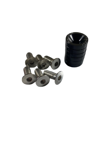 A very easy mod to carry out on your pride & joy, Perfect for replacing those old rusty bolts. They can be used in a variety of places including fenders, bumpers, headlights, trunks, license plate frames, and anywhere else they will fit. Specification: Colour: Black Material: 6061 Aluminium Washers & Stainless Steel Bolts Hex Bolt Size: M8 Overall Screw Length: 20mm This is a 12 piece kit and consists of 6 stainless steel bolts and 6 washers in black