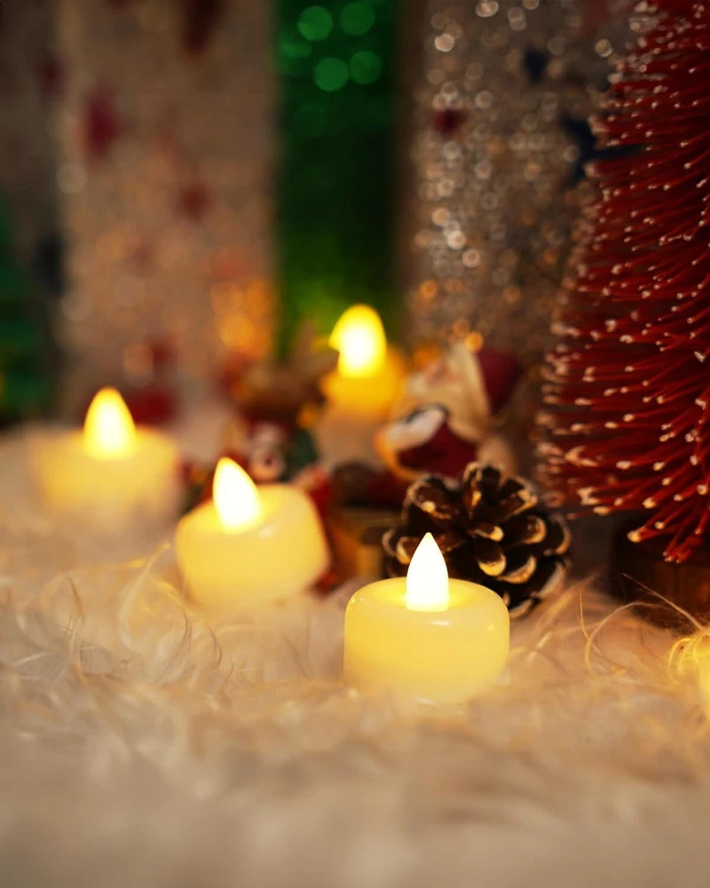 DIY TEALIGHTS CANDLE: The flat tea lights candle edge is perfect for DIY. You can place your favorite decorations, write warm blessings, and draw the patterns you want. Warm white light LED tealight candles better simulate real tealight candles 12PACK SET: 1.41"W x 1.37"H battery tea lights candles(Battery pre-installed) can be the perfect replacement for traditional candles used at home, avoiding the fire hazards of traditional candles, do not worry about candles being blown out by the wind 100 HOURS LED CANDLES: Battery powered candles last 20 times as long as the traditional wax tea lights, you can also replace the battery of the flameless candle by opening the battery cover. AG10 Coin Batteries are small parts, Not for children under 3 yrs ADD ATMOSPHERE: These LED flameless tealight candles can be placed on the dining table or in the room to add a warm atmosphere, electric tealight candles can also be decorations during weddings, proposals, Halloween, Christmas, Holidays, or important occasions SIMPLICITY DESIGN: You only need to gently flip the switch at the bottom to control the working state of flameless candles. Flameless tea light candles are now available in different quantities of 12/24/50/100/150 packaging, which can be selected according to your needs