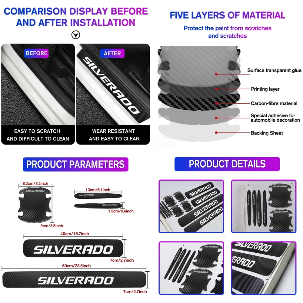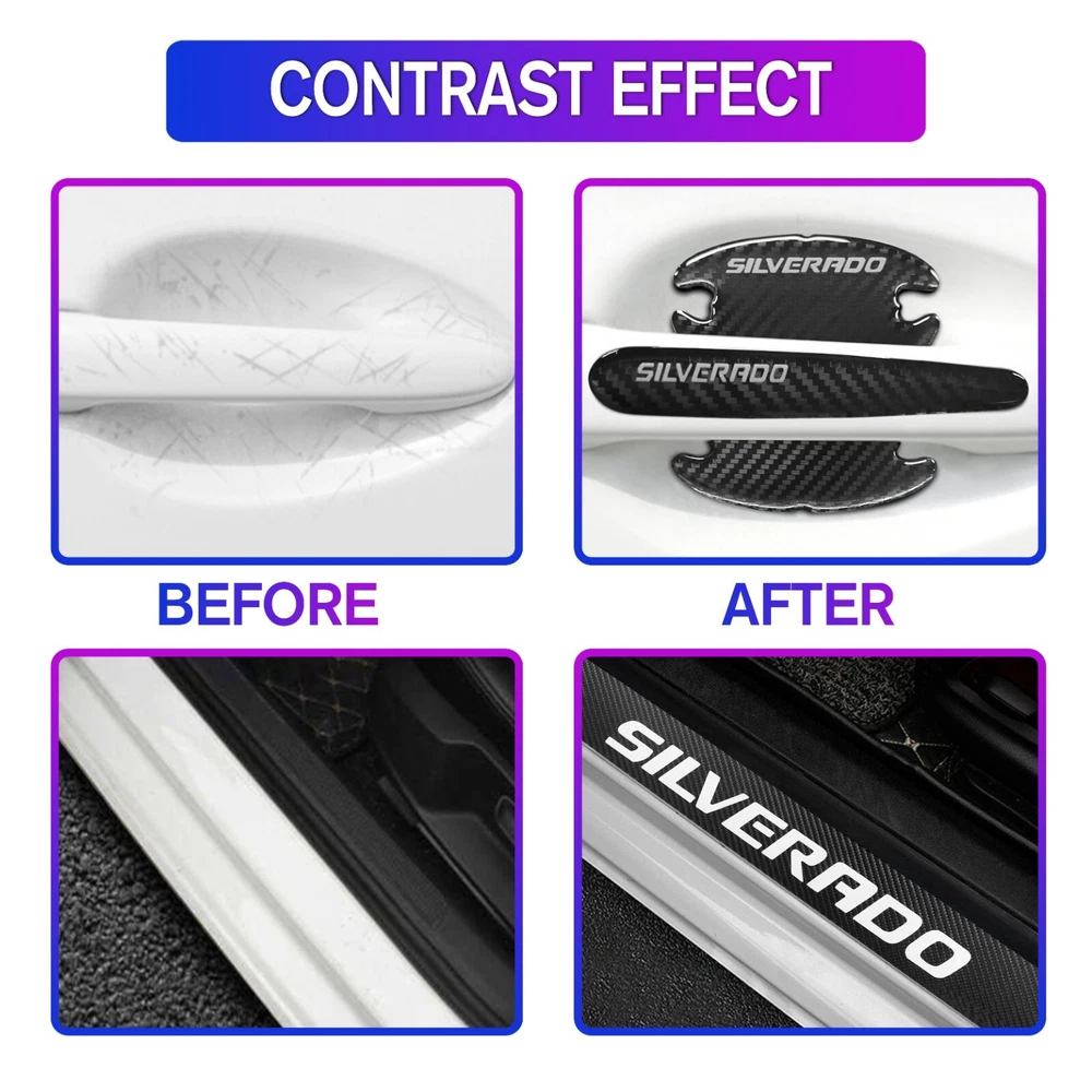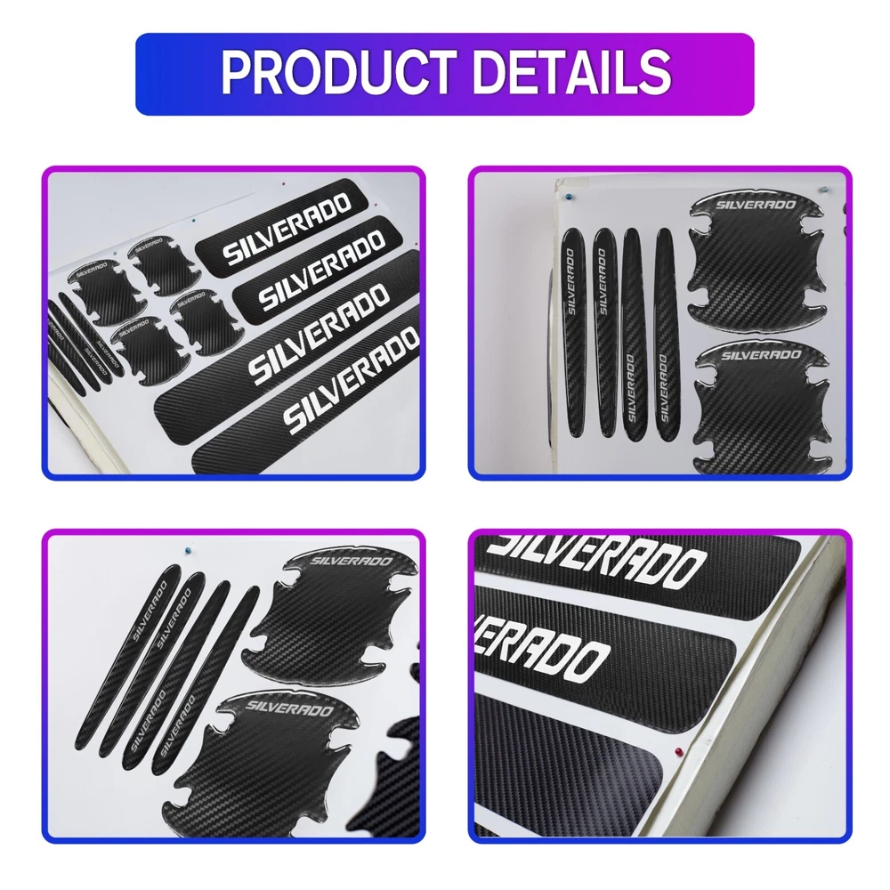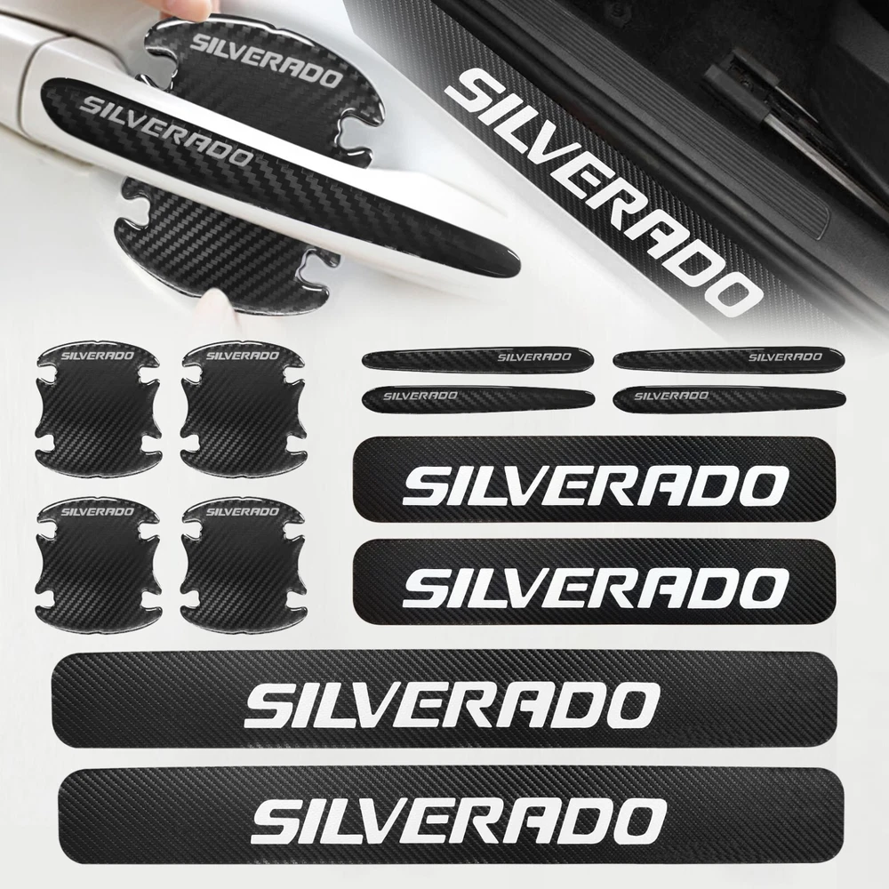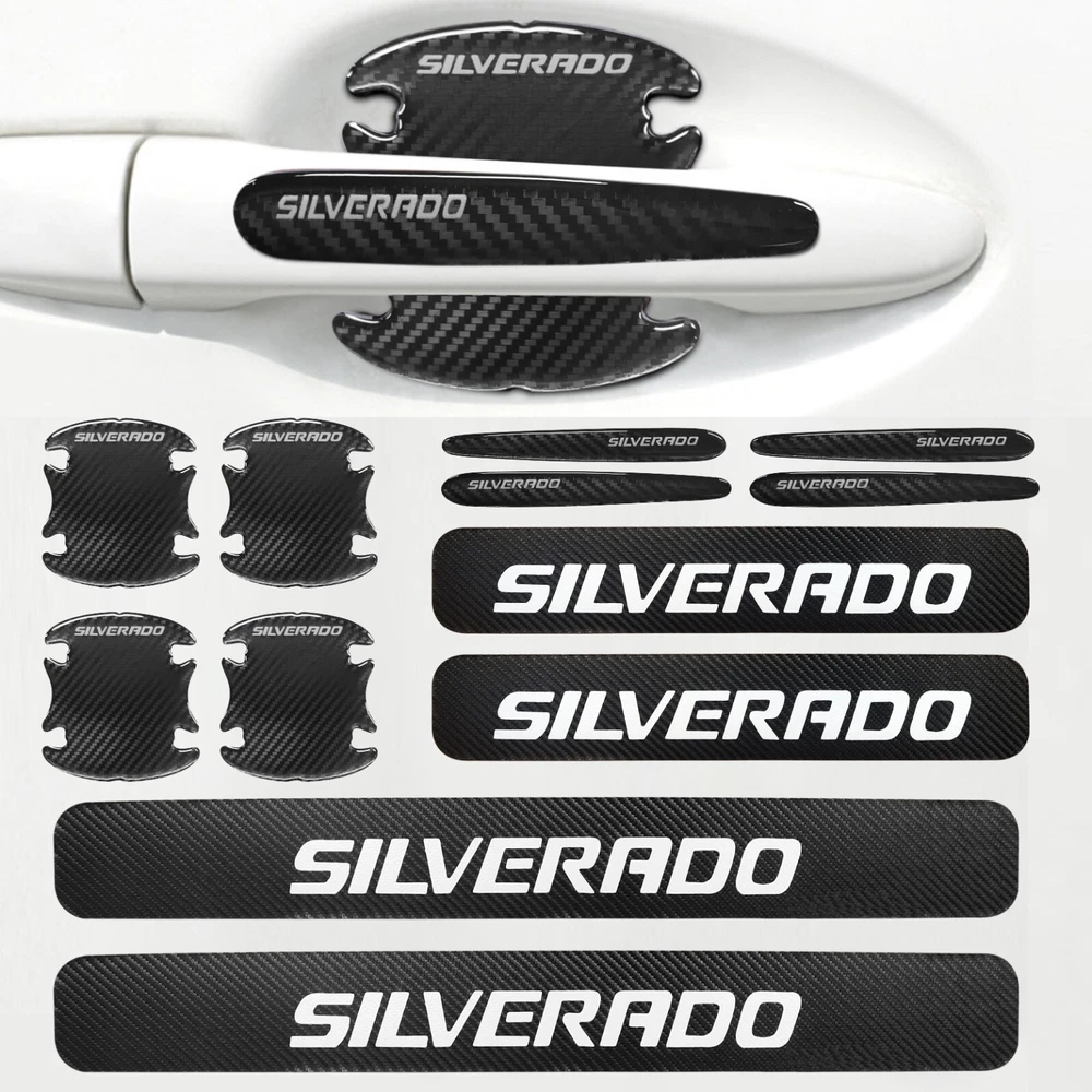 Material: Carbon Fiber Texture Universal Fitment: Yes Attachment Type: Adhesive Features: Easy Installation, Heat Resistant, No Drilling Required, Self-Adhesive, Waterproof Type: Door Finish: Matte Fit for: For Chevrolet Silverado Brand: Unbranded Color: Black&White Placement on Vehicle: Left, Right