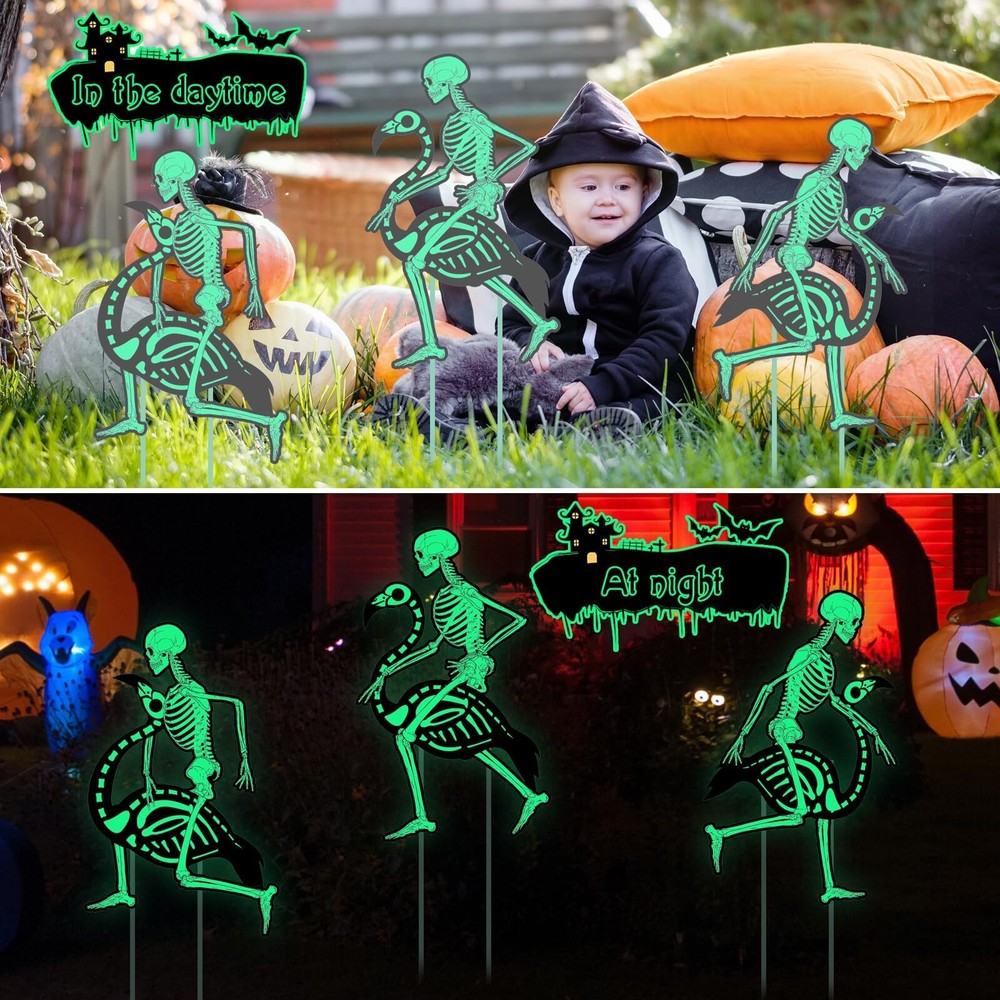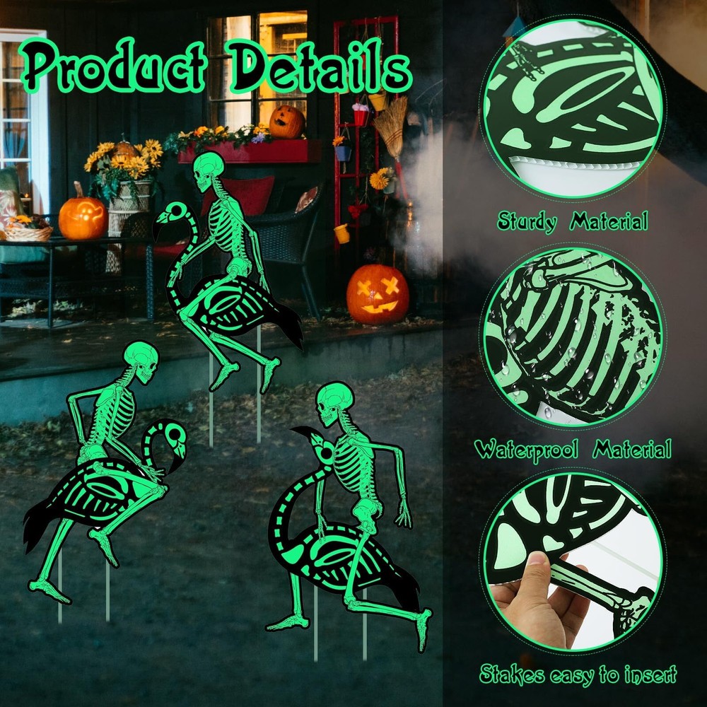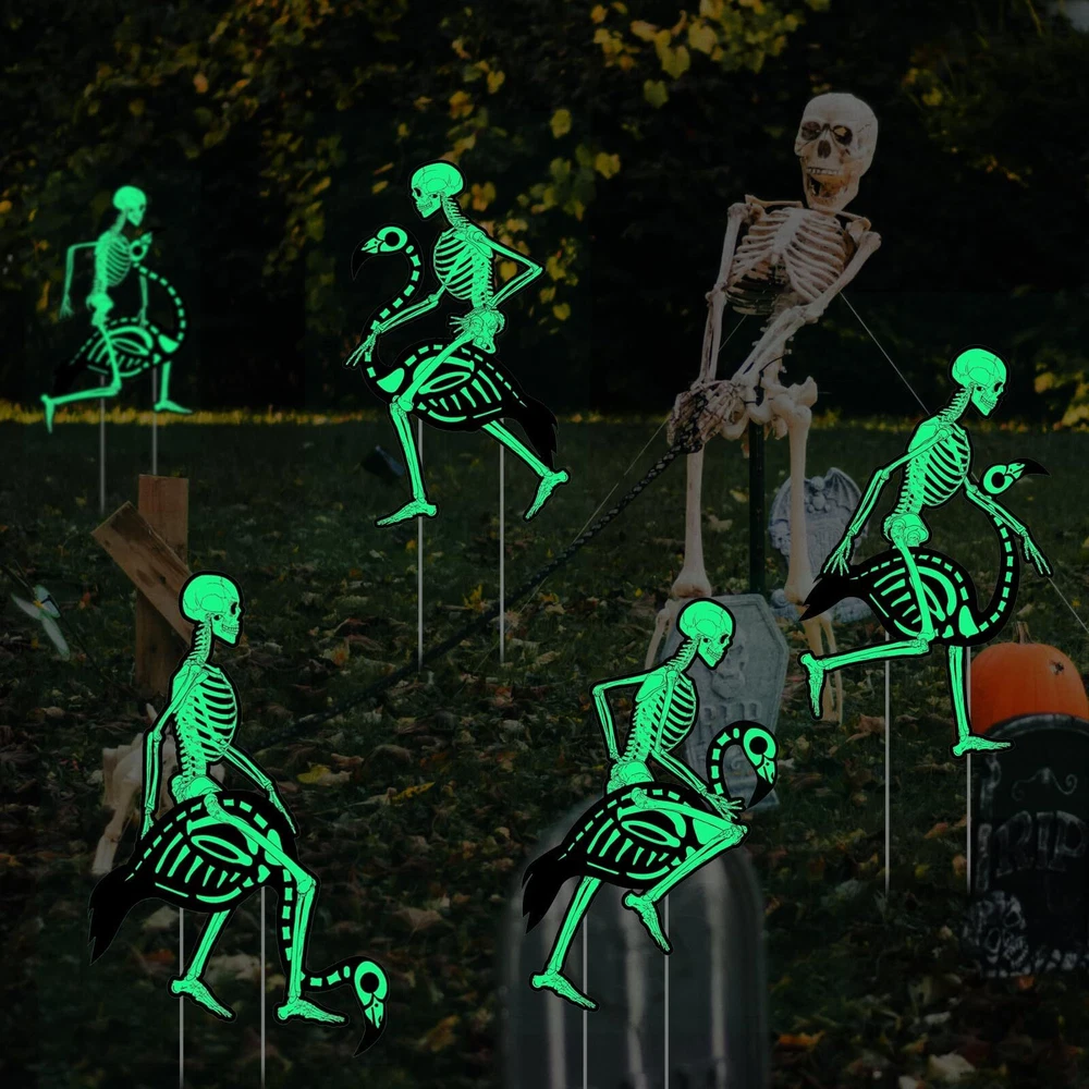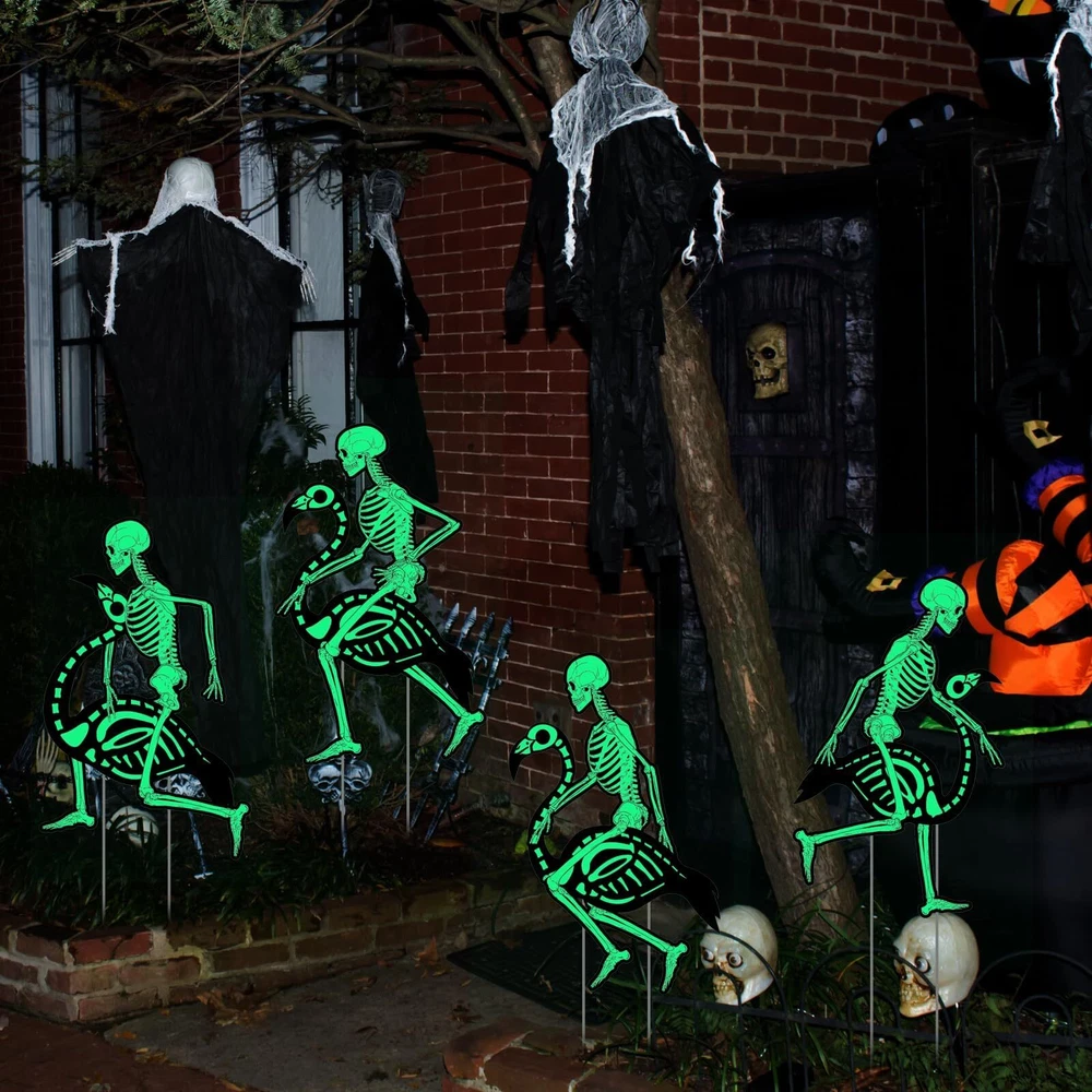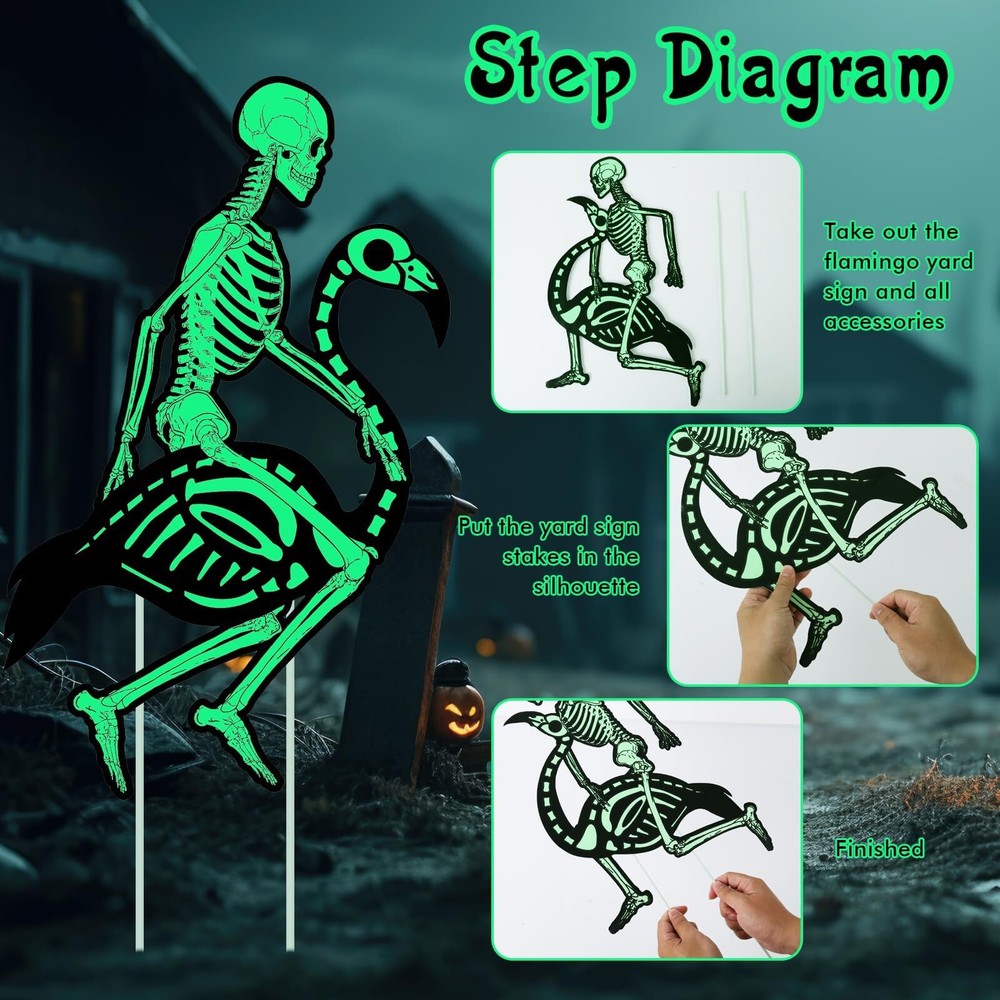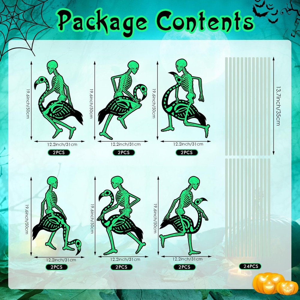 Features: Reliable to use: This yard flamingo skeleton for Halloween is made of quality material, which is reliable to use, sturdy and firm, not easy to fade and break, can be applied for a long time. Surprising gift: The plastic lawn flamingos with exquisite craftsmanship and attractive appearance, are considered as ideal presents for your friends, family members, neighbors, colleagues, etc., which will gain their affection. Specifications: Material: hollow board, plastic Color: as shown in the picture Size: as shown in the picture Package includes: 12 x Flamingo yard signs 24 x Stakes Notes: Manual measurement, please allow slight errors on size. The color may exist a slight difference due to different screen displays. Rich in Quantity: you will receive 12 pieces of glow in the dark Halloween skeleton flamingo yard signs in 6 different styles, the sufficient quantity is enough to meet your daily use and need Halloween Skeleton and Flamingo Design: Halloween skeleton yard signs are designed with the appearance of a skeleton riding on a flamingo, colorful and attractive, adorable and elegant, ideal for Halloween cemetery scenes, garden lawn weird decorations, Halloween scary flamingo decorations and more,which can create a joyful and strong halloween atmosphere Reliable Quality: Halloween skeleton flamingo lawn ornaments are made from quality hollow board materials, making them waterproof, reusable and reliable, the signs stay well outside, even in rain and snow, and they will not be blown away easily, accompany you for a long time Size Information: Halloween yard flamingo decorations measure about 19.7 inches/ 50 cm in height, long stakes are about 13.8 inches/ 30 cm in height, easy to attract the attentions of guests and passersby;These yard flamingo stakes are making the assembly process easier,simply insert 2 plastic stakes into each flamingo yard ornament and insert them into the floor for display Widely Applied:The creepy Halloween decorations outdoor skeleton flamingo are perfect for Halloween yard decorations outdoor, garden decor, Halloween decorations outdoor skeleton, Halloween party supplies, lawn decorations outdoor, Halloween party decorations and so on. Great Halloween outdoor decorations!
