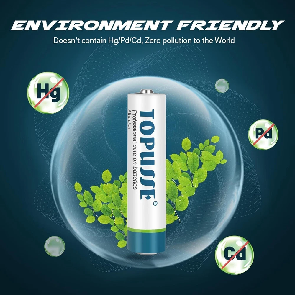 ✅【Long LASTING POWER】Topusse ultra alkaline batteries deliver long lasting power and performance,that is consistent and reliable for everyday use and emergency situations ✅【10-YEAR SHELF LIFE】 All alkaline batteries are always fresh and maintain power with an impressive ten-year shelf life in proper storage, Providing power in everything from emergency situations to playtime ✅【LEAKPROOF DESIGN】AA batteries are designed with a double layer internal structure housed within a stainless steel cover so that they are 100% leakproof. Avoid short circuits, mixing and matching old batteries with new ones. ✅【ENVIRONMENTALLY CONSIDEREDE】Our 1.5-volt alkline batteries contain no mercury or cadmium, making them a smart choice for your family and for the environment. ✅【IDEAL FOR EVERYDAY USE】These batteries are compatible with all devices that require 1.5V AA batteries for daily household devices such as blink Camera game controllers, remote controls, and children's toys, and so on. Topusse alkaline aa batteries are great to have on hand for a variety of everyday household devices, including clocks, remote controls, game controllers, digital cameras, toys and more. batteries won't leak and are designed to last ten years in storage. The 1.5-volt batteries contain no mercury or cadmium, making them a smart choice for your family and for the environment. our mission is to provide trusted and dependable power for everyday needs