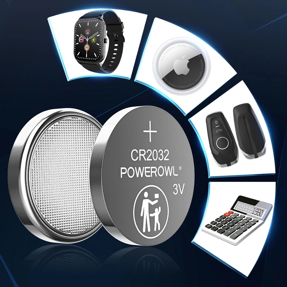 12X CR2032 3V Lithium Coin Round Batteries for Airtag, Key Fobs, Watches, Scales Compatible with Apple AirTag, key fobs, remotes, watches, scales, wearables, sensors, PDAs, garage openers, toys, LED lights, medical devices, and more. Applicable to CR2032, CR2032BP, DL2032, ECR2032, KCR2032, BR2032, LM2032, 5004LC, 5004LB, L14, SB-T15, EA2032C, KL2032, GPCR2032. Airtight seal keeps power locked in. 10% more power, 20% longer life. Safe, anti-corrosion materials. 12PCS Powerowl CR2032 batteries. Thank you for viewing our 12X CR2032 3V Lithium Coin Round Batteries for Airtag, Key Fobs, Watches, Scales.
