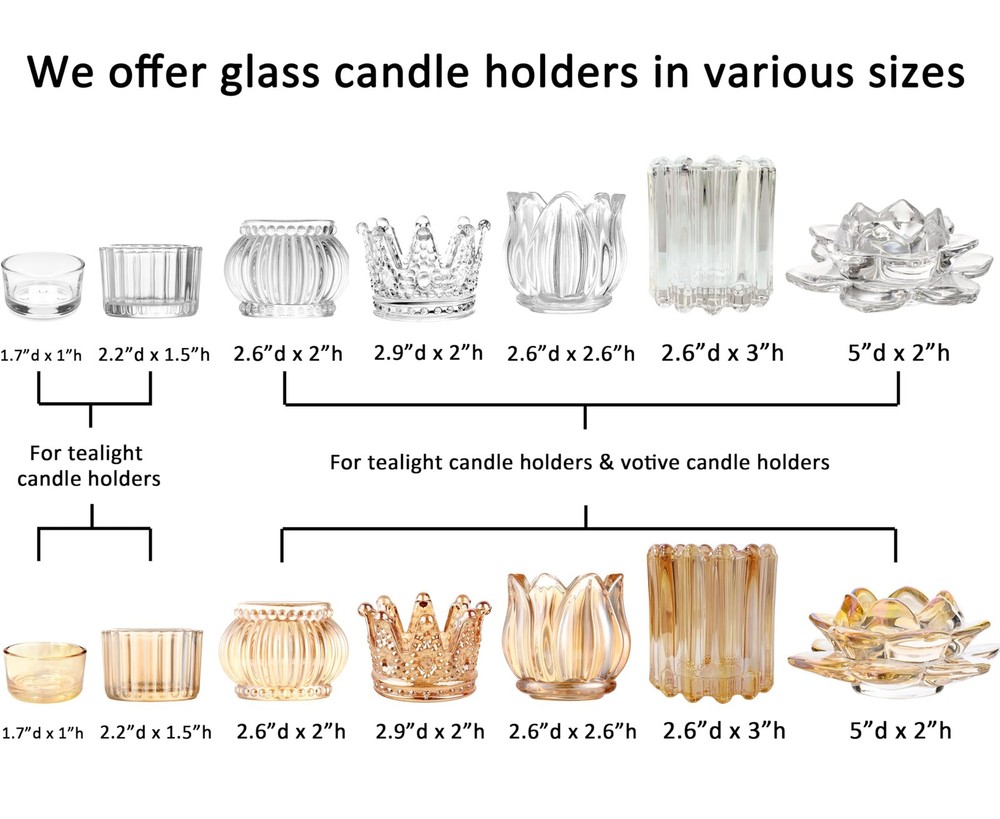 glass tealight holders. Specification Size: Each one 2.6"W*2.6"L*3"H. Material:Thick Lead-free glass. Color:Clear Package:12 holders in one package. Suitable for tealights /led light /votive candles with diameter of less than 1.9". Also can be used as a jewelry storage tray ,a beauty egg stand,a ring organizer tray. PARTY SUPPLIES: Each holder measures 2.6"D &3"H, providing a perfect fit for standard tea light candles, votive candles, LED candles, flameless candles, and pillar candles. Set of 12(Candles are not included.) THICK & HARMLESS GLEAR GLASS: Constructed from thick, lead-free, and harmless glass, these candle holders are incredibly sturdy and resistant to breakage. Their exceptional transparency allows for a stunning diamond-like effect, creating beautiful and soothing illumination throughout the night. VOTIVE CANDLE HOLDER: These exquisite Stripes Shape Votive candle holders bring warmth and joy to your special occasions, including weddings, parties, baby showers, family dinners,various themed events decorations (Diwali, Halloween, Thanksgiving, Christmas windowsill, Valentine's Day) GLASS CANDLE JARS:Can be used as molds to create candles yourself. IDEAL GIFT CHOICE: Enhance your room's decor with these elegant candle holders, perfect for coffee tables or fireplace centerpieces. They create a mesmerizing ambiance, illuminating your tealights with a gentle and enchanting glow. They also make exceptional gifts for homes, fireplaces, weddings, spas, reiki, aromatherapy, party favors, and modern art. Anti-Breakage Packaging: To guarantee the safe arrival of your candle holders, we employ impact-resistant Styrofoam packaging that provides exceptional protection during transit.