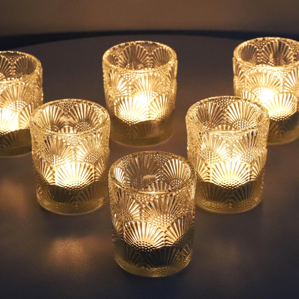 These glass votive holders are absolutely stunning! The embossed ginkgo leaf design adds such an elegant touch, especially when the candlelight shines through—it creates the warmest, most romantic glow. Perfect for weddings, parties, or just cozy nights at home. They’re sturdy, well-made, and look way more expensive than they are. A must-have for anyone who loves candlelit decor!