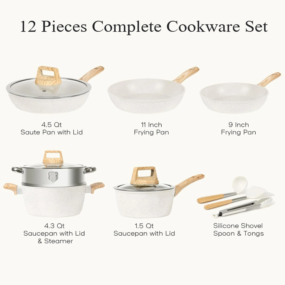 Store New Arrivals Add to Favorite View Feedback Contact 12Pcs Pots and Pans Set Non Stick Granite Skillet Frying Kitchen Cooking Cookware for Daily Cooking-White Description Material Aluminium,Granite Color White Nonstick Yes Cleaning, Care & Maintenance When cleaning non-stick pan, should use sponge, soft cloth or special pot cleaning agent, can not use metal pan brush, steel ball and other hard things to clean, if it is more difficult to clean stubborn oil stains (similar to soy sauce dry stains), it is recommended to soak in hot water and then clean About this item Superior Granite Quality: Feature premium granite coating ensures long-lasting durability and exceptional non-stick properties, making cooking a breeze. Non-toxic cookware sets allow you to cook healthy and safe. Rapid & Even Heat: Nonstick pots and pans set is equipped with durable aluminum core to make pan sets heats up quickly and distributes heat evenly, ensuring efficient and precise culinary results. Compatible with All Stovetops: From gas to electric and induction, nonstick cookware set are designed to work flawlessly on any cooktop. Effortless Cleaning: Simplify your kitchen routine with our cooking set, designed for easy cleaning and maintenance. Simply wipe with a paper towel or rinse with water to reduce time and water waste. Durable Bakelite Handle: With heat-resistant properties allow you do not worry about burning fingers in picking up the pots and pans. Perspective glass lid ergonomic design allow you to check the status of the food in the pot in time. Versatile Cooking Set: 12 pcs kitchen cookware set includes 9 inch/11 inch frying pans, 11 inch/4.5QT saute pan with lid,4.3 QT saucepan with lid and steamer,1.5 QT saucepan with lid and silicone shovel spoon & tongs ideal for your daily cooking. Reliable After-sale Guarantee: If you have received defective nonstick pots and pans set due to delivery, please do not hesitate to contact us, You will be guaranteed a full refund or a new replacement. ABOUT US Explore our handpicked range of top-quality items at fantastic prices. Our goal is to make your shopping experience as smooth and enjoyable as possible. Thanks for visiting! Warm regards, The FerroWarehouse Team SHIPPING We are always working hard to ensure your package arrives as soon as possible. Please understand that some factors like weather, high postal traffic, and the performance of shipping companies are outside of our control. We offer free shipping to the lower 48 states and Canada, with orders processed within 2 business days of payment—often sooner. Please provide a physical address; we do not ship to P.O. Boxes. For shipping outside the U.S. and Canada, delivery time, cost, and processing may vary. International customers are responsible for all duties and taxes. To estimate shipping costs, please proceed to checkout. Thank you for shopping with us! RETURNS We want you to be completely satisfied with your purchase. If you need to return an item We accept returns within 30 days of receipt. Items must be unused and in original packaging. Please contact us first if you have any problems/questions/concerns to initiate a return and get instructions.. We will be happy to resolve any issues you may have in a cordial and friendly manner. We appreciate your Postive Feedback, and will do the same in return. PAYMENT We accept PayPal. CONTACT US This page content is yet to come Please ad us to your favorite seller and visit again later Thank You CUSTOMER SATISFACTION We try our very best to make sure every customer is completely satisfied. If there's a problem, message us! We're happy to help.