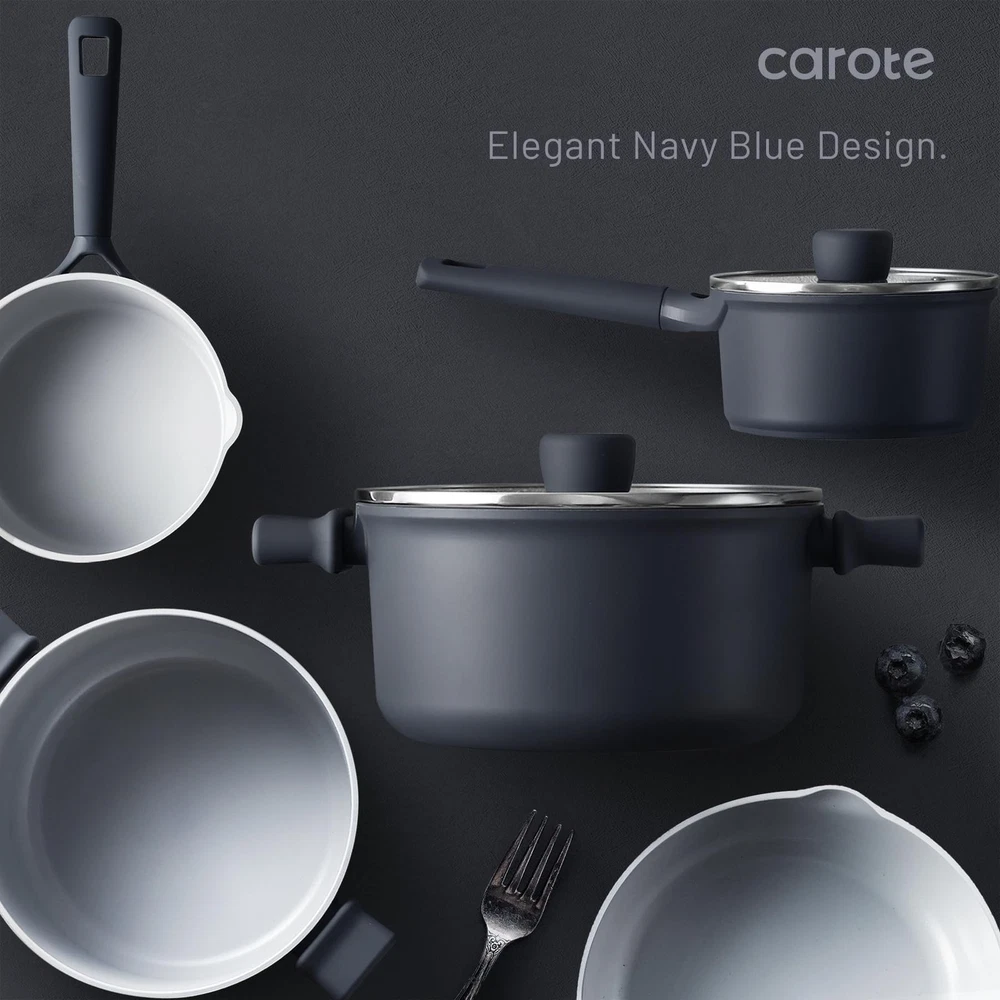Ceramic Cookware Set 12 Piece, Healthy & PFOA/PFAS Free, Nonstick Pots and Pans Set, Induction-Compatible, Navy Blue Our ceramic-coated cookware is free from PFOA, PFAS, PTFE, lead, and cadmium, ensuring safe, chemical-free cooking. Built to withstand everyday use, with a robust design and non-stick surface for easy cleaning and reliable performance. The naturally non-stick ceramic surface requires less oil, promoting healthier meals and effortless cleanup. With a reinforced die-cast aluminum base, this cookware heats evenly and works on all stovetops, including induction. provides 12 months warranty from the date of purchase. Please don't hesitate to reach out if any quality problem. You will be guaranteed to get satisfying solution.