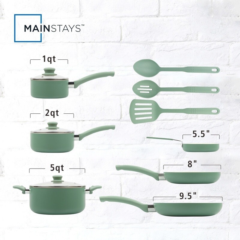 You may also like Rubber Curb Driveway Ramp Non-Slip For 3.7" Rise 39.4" Wide 33069lbs Load Black 55.56 USD Free shipping Lucinda Green 12PC Dinnerware Set Stoneware Scalloped Design Dishwasher Safe New 59.35 USD 62.47 USD Free shipping 5% off 10 Foot Patio Umbrella Auto Tilt Vented 6 People Shade Deck Outdoors Family New 67.86 USD Free shipping 50 Pack Plastic Hangers Collegiate Colors Durable Clothes Organizer Teens Adults 11.59 USD Free shipping Recycled Super Bulky Yarn Eco Friendly Warm Crochet Knit Craft Supplies Olive US 9.75 USD 10.26 USD Free shipping 5% off 7.5Qt Multi-Cooker Automatic Stirring Shredding 9 Cooking Presets Non-Stick New 79.04 USD Free shipping Glass Mixing Bowl 4Qt Microwave Dishwasher Safe Extra Durable Kitchen Use 10.66 USD 11.22 USD Free shipping 5% off 8 Cube Bookcase Storage Unit Room Divider Open Back Shelves Home Office New 279.5 USD 294.21 USD Free shipping 5% off Classic Round Bird Cage Green 16" Small Birds Swing Perch Easy Cleaning 26"H New 67.91 USD Free shipping 16 Piece Double Bowl Dinnerware Set Service 4 Dishwasher Microwave Safe New 40.36 USD 42.48 USD Free shipping 5% off 2-In-1 Wall Mounted Baby Safety Gate Stairs Adjustable Walk Through Metal New 81.5 USD Free shipping Memory Foam Bath Rug Non-Slip Floor Mat Soft Microfiber Machine Washable Set New 29.95 USD 31.53 USD Free shipping 5% off Ideal for everyday use at home, this ceramic 12 pieces set green sage includes pans and kitchen utensils that can fulfill your everyday cooking needs at home. It is also ideal as a considerate and valuable gift to your close friends and family. The interior is coated with 2 layers of PPG Customized ceramic coating, which makes cooking and clean-up easy. The pans heat quickly and evenly due to the aluminum body, so this set will help you save time cooking as well. Cool, soft-touch handles provide a comfortable grip, while the outside color of this set will offer a bright pop of color to your kitchen. Aluminum body for fast and even heating Riveted handles for strong connection Suitable for all cooktops except induction Turn-N-Tube 3 Tier Storage Shelf Indoor Furniture Kid Friendly Easy Assembly New 33.23 USD 34.98 USD Free shipping 5% off Durable Two Tone Storage Baskets W/ Carrying Handles Home Office Organization US 14.41 USD 15.17 USD Free shipping 5% off Bamboo Stackable Shelf Kitchen Storage Organizer Durable Space Saving Solution 17.4 USD 18.32 USD Free shipping 5% off Handwoven Seagrass Storage Basket W/ Handles Organizing Home Essentials New 20.16 USD 21.22 USD Free shipping 5% off 4-Tier Kitchen Storage Shelf Freestanding Toolless Easy Assembly Durable Design 63.56 USD 66.91 USD Free shipping 5% off Hardwood Hangers W/ Swivel Hook Heavy Duty Clothes Hangers Space Saving Design 19.0 USD 20.0 USD Free shipping 5% off Rustic Round Accent Table Wood Frame Farmhouse Indoor Decor Modern Side Table US 79.54 USD 83.73 USD Free shipping 5% off 5-Tier Turn-N-Tube Storage Shelf Freestanding Composite Wood Organizer DIY New 44.2 USD 46.53 USD Free shipping 5% off Cube Storage Quad Inserts Set of 2 Dividers Organizer Shelves Easy Assembly New 21.91 USD 23.06 USD Free shipping 5% off Kids Velvet Hangers 50 Pack Non Slip Flocked Shirt Hangers Butterfly Icon New 29.23 USD 30.77 USD Free shipping 5% off Pentagon Ottoman Soft Foam Upholstered Seating Modern Accent Indoor Furniture US 76.98 USD 81.03 USD Free shipping 5% off Elegant Nevin Drink Table Round Marble Top Silver Iron Base Accent Table New 87.86 USD 92.48 USD Free shipping 5% off