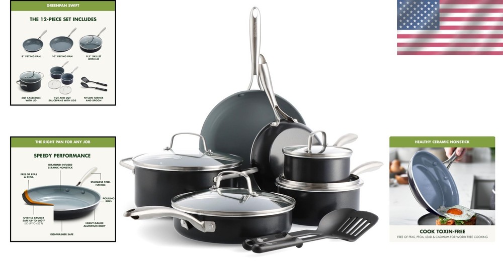 Complete 12-Piece Kitchen Cooking Set: Nonstick & Ergonomic Design for Comfort ‹ › ‹ › ‹ › ‹ › ‹ › ‹ › ‹ › ‹ › ‹ › ‹ › ‹ › Complete 12-Piece Kitchen Cooking Set Transform your culinary experience with our elegant and functional kitchen set featuring nonstick and ergonomic designs for unparalleled comfort. Set Includes: 8” and 10” Frying Pans 1QT and 2QT Saucepans with Lids 3QT Sauté Pan with Lid 5QT Stock Pot with Lid Nylon Slotted Turner Nylon Solid Spoon Bonus Renew Sponge Features: Reinforced with Diamonds: Our original diamond-infused nonstick coating offers remarkable durability, balanced heating, and effortless cleanup. Metal utensil safe. Toxin-Free: The Thermolon healthy ceramic nonstick coating is free from PFAS, PFOA, lead, and cadmium, ensuring your safety. Durable Bodies: Heavy-duty construction guarantees extreme strength with quick and even heating. Built for Oven Cooking: Oven and broiler safe up to 600°F, and suitable for all stovetops (except induction). Ergonomic Handles: Riveted stainless steel handles provide a sturdy and comfortable grip. Enjoy the View: Tempered glass lids allow you to monitor your cooking while keeping heat and moisture inside. Easy to Clean: Dishwasher safe for hassle-free cleanup; your pans will wipe clean with ease. Why Choose Our Cooking Set? Get to your meal faster with our Swift Kitchen Set crafted from quick-heating aluminum, delivering astounding heat transfer and stunning performance. Whether you’re aiming for the perfect fried egg, crispy shrimp, tantalizing seared meat, or a homemade pan pizza, this collection ensures effortless meal preparation. With drip-free pouring rims and ergonomic handles for superb control, you’ll revel in the joy of cooking every time. Each piece is dishwasher safe, providing you with convenience and ease in cleaning afterward. Elevate your kitchen experience and create memories around the dining table with our Complete 12-Piece Kitchen Cooking Set. Cook beautifully, serve elegantly, and enjoy each moment! Shipping Free & Fast Shipping - We offer free shipping to most of the USA with a normal delivery time of 3-10 businessdays. However, due to various situations, additional delivery time (up to 3 weeks) may be required for some items. Alternative Carriers - We may use alternative carriers (e.g. USPS, FedEx, UPS, etc.) to ensure your package arrives safely and on time. Due to the use of multiple carriers, we are unable to provide a tracking number automatically. Handling Time - Orders are processed and shipped within 1-5 business days of receiving cleared payment. Shipping Restrictions - Shipping to Alaska, Hawaii, Puerto Rico, Guam, and other US territories may incur shipping charges or delivery restrictions. Please contact us before ordering, or your order can be refunded/cancelled. State Restrictions - There may be restrictions based on your state of purchase. For example, certain items may not be shipped to California due to state regulations. Contact for Tracking Updates - If you require tracking updates or have any concerns about the delivery of your order, please feel free to contact us, and we will be happy to assist you. Return Please see our ebay return policy. We do not accept return on most products. This is to avoid customers mis-using ebay returns. All sales are final. Please be sure to check the return policy listed at the top of the listing. In rare cases, we may accept returns, if the buyer pays both ways shipping and 20% restocking fee. If you are un-sure of return policy of a particular item, please ask before buying. Payment We accept all major credit cards, PayPal, and Apple Pay for your convenience. Your payment information is secure and encrypted to ensure a safe and seamless transaction. Please complete your payment within 3 days of purchase to avoid any delays in shipping. Feedback Your feedback is extremely important to us. We strive to provide the best products and customer service possible. If you are satisfied with your purchase, please take a moment to leave us a positive review. If you have any concerns or issues with your order, please contact us before leaving negative feedback. We are committed to resolving any problems and ensuring your satisfaction. Contact Us If you have any questions or concerns, please feel free to reach out to our customer support team. You can contact us through the eBay messaging system. We are available Monday to Friday, 9:00 am to 5:00 pm EST, and we will do our best to respond to your inquiry within 24 hours. Buy it now and enjoy a pleasant shopping experience! UPC: Not Set Unit Quantity: 12 Stove Type Compatibility: Gas,Smooth Surface Non Induction Set Includes: Frying Pan,Lid,Saucepan,Sauté Pan,Stock Pot,Turner,Spoon,Renew Sponge Material: Ceramic,Glass,Stainless Steel Type of Oven: Electric,Gas,Oven Features: Dishwasher Safe,Easy Clean,Non-Stick,Oven-Safe,With Lid Brand: Unbranded Type: Cookware Set Color: Gray Surface Coating: Ceramic Item Diameter: 10 in Item Length: Not Set Item Width: Not Set MPN: Not Set Number of Items in Set: 12 Item Depth: 10 in Heat Resistance: 600°F Item Weight: 16.96 lb Shape: Square Item Height: Not Set Manufacturer Warranty: Not Set Model: Not Set