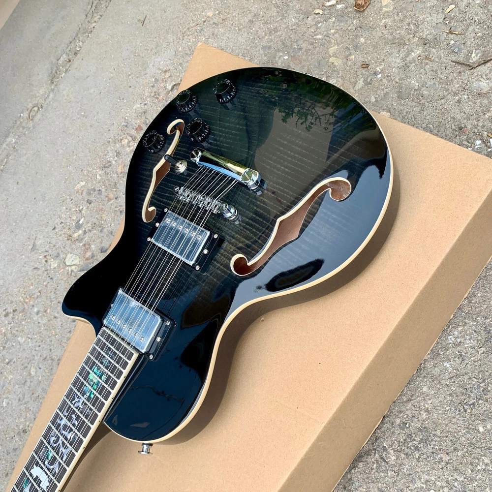 Beautiful 12 string guitar was tested for playing ability plays smooth as silk ,fantastic sounds ,A peace of master craftsmanship; best sounding 12 string guitar I've ever heard ,I bought 2 other 12 strings .just like this one except they have different wood colors,they play perfect ,easy to play the strings on all these ,you can just very press on any string.and it s Avery soft touch to press down ,in which makes it a lot more easier to play fast runs ,licks,,a perfect 12 string guitar design