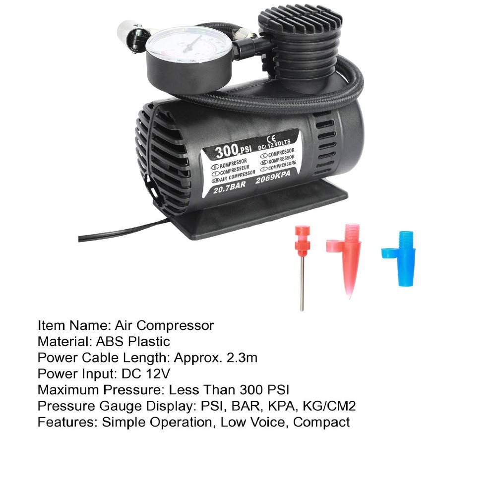 Other | | | | | | 12V 300PSI 100W Car Air Compressor Pump Tire Inflator with Air Gauge > > > > < < < < < < > > > > > > Description: Thanks to its compact and portable design, this inflator pump is easy to carry around, so you can refill it whenever and wherever you want. And it comes with a pressure gauge, allowing you to check the refill status in real-time. With a less than 300 PSI, this pump can inflate various types of tires quickly and easily. And it can save you a trip to the filling station. Portable are compression is made of high-quality ABS plastic material. Proper tire inflation saves you money with greater gas mileage and tire lift. A mini air compressor is a very valuable tool to have in hand. Multiple uses to save you time and manual labor. Perfect for cars, bikes, lawn tractors, and inflatables. Item Name: Air Compressor Material: ABS Plastic Power Cable Length: Approx. 2.3m Power Input: DC 12V Maximum Pressure: Less Than 300 PSI Pressure Gauge Display: PSI, BAR, KPA, KG/CM2 Features: Simple Operation, Low Voice, Compact Size Details: L: 13cm/5.12", W: 12cm/4.72", H: 12cm/4.72"(Approx.) Notes: Due to the light and screen setting difference, the item's color may be slightly different from the pictures. Please allow slight dimension difference due to different manual measurement. Package Includes: 1 x Air Compressor 1 x Air Needle 2 x Adapters Payment Shipping Return Contact Us 1. We acceptPayPal,Credit card,Debit card,Apple Pay,Google Pay ect as payment. 2. Please be sure your shipping address is correct before make a payment. 1. We ship to your eBay or Paypal address. Please make sure your eBay and Paypal address is correct before you pay. 2. Items will be shipped within 1-7 business days when we received payment. 3. Delivery time depends on destination and other factors. 4. International buyers please note: a. Import duties, taxes and charges are not included in the item price or shipping charges. These charges are buyer's responsibility. We will try our best to reduce the risk of the custom duties. b. Please check with your country's customs office to determine what these additional costs will be prior to buying. 30 DAY RETURN POLICY Customer Satisfaction is our main goal, all items are quality checked prior to being listed and sent out. Please contact us prior to leaving any Negative Feedback and allow us to make things right! If you not satisfied with it please include the original packaging and return form & tracking number otherwise the return may take longer to process the refund. Once we have received the item and inspected it we will issue the refund or resend within 1-7 business days. Please contact us in time if any enquriy under any circumstances. We greatly appreciate your positive feedback and we'll do the same to you. We care about our valued customers, and will always try our best to help you, if you have any problems. Working time: GMT+8 / 9:00-18:30 in normal we will reply you in one working day.