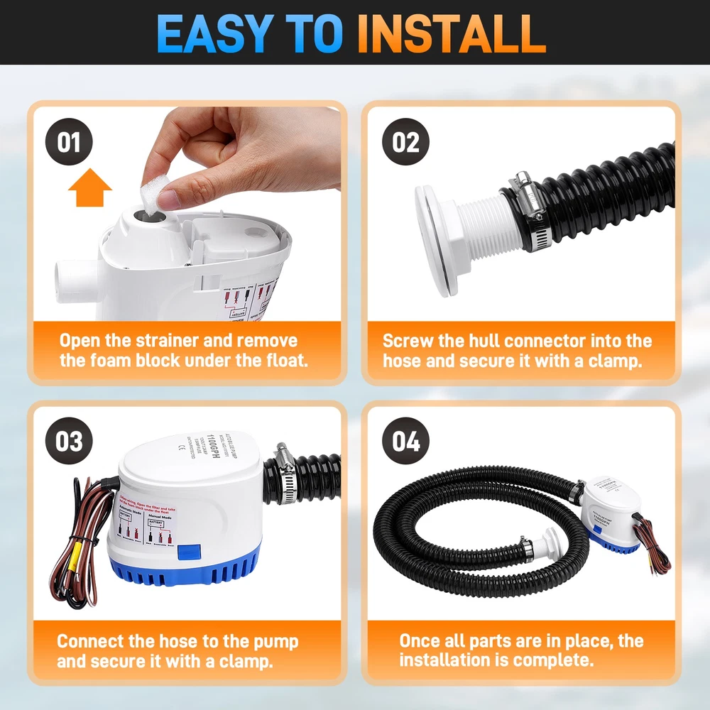 12V 1100GPH Automatic Submersible Boat Bilge Water Pump With Auto Float Switch