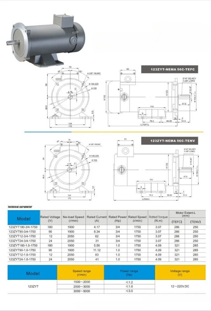 123ZYT220-550-1800 permanent magnet DC motor vertical horizontal brush motor industrial supporting