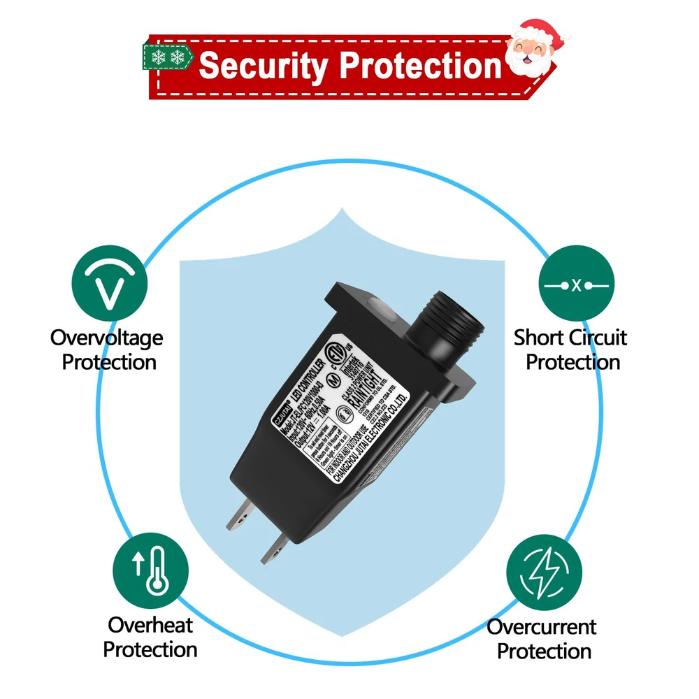 LED Transformer Replacement Class 2 Power Supply for Christmas Inflatable Decorations Plug IP44 Waterproof LED Controller Low Voltage (12V 12W 1A), 1 Pack 【Attention】Only suitable for 12V 12W 1A Inflatable Decorations/LED Lights. Only suitable for the 2-pin connection shown in the photo. No remote control. Warm Tips: If the voltage does not match, the LED lights will continue to flash, or the timer and mode function will not work. 【8 Modes and Memory Function】Press the button on the transformer can set 8 lighting modes, and it can save your last mode setting without having to reset the mode every time. 【Timer function】Press for 3 seconds until the green light is on, then the timer is activated. The fairy lights will light up for 6 hours every day and turn off for 18 hours. Press and hold the button again for 3 seconds until the green light goes out and the timer function can be switched off. 【IP44 Waterproof/Fireproof】The LED adapter is IP44 waterproof (not fully waterproof) and can be used for indoor and outdoor use. Please take appropriate waterproof measures when it rains. Made of high-strength ABS material, effectively prevents the cable from heating up. 【Compatibility】This adapter fits for 12V low voltage led device with current under 1A, such as christmas inflatable decorations, inflatable equipment, etc..