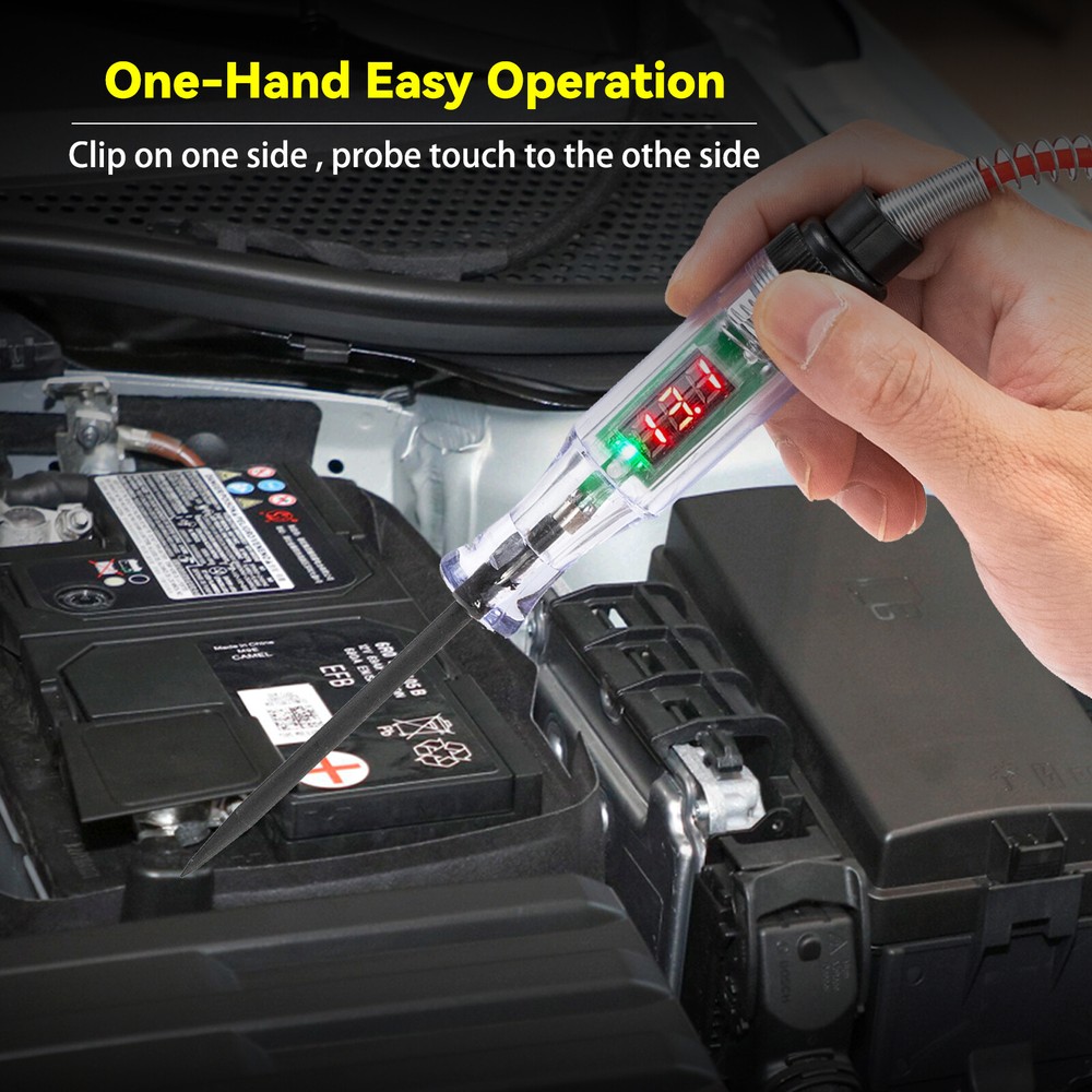 Product : Car CIRCUIT TESTER Description: Brand New Automotive Car DC 6-24V Circuit Tester Electrical Wire Pen Test Light Probe Tool FOR CARS, BOATS, TRAILERS, VANS, RV, MOTORCYCLES, AIRPLANES AND SNOWMOBILES, Can not Test Truck Generator Style : digital display with lights Working frequency: 50 Hz-60 Hz Working current: ≤ 0.1mA Measuring range: 6v - 24v Material: ABS plastics& metal Application: automotive fuse box, battery, electric line, etc Package Contents: 1 x Voltage Circuit Tester