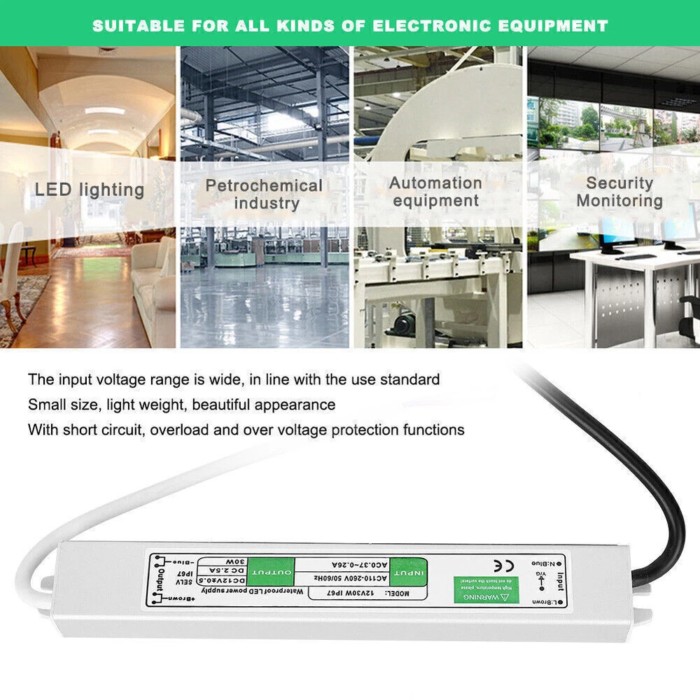 Feature: 1. Suitable for all kinds of electronic equipment, LED light, petrochemical industry, automation equipment and security monitoring etc. 2. Using imported components, high reliability, strong stability, good use effect. 3. Low DC ripple, high working efficiency power supply, up to 85%. 4. With short circuit, overload and over voltage protection functions, and designed with soft start circuit, AC inrush current limit. 5. Built-in EM filter, with good anti-interference performance. Specification: Condition: 100% Brand New Item Type: Waterproof LED Power Supply Material: Metal Color: As shown in the picture Model: 12V - 30W Type: LED power supply Modulation Mode: Pulse width modulation (PWM) Transistor Connection: Half-bridge type Input Voltage: 110-260 (V) Output Power: 30 (W) Output Voltage: 12 (V) Work Efficiency: 85 (%) Output Ripple Noise: 150mv Output Voltage Accuracy: ±1.0 (%) Voltage Regulation Rate: ±0.5 (%) Load Adjustment Rate: ±0.5 (%) Product Certification: ce Output Current: 2.5 (A) Operating Frequency: 50-60 (HZ) Working Temperature: -10~60 (℃) Package List: 1 x Waterproof LED Power Supply All the items will be dispatched within one business day by Airmail after the payment is clear. Most times you will receive your order within 10-30 business days after we transfer your package to the delivery company. We cannot guarantee the delivery timeframe if the post office has any unexpected delays due to holiday, weather, customs, or other conditions. Some countries like Russia, Brazil, or some European countries may take up to 50 days or longer for delivery. We appreciate your patience if you haven't received items in 30 days(Russian customers may need more patience by reason of the local delivery system and/or customs). If you are concerned in any way, please feel free to contact us via ebay message instead of leaving negative/neutral feedback or opening a dispute . We will do our best to solve any problem(resend or refund any missing item). Customs duty is obligation and liability of citizen s in your country, so buyer should be responsible for any tax and custom duty incurred. Generally, the delay or failure delivery is sometimes caused by the policy of different customs. 1. Our listing price includes the value of goods,packaging cost,and export taxes,not including international duties. 2. duties,taxes,and charges are not included in the item price or shipping fee. 3. T he duties are buyers' responsibility .Please check with your country's customs office determine what these additional costs will be prior to your purchase. 4. All disputes arising from the duties will be submitted to ebay for solution. 1. Any questions, pls. contact us via ebay message or email us. We will reply your message within 48 hours. If you do not receive our reply within 48 hours, pls. post a message again because sometimes our message system may block some emails. 2. If you are satisfied with our service, pls. kindly leave us a positive feedback and give us the Detailed Seller Rating with all " 5 " in very area 3. Our aim is to provide Level Customer Service, your recognition will encourage us greatly and serve you better. We strive to keep all our customers satisfy. We will do our up most to exceed your expectations in customer service, communication and dispatching of your orders.