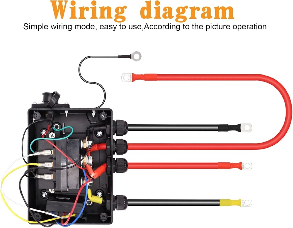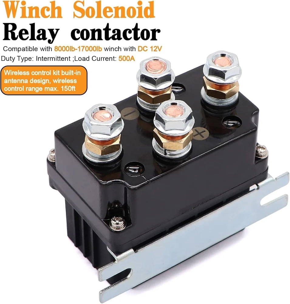 12V 500A Winch Solenoid Contactor Relay,control Box and hand controller for 8000lbs-17000lbs ATV UTV Winches Package included: 1X 12V 500A Winch Solenoid Relay,1x Winch control box ,1x Winch hand controller,4 x winch jump quick connect cables. This winch solenoid contactor box is used for protecting the Solenoid Relay and help organize cables of 8000-17000lbs Electric ATV UTV Winch. Universal for all 8000-17000lbs 12V solenoid winches,including ATV's,UTV's,SUV's,Jeep's,4x4 vehicles, and 12V Trailer ect. Comes with winch jump quick connect cables,total 4 wires, including 3pcs 6ft AWG4 cables with lugs,1pcs AWG4 cables with lugs,the box is already pre-wired and with a socket for winch control switch You only need to put your solenoid contactor into this box,wiring them with the cables we provide,then it will work well and save your time for repair and installation.