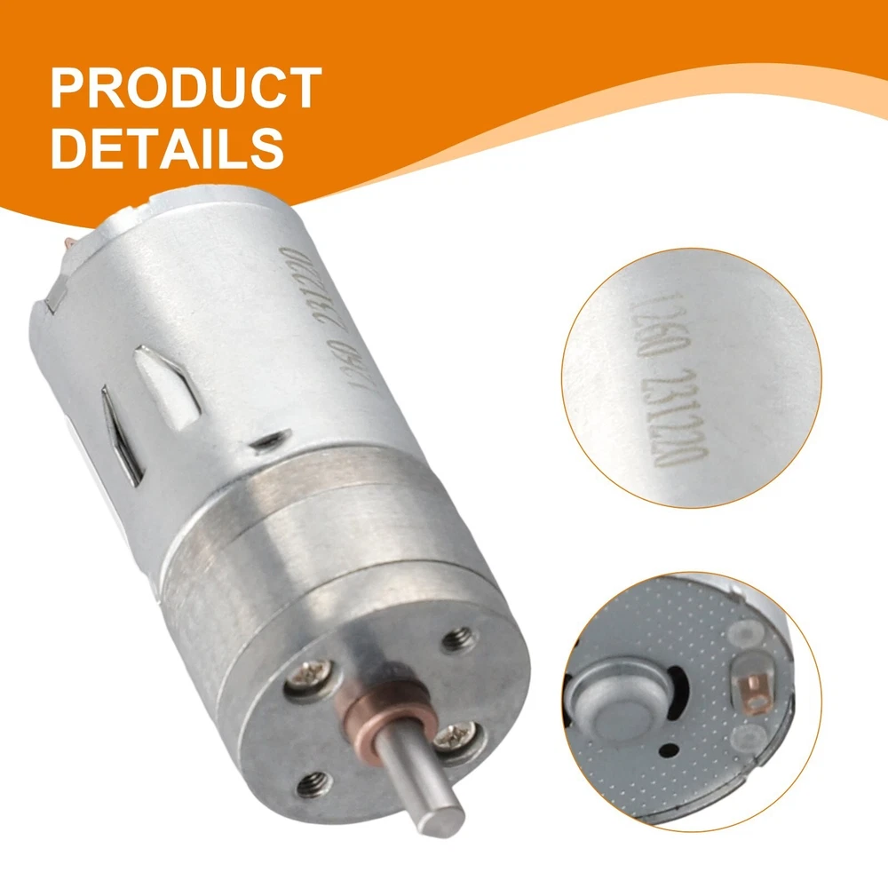 12V Geared Motor 12V DC Motor Positive And Negative Electrodes Reverse Rotation DESCRIPTION Features: * New and high quality * Made of high-quality materials, * JGA25-370 12V gear motor DC motor electric gear motor high torque. * It is recommended that the load of your project does not exceed the rated torque; choose no load speed in DC12V. * The direction of rotation of the motor: CW or , supporting reverse; control the clockwise or counterclockwise rotation of the motor by changing the connection mode of the positive and negative electrodes. * This motor is suitable for various -automation equipment. -automation. As long as you confirm that the voltage and torque of the motor you choose are suitable for the voltage and load of the project before you buy, there is no limit to the range of use of the motor. Specifications: Usage: Household appliances Voltage: 12V Model: JGA25-370 Gear material: metal gear Size: as shown in the figure Speed (optional): 22 RPM, 26 RPM, 35 RPM, 58 RPM, 77 RPM, 133 RPM, 171 RPM, 281 RPM, 646 RPM, 1360 RPM Quantity: 1pcs Package Included: 1 * DC reducer Note: 1.The real color of the item may be slightly different from the pictures shown on website caused by many factors such as brightness of your monitor and light brightness. 2.Please allow slight manual measurement deviation for the data. POLICES Shipping Payment WARRANTY We only ship to confirmed ebay Order addresses. Please comfirm that your Order address is in line with your shipping address. Please kindly note that the c ombined shipping is not provided because the shipping fee is calculated by weight. Also, the each additional item means exactly the the same color and size. It takes about 7 -15 working days to US; about 10-30 working days to other countries. Transit time may be a little delayed because of the bad weather and customs inspection . If you do not receive your item within 30 working days since payment finished, please contact us immediately for further assistance. Payment must be completed within 5 days. If you have any problems about payment, please contact us via ebay message. We strive for 100% customer satisfaction! Positive Feedback is very important to us. If you have any questions, p lease feel free to contact us via "Ask seller a question" . We will reply your email within 24 working hours.
