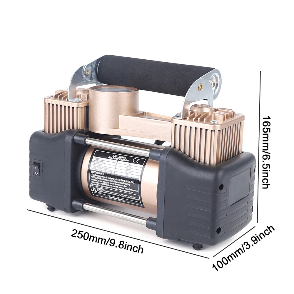 This 12V air pump is a powerhouse! Fills truck and car tires fast with its 150PSI max pressure, and the dual cylinders make it super efficient. Love the built-in pressure gauge—no more guessing. Comes with multiple nozzles for different uses, and the compact metal body is durable yet easy to store. The long cable and hose give plenty of reach, making it perfect for emergency top-ups or regular maintenance. Highly recommend for any driver!