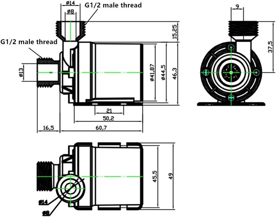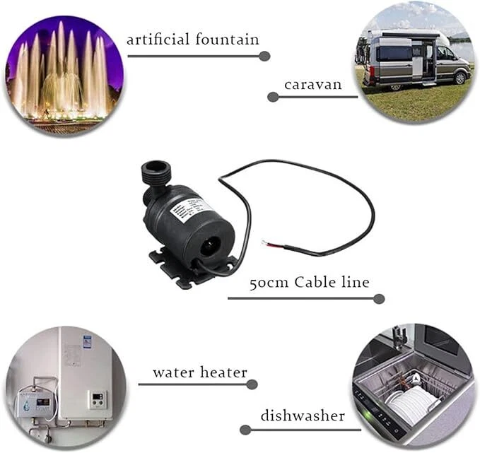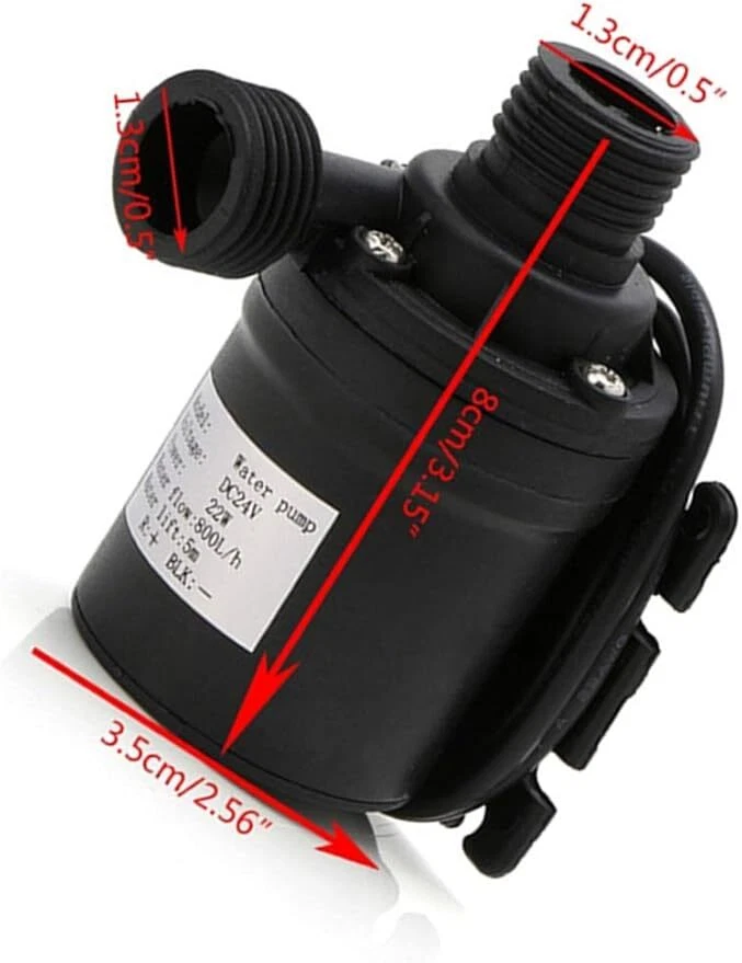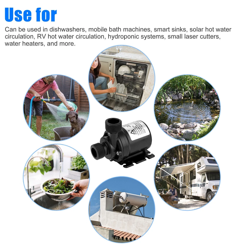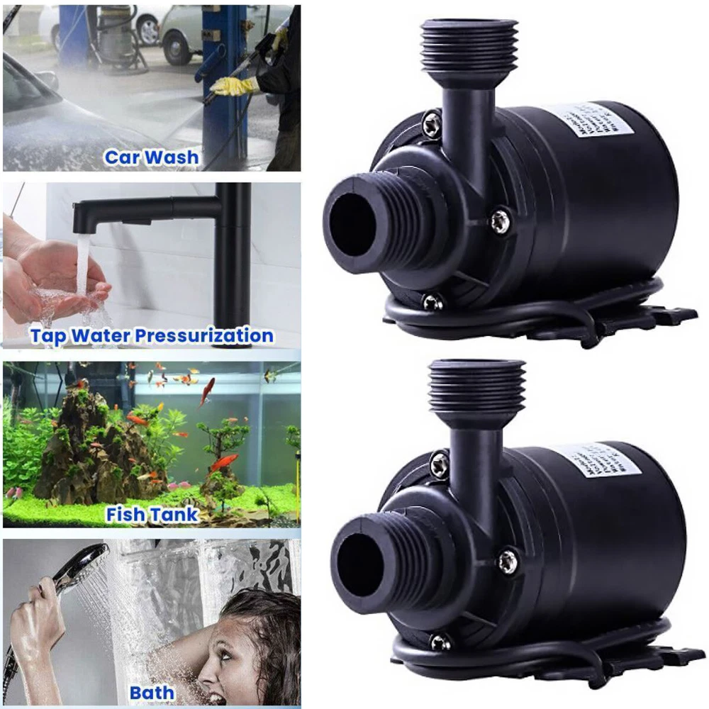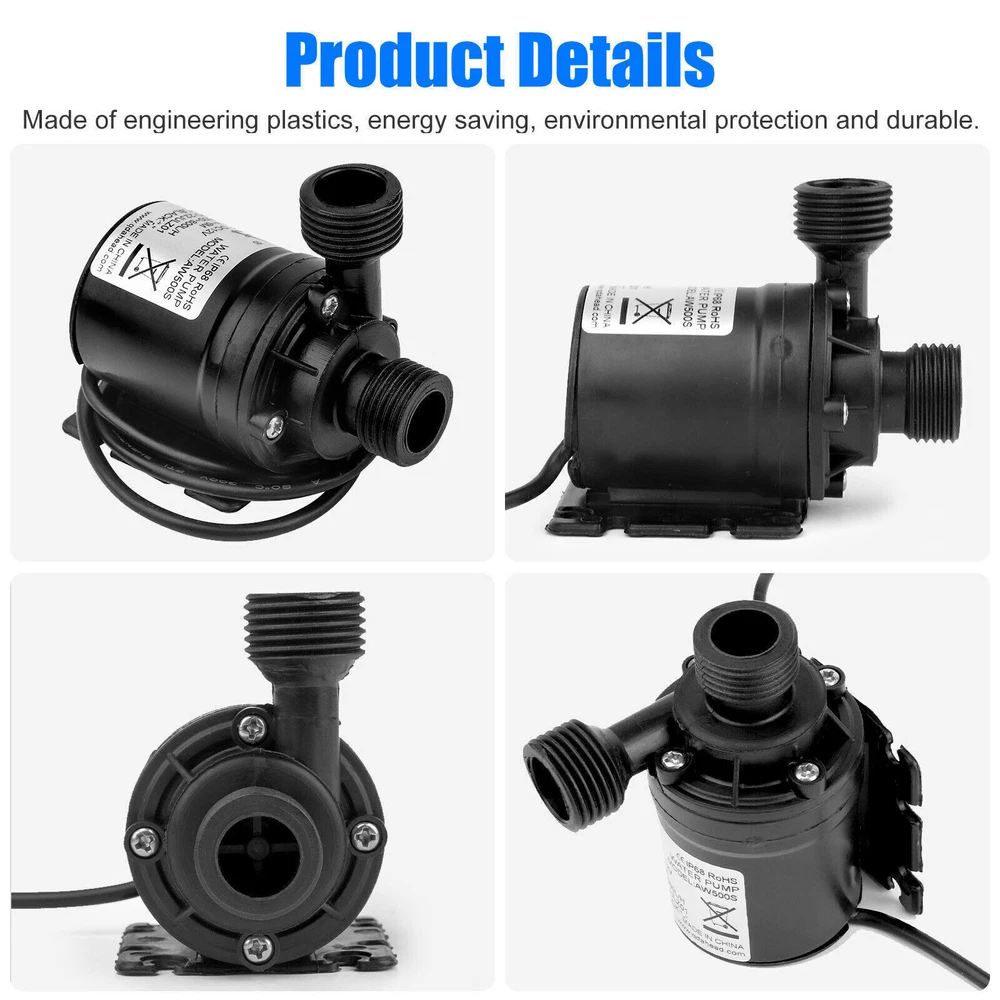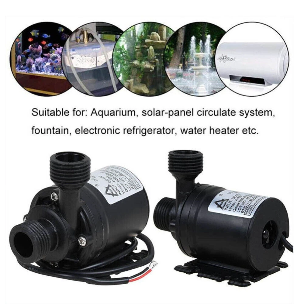 Descriptions: Circulation pump is non-self-priming pump. This pump is centrifugal pump, it can't vent the air automatically, so it must be operated by submersible installation.Fit for fountain, pool, pet aquarium, fish tank, solar circulation system, water circulation system, hydroponic systems, et. The outlet of the pump is 1/2''male thread, easily connect with a hose, detachable and Cleanable. No need any tools to detach it, easy to separate, easy to clean. Max flow rate: 800L/H(210GPH); Max lift height: 4m (13ft); Working temperature: 0℃ - 60℃/(32°F - 140°F) √ Submersible installation and entirely waterproof, the point straight in line with the pump body is the water inlet, vertical to the pump body is water outlet. Super long working life (more than 30,000 hours). Small size, high effi 12V High Pressure Brushless Submersible Water Pump Automatic Self-priming 800L Descriptions: Circulation pump is non-self-priming pump. This pump is centrifugal pump, it can't vent the air automatically, so it must be operated by submersible installation.Fit for fountain, pool, pet aquarium, fish tank, solar circulation system, water circulation system, hydroponic systems, et. The outlet of the pump is 1/2''male thread, easily connect with a hose, detachable and Cleanable. No need any tools to detach it, easy to separate, easy to clean. Max flow rate: 800L/H(210GPH); Max lift height: 4m (13ft); Working temperature: 0℃ - 60℃/(32°F - 140°F) √ Submersible installation and entirely waterproof, the point straight in line with the pump body is the water inlet, vertical to the pump body is water outlet. Super long working life (more than 30,000 hours). Small size, high efficiency, low consumption, low noise (less than 35db). Specification: Type:12V Small Brushless Submersible Pump Colour:Black Material:Engineering Plastic Dimensions:80x77x49mm (3.15x3.03x1.93in) Rated voltage: 12V Rated Power:19W Flow:800 L/H Suction Diameter:16mm Discharge Diameter:12mm Noise:≤35dB Rated Head:5 (m) Water Temperature:0~60℃ (Hot Water Pump/Cooling Water Pump) Flow Characteristics:Qne In And One Out Cable:50cm (19.7in) Max flow rate: 800L/H(210GPH) Noise: <35dB Waterproof level: IP68 Lifespan: More than 30,000hrs Weight:220g(7.8ounces) Cable length: Approx. 50cm (19.7") Package List: 1/2/3/4 x 12 V water pump Payment Shipping Return Contact us About us Payment 1.Paypal, Credit Card, G Pay etc, many payment way is accepted. 2.Please be sure your shipping address is correct before make a payment. Shipping 1.We will ship out the item within 1-3 business days after comfirming the payment, appreciate your patience. 2.If the items are broken on the way( we will check the orders clearly before we sent them ),please contact us in 3 days you received it. We will send you a new one or refund your payment. Return 1.We stand behind every buyer.Items can be returned for exchange or refund within 30 days. 2.Please contact us when you have any confusion of our item, we will solve the trouble for you as soon as possible. Contact us 1.This is professional Seller.We will reply your message within 24 hours. 2.Please contact us whenever you have any question about the item. We will deal with it as soon as possible. 3. If you are unhappy with the item or our service,please Contact Us before leave feedback,just give me a chance,thank you! About us 1. Unless specified otherwise, all our products are IN STOCK and are shipped from Local warehouse - Not Overseas! 2. We provide a 30 day Satisfaction Guarantee or your money back (provided items are in the same new and resaleable condition.) 3. We have a PayPal Verified Business Account, please buy with Confidence! 4. Every item will be tesrted before send.We know our products well and if we don't have the answers we will do our best to find them for you! 5. Our friendly team look forward to serving you! Your satisfaction is our No.1 Priority We will do our best to satisfacy you.