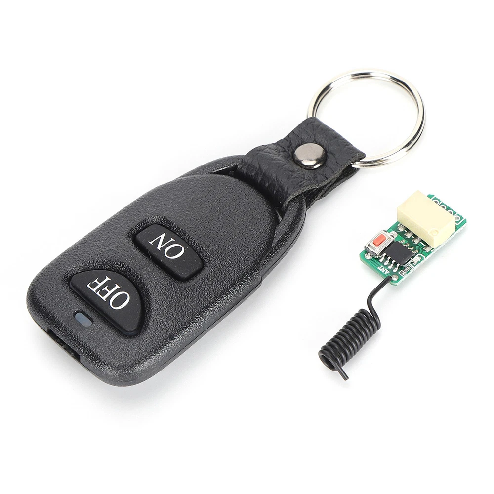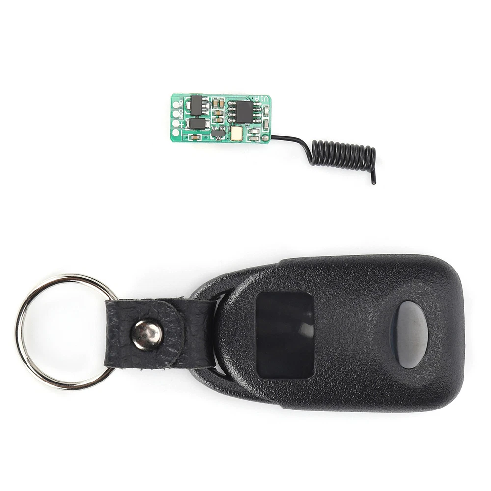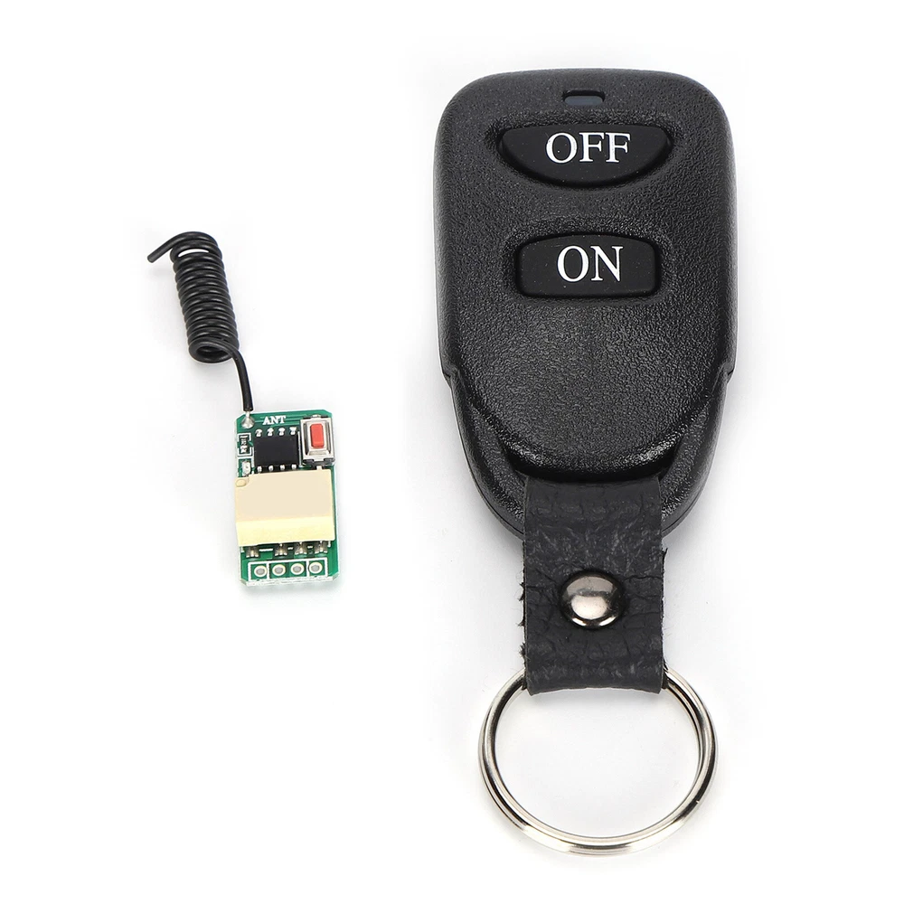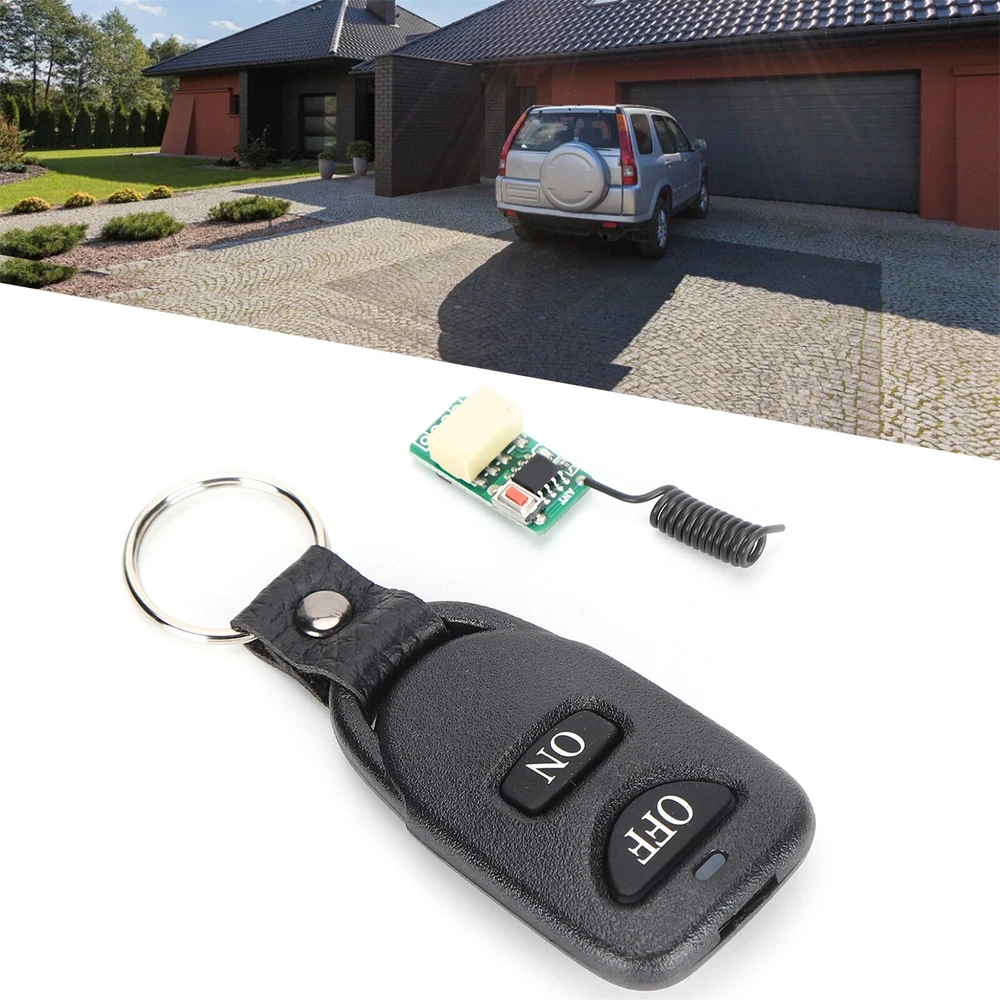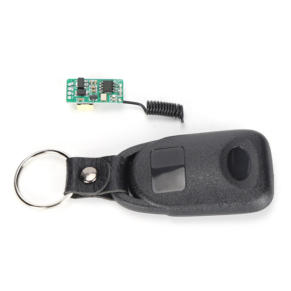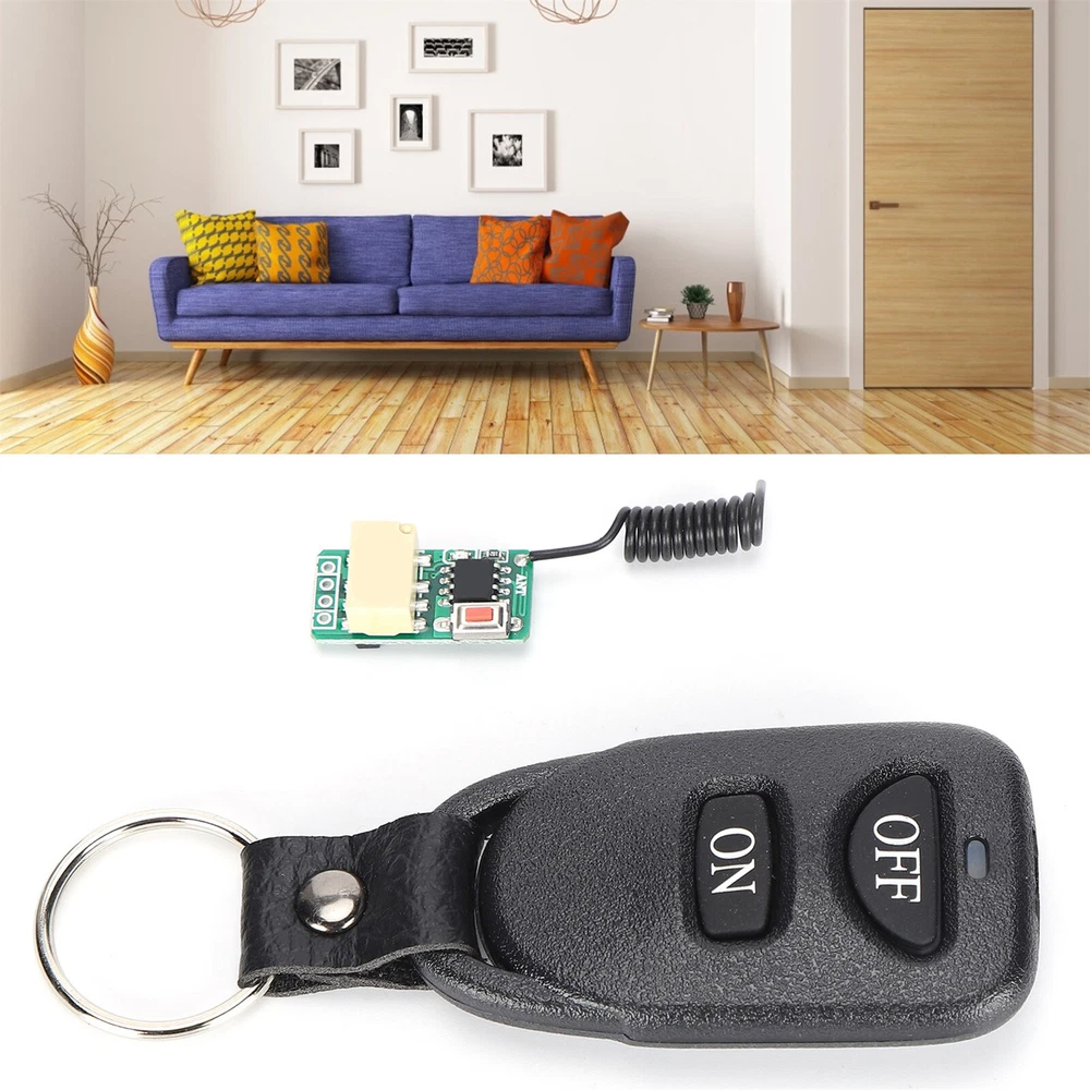 Product Description If you have any questions, please contact customer service first, do not open disputes easily, thank you! Features: 1、Superheterodyne receiving circuit, making this module has a better anti interference. 2、This product can be installed in all kinds of narrow spaces, with ultra small size and flexible control. 3、Strong compatibility, can support various 433M fixed code and learning code remote control. 4、The switch is easy to install and use, press the learning button to change the working model. 5、Suitable for controlling small loads such as relays, small bulbs, small motors, etc. Specification: Material: PCB Working Voltage: DC3.5V-DC12V Wide Range Working Voltage: DC3.5V 4V 5V 6V 9V 12V Relay Working Current: 20-30MA Maximum Load: 1A Working Frequency: 433MHz Receiving Sensitivity: -105dBm Working Temperature: -20°C-70°C/ -4°F-158°F Output Mode: Inching, Self-locking, Interlocking Built In Button Battery in the Remote Control: 80mAh Button Battery Suitable for controlling small loads such as relays, small bulbs, small motors, etc. Note: 1. Do not operate the control buttons quickly and frequently, because the controller is controlled by a microprocessor, and each operating state will respond within 1 second. 2. If you find that the LED light is dimmed or the distance becomes shorter, please replace the battery. 3. The receiving antenna must be soft, and the length cannot be too long or too short, otherwise it will affect the transmission distance. Please try to straighten the antenna as far as possible, and do not get close to metal objects or any magnetic objects. Package includes: 1 x Receiver 1 x Transmitter About Us We accept all payments authorized by eBay. powered by