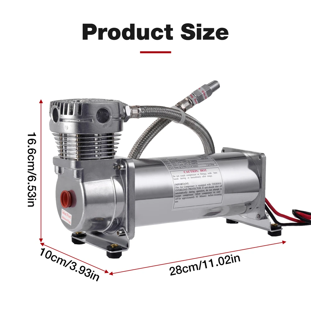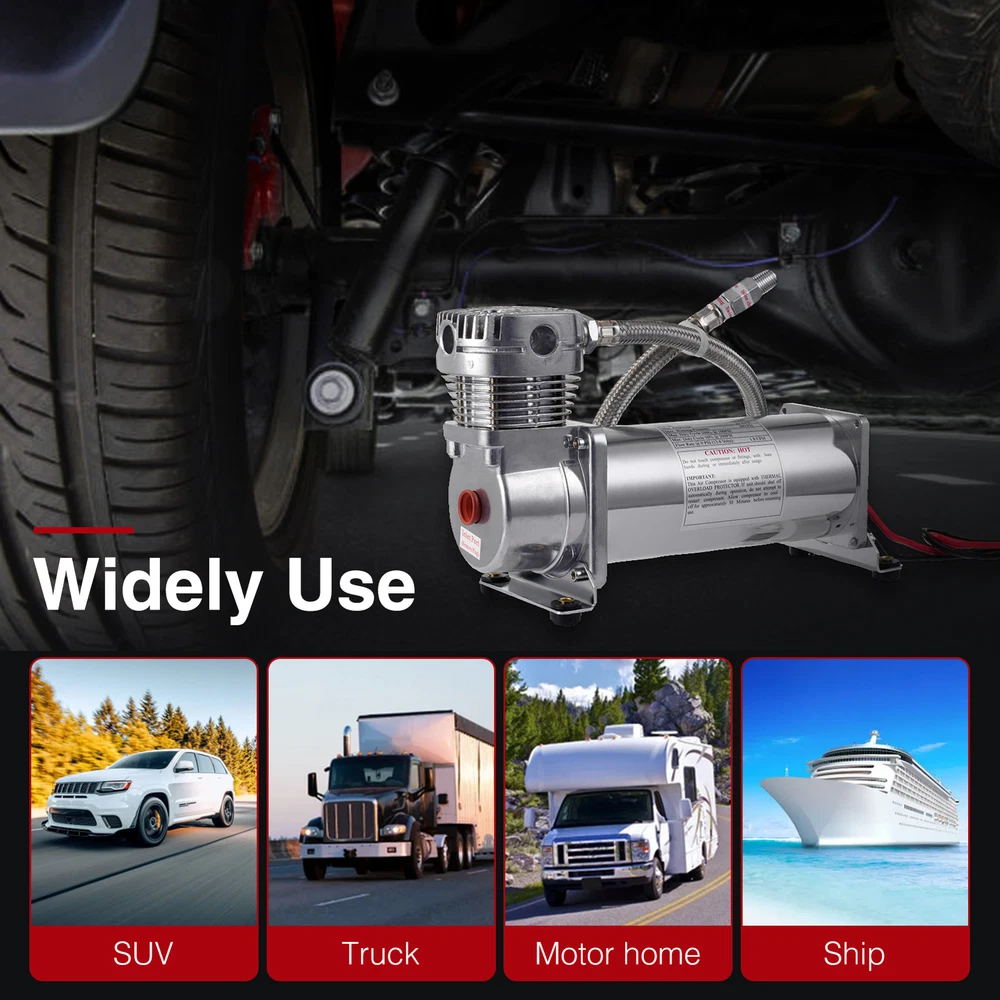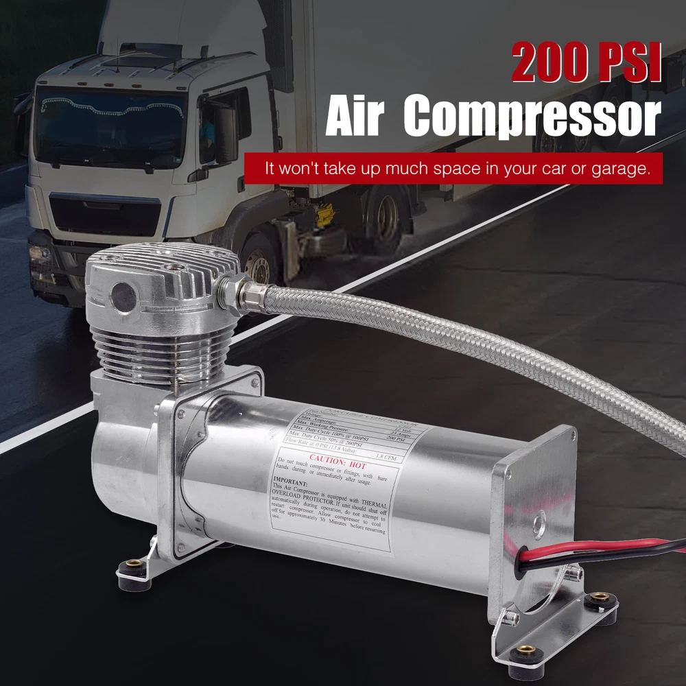 Store category Sign Up Now ! You may also like Product Description High working pressure: The maximum working pressure can reach 200PSI, which meets the needs of high-pressure inflation and is suitable for a variety of inflation scenarios. Energy-saving performance: The duty cycle is 100% at 100 PSI and 50% at 200 PSI, achieving efficient energy use and longer motor life. Portable design: Compact size, easy to carry and install, suitable for various 12V vehicles, including SUVs, trucks, RVs and ships. Powerful power: The 12V permanent magnet motor provides strong power, fast inflation, and improved efficiency, suitable for rapid use in emergency situations. Wide application: Suitable for inflating vehicle tires, air horns and other 12V equipment to meet diverse inflation needs. Durable material: Made of high-quality steel, it has high tensile, compression, bending and shear strength to ensure long-term stability and durability. Safe operation: It is recommended to install under the guidance of professionals and wear safety glasses or goggles when using it to ensure safe operation. Convenient maintenance: Equipped with standard 1/4-inch stainless steel braided hose, fuse and mounting parts, it is convenient for users to perform daily maintenance and quick replacement. Important advice: Make sure to use a 12V DC power supply for installation to avoid equipment damage caused by voltage mismatch. Check the air compressor and its accessories regularly to ensure they are in good working condition. Specification. Air Pump Parameters: Working Voltage:12 Volt Size:280(L)×100(W)×166(H)mm Max Working Pressure:200 PSI Max Amp Draw:23 Amps Duty Cycle:100%@100 PSI Duty Cycle:50%@200 PSI Flow rate is 1.75 CFM @ 0 PSI Pack list. Compressor, Filter, Valve*4 and Installation Kit Payment Delivery details Terms of sales About us Feedback & DSRs Payment Before you palce an order, please kindly make sure that you have a paypal account. We accept PAYPAL payment only. Payment should be completed within 2 days after auction closed, or unpaid dispute will be filed for an closing auction. An unpaid case will be filled after 4 days. Delivery details We ship to your eBay address. Each package will be shipped to US by UPS Regular Parcel with tracking number. Please check your shipping address carefully before checkout, it can't be changed if order completed. All items will be shipped within 1-2 business day upon receipt of payment.Orders placed on weekend will be shipped within 3 days. If you do not receive your item in 7-10 business days.please contact us immediately for further assistance. We will be responsible for any damages or losses incurred in the shipping process. About us We maintain high standards of excellence FIVE STAR and strive for 100% customer satisfaction! Positive Feedback is very important to us. We hope that you contact us immediately Before you give us neutral or negative feedback, so that we can satisfactorily address your concerns. We promise to offer the lowest price and high quality produce. Our working time: From Monday to Friday(9:30 am to 18:00pm), we don't working on holidays ,hope you can understand and know that , thank you. Please always talk to us via ebay Message. We appreciate your business and look forward to growing our e-Bay sales with satisfied customers. Feedback Contact us If you have any questions, please feel free to contact with us by ebay Message during our business hours ( 9:30a.m. to 5:30 p.m.), or email us through eBay, we will try our best to help you to resolve it. For any presale or after-sale questions,please do feel free to email us! Due to the time difference, each email will be replied within 1 working day,and weekend will be delayed a bit. Feedback