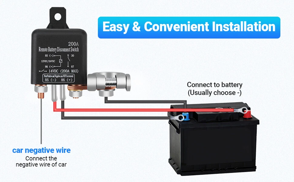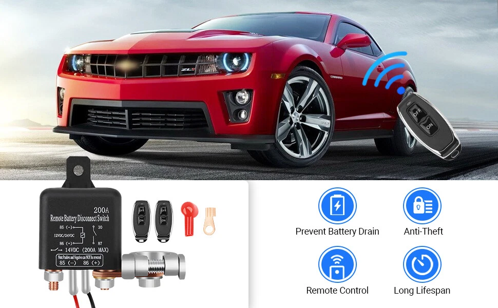 Description: [Battery and Engine Protection] This handy car battery disconnect switch system can remotely control your car power system. Protects batteries and engines and prolongs their lifespan. At the same time, thieves cannot start and steal your car, improving security. [Remote Operation] The battery disconnect switch is equipped with 2 new 320ft remote controls. You can even control it at home, with one-touch control on the dashboard of the entire car power system. The 12V battery cut-off switch allows you to disconnect the car power system by simply pressing the remote control key button without opening the hood to turn on the power every time. [Easy to Install] First connect the red wire to the positive pole of the battery. Then connect the black wire to the battery clip. 12V Wireless Dual Remote Car Battery Disconnect Relay Master Cut-off Switch US Description: [Battery and Engine Protection] This handy car battery disconnect switch system can remotely control your car power system. Protects batteries and engines and prolongs their lifespan. At the same time, thieves cannot start and steal your car, improving security. [Remote Operation] The battery disconnect switch is equipped with 2 new 320ft remote controls. You can even control it at home, with one-touch control on the dashboard of the entire car power system. The 12V battery cut-off switch allows you to disconnect the car power system by simply pressing the remote control key button without opening the hood to turn on the power every time. [Easy to Install] First connect the red wire to the positive pole of the battery. Then connect the black wire to the battery clip. Finally attach the battery clip to the battery negative terminal. All required wiring harnesses are included, no need to purchase additional accessories. [High-quality Material] The 12V remote battery isolator supports people's long-term use, made of high-quality plastic, the overall structure is solid, and the quality is reliable. Rated current 200A DC12V, this battery disconnect isolator is upgraded from the old model, improved fittings make the mounting contacts stronger. [Wide Applications] The remote control has a very low standby current (0.003A), suitable for DC 12V camping trailers, SUVs, ATVs, UTVs, small vans, agricultural vehicles, Trike cars, and off-road. Package List: 2 x Copper Nut 2 x Battery Clip 1 x Copper Nose 2 x Remote Control 1 x Antenna 2 x Connecting Cable 2 x Brass Gasket Notes: 1. There may be slight differences between the picture and the actual color of the commodity. We will try our best to show you the exact color. 2. Please allow slight dimension difference due to manual measurement. Payment Delivery details Terms of sales About us Contact us Payment Some of your addresses are not in our service area , we will contact you for a cancellation . 1.Please fill in a valid contact address. 2.We Accept variety of payment methods such as credit, debit, and gift cards, Apple Pay, Google Pay, PayPal, and PayPal Credit. P ayment must be cleared within 1 business days after you placed the order . Special request cannot be accepted after 24 hours of payment, because most of orders will be processed and dispatched in same day. Delivery details If your address is other remote areas , you may need to pay additional remote fees . Terms of sales 1.We offer hassle-free returns and exchanges on all our products. Ret urn is a ccepted within 30 days after the buyer’s receiving the item . If you need return,let us know the detailed problem and send us some pictures for confirmation.Then get a address for return or refund .But we don't accept artificial damage of the items.Manufacturer's limited Warranty for defective items. About us We strive to ensure that our products are reliable, updated and that our transactions are smooth and speedy. We are positioned to bring you the latest consumer automotive aftermarket parts and accessories globally and round the clock. Contact us Please email us to resolve any problem before you leave any feedback to us. We will reply you via email ASAP, if no response for you within 48 hours, please check the spam / junk folder in your mail box. Brand superauto-parts Type Car Battery Isolator Manufacturer Warranty 5 Years Color Black Fitment Type Direct Replacement Working Voltage 12V Material ABS/Electronic Components/Copper/Rubber Features Durable, Weatherproof Rated Current 200A Universal Fitment Yes Manufacturer Part Number Does not apply
