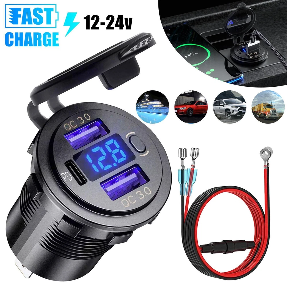 Product Description Features: This USB C car charger outlet socket is designed to deliver fast charging for all your devices. With a 55W Power Delivery (PD) port and dual 36W Quick Charge 3.0 (QC3.0) ports, you can recharge your devices at remarkable speeds. Equipped with multiple ports, you can charge up to three devices simultaneously, eliminating the need to prioritize one device over another. The USB C PD port ensures that even power-hungry devices like laptops can be charged efficiently. The Power Delivery (PD) technology ensures intelligent and safe charging. It automatically adjusts the power output to match your device's requirements, preventing overcharging and overheating. The dual Quick Charge 3.0 ports are perfect for devices that support this technology. Get up to 4 times faster charging speeds compared to conventional chargers. Built to withstand the rigors of road trips and outdoor adventures, this charger is made from high-quality materials that ensure durability and longevity. Its sleek design blends seamlessly with your vehicle's interior. Specifications: Voltage: 12V-24V Connectivity: Dual USB, USB-C(PD) Input: USB 12-24V PD Output Power: 55W QC3.0 Output Power: 36W Measured Voltage: 6-30V Application: 12V/24V car, truck, boat, marine, golf cart, RV,ATV/UTV, etc. Package Includes: 1* 12V Car charger with voltmeter 1* 60cm Wire cable with inline 10A fuse If you have any doubts or uncertainty about this item, contact us with no hesitation, we are always here and will solve your problems. Thanks and wish you a nice day! About Us We dedicated to provide excellent products and services for all customers on ebay. hope we all can have a nice experiences on eBay. Payment We accept all verified payment through PAYPAL payment. Shipping Usually, Item will be shipped within 1-2 working day after full payment is received. Normally, you will receive the item in 5-7 days. Please contact us if you don’t receive the items after 10 working days after the payment If you have any questions about shipping, please feel free to contact us. Returns Always believe we can solve problems by communication if it comes to any problems about products or any others. If it comes to a return, the products must be intact and as original when you received, and should be within 30 days after you received it. Contact Us Work time: 9:00 AM to 18:00 PM Beijing Time You can contact us at anytime you want, we will reply all messages at the first time. powered by